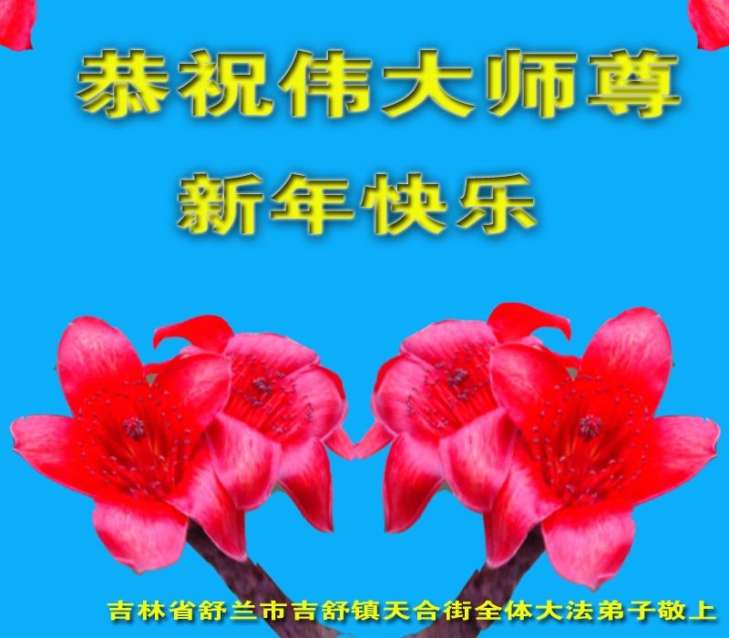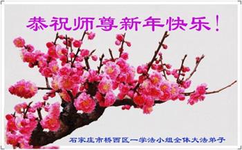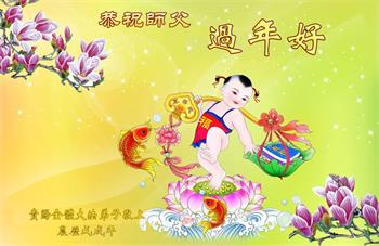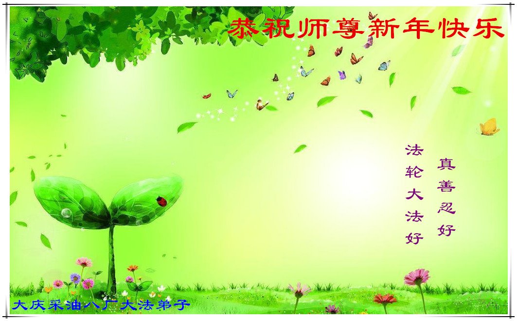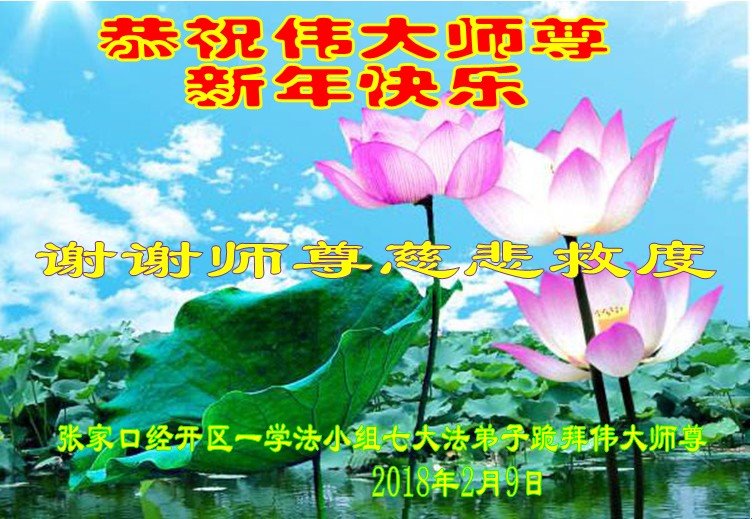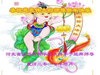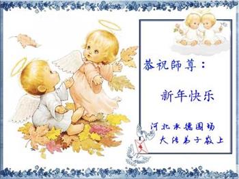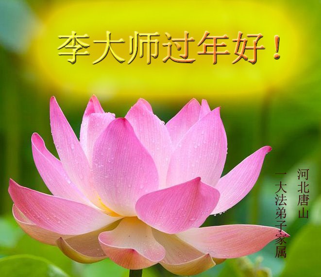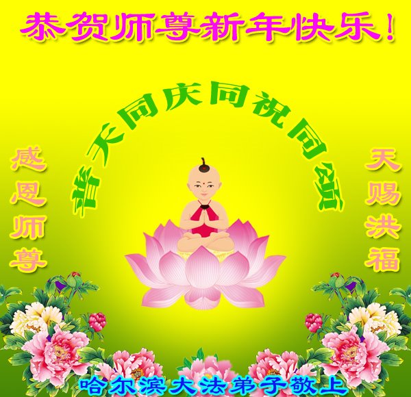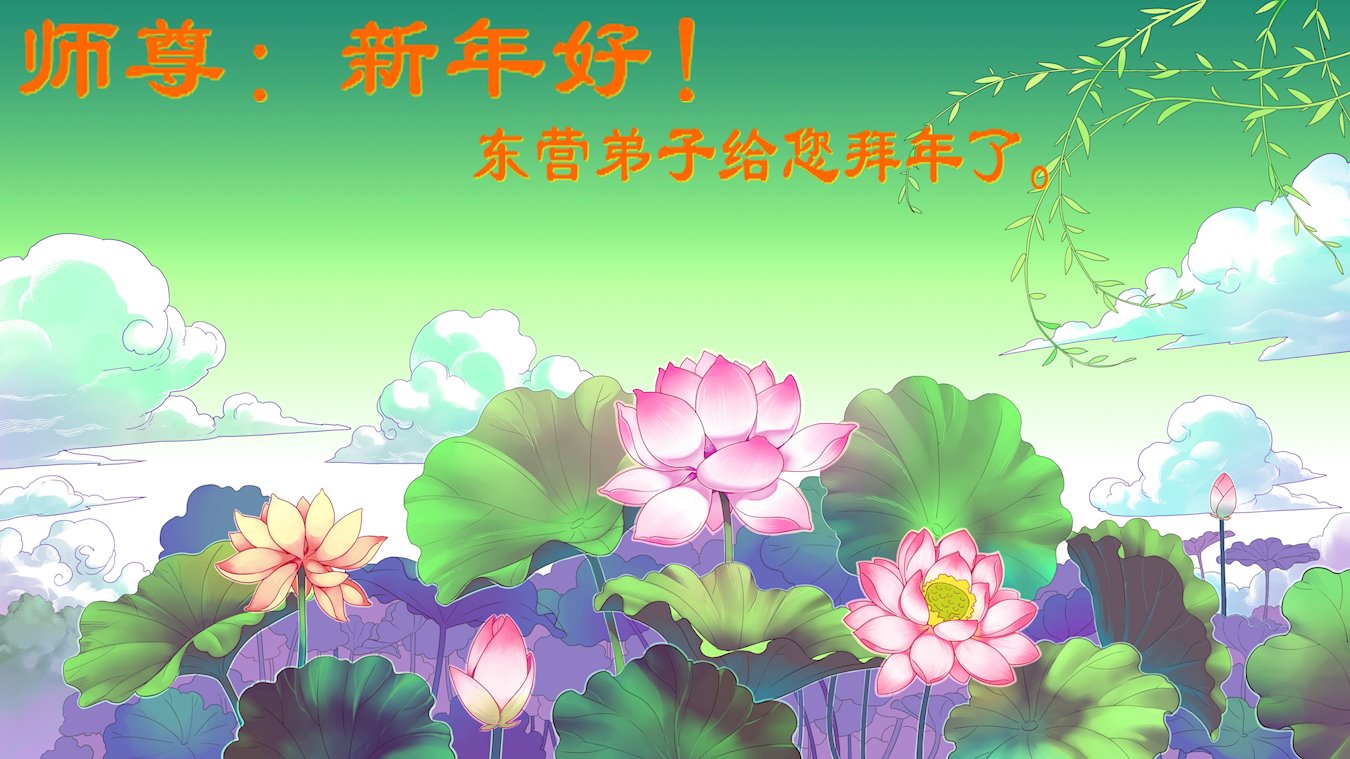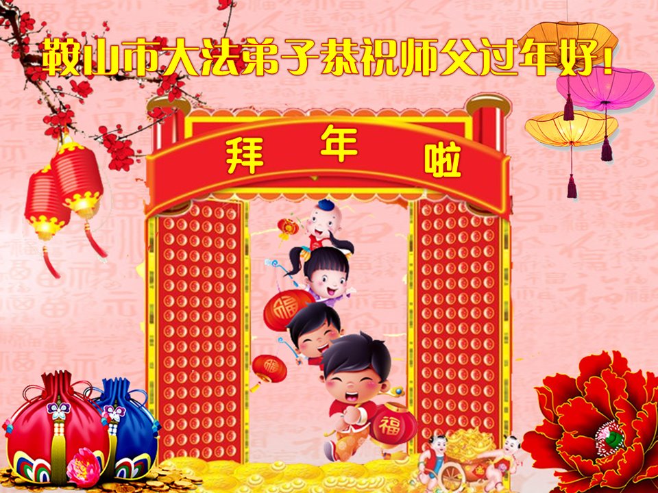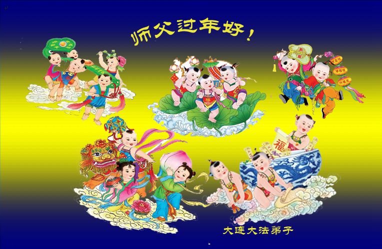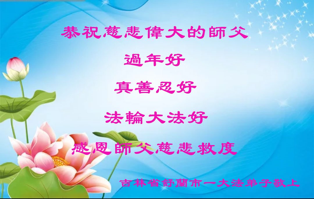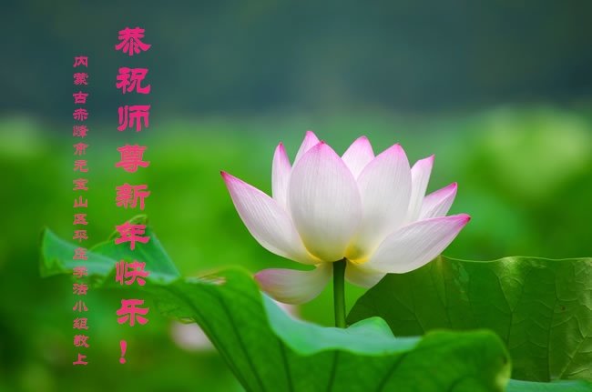 慈悲伟大的师父好!在这天地更新、万物复苏的时候,我们青岛东部的一资料点的全体老少大法弟子及家人给您拜年!恭祝师父新年快乐!借此,我们把满怀对慈悲伟大的师父的思念和感恩之心凝成一句话:学好法,修好心,不懈怠,多救人,路走正,报师恩,证实法!