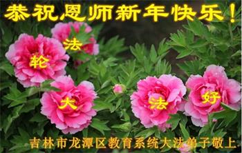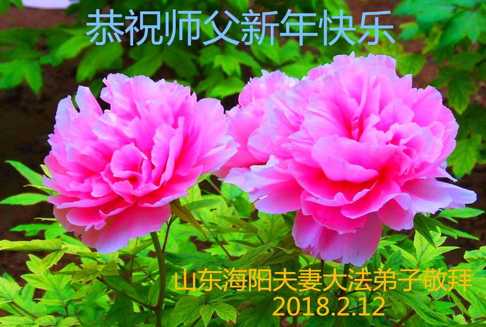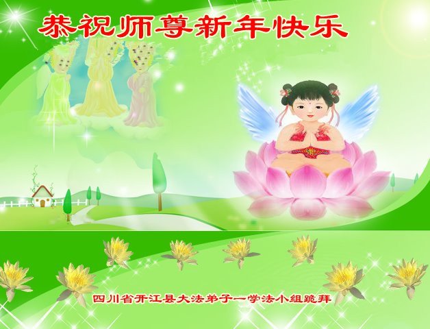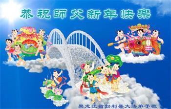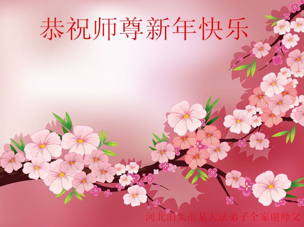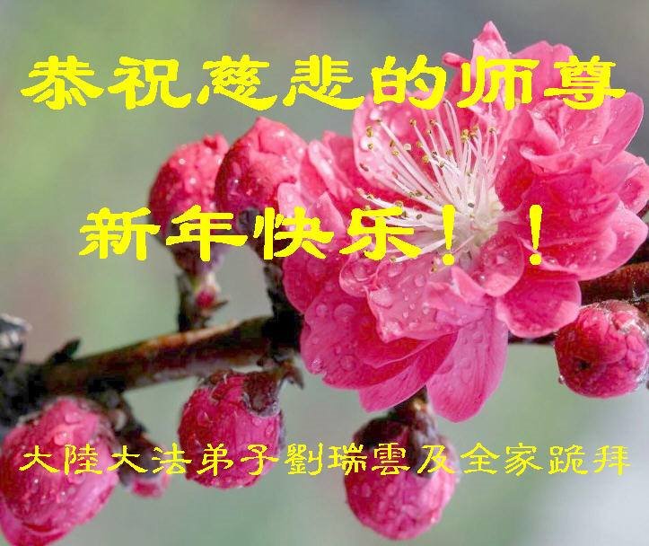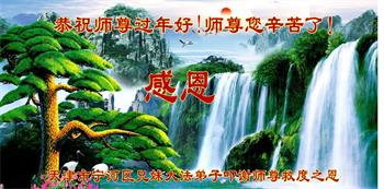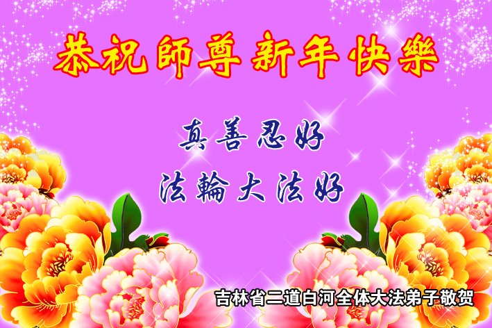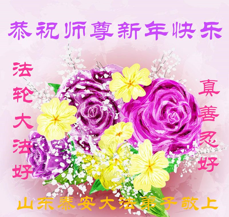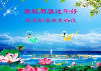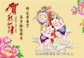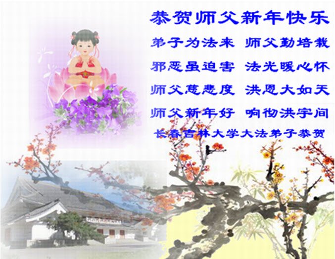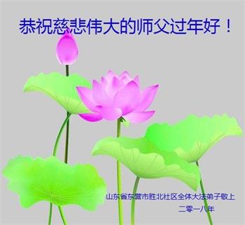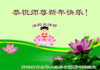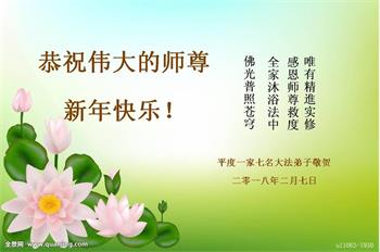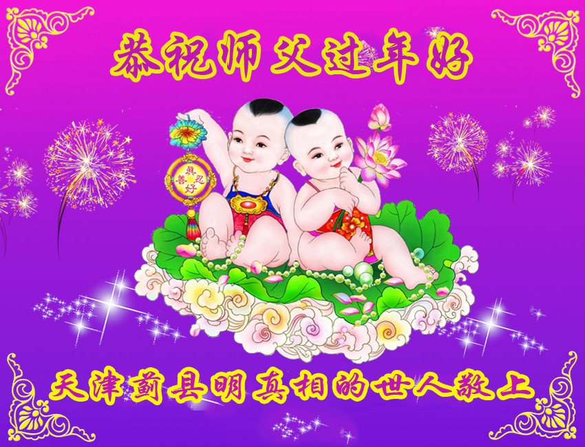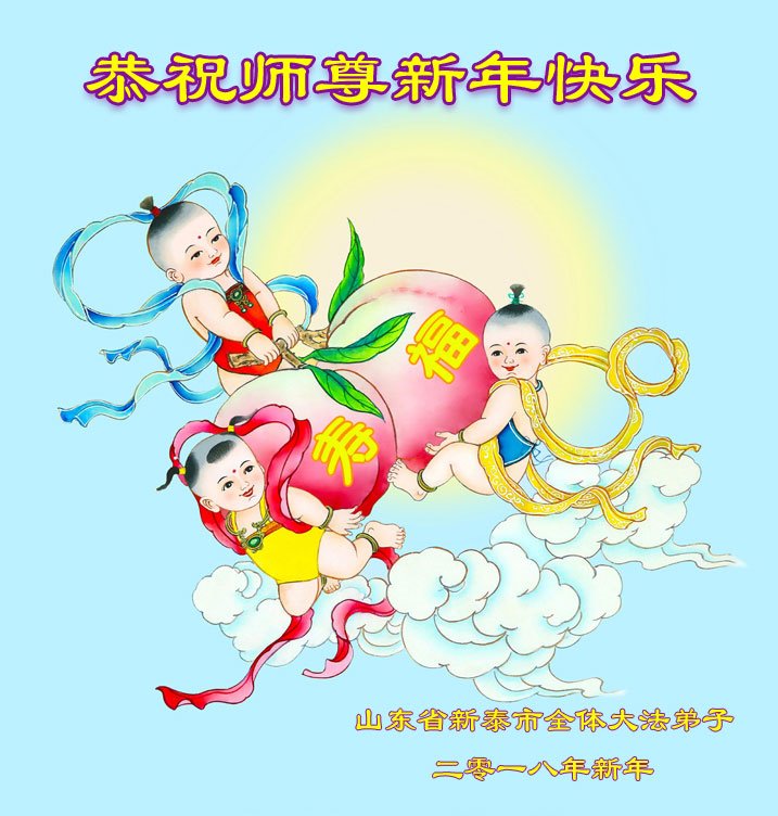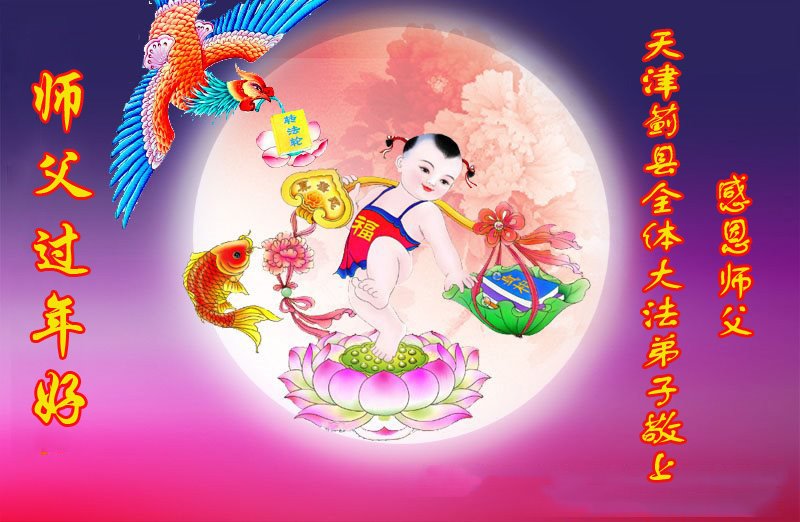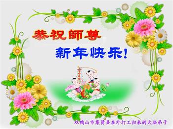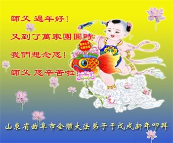 慈悲伟大的师父好!在这天地更新、万物复苏的时候,我们青岛东部的一资料点的全体老少大法弟子及家人给您拜年!恭祝师父新年快乐!借此,我们把满怀对慈悲伟大的师父的思念和感恩之心凝成一句话:学好法,修好心,不懈怠,多救人,路走正,报师恩,证实法!