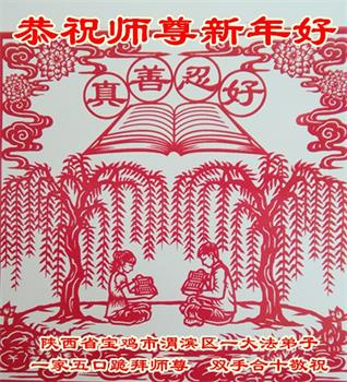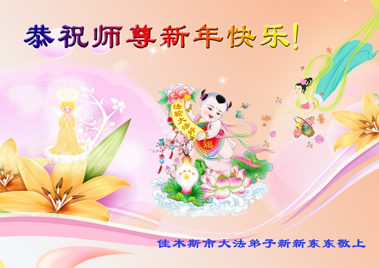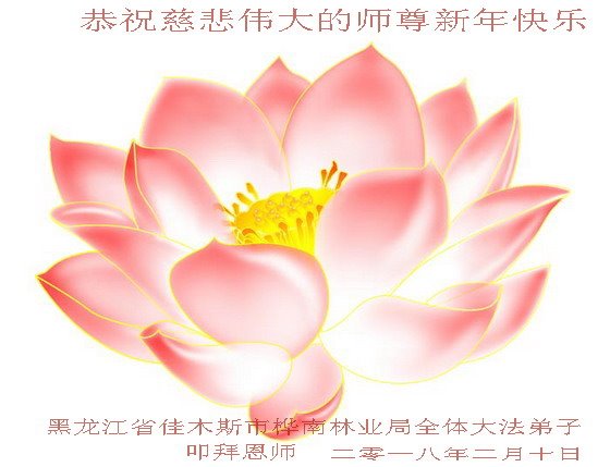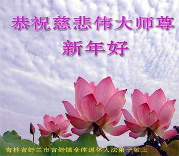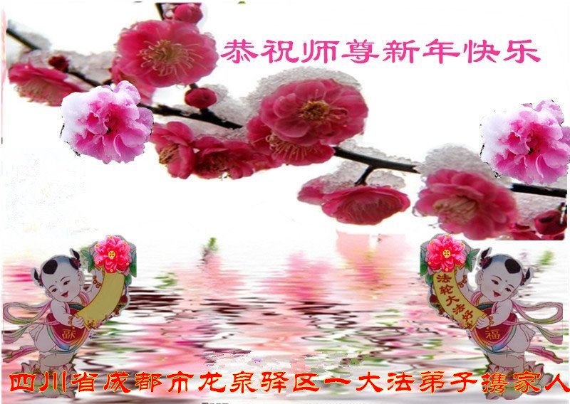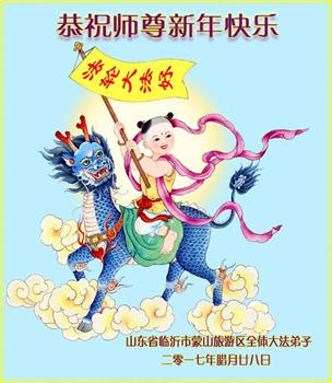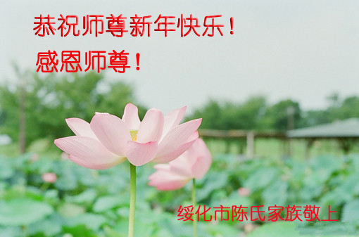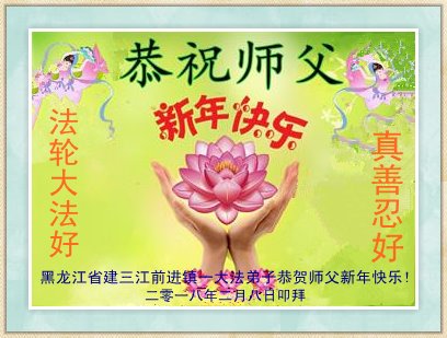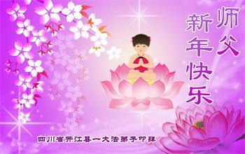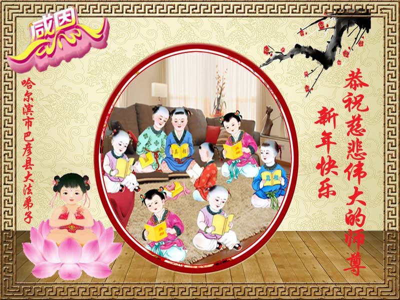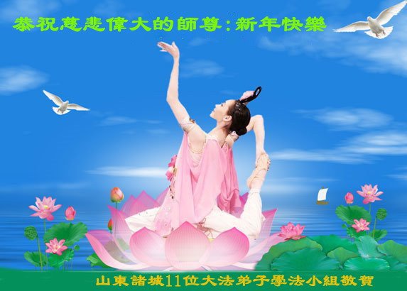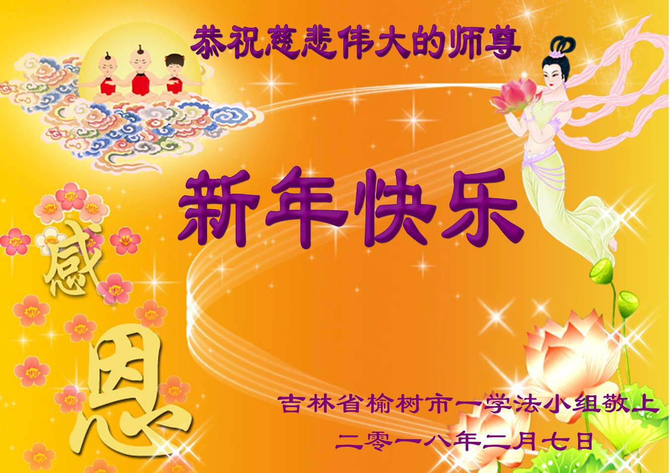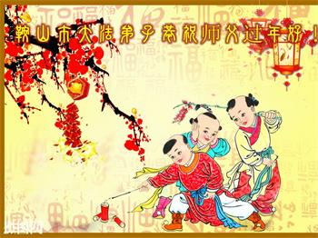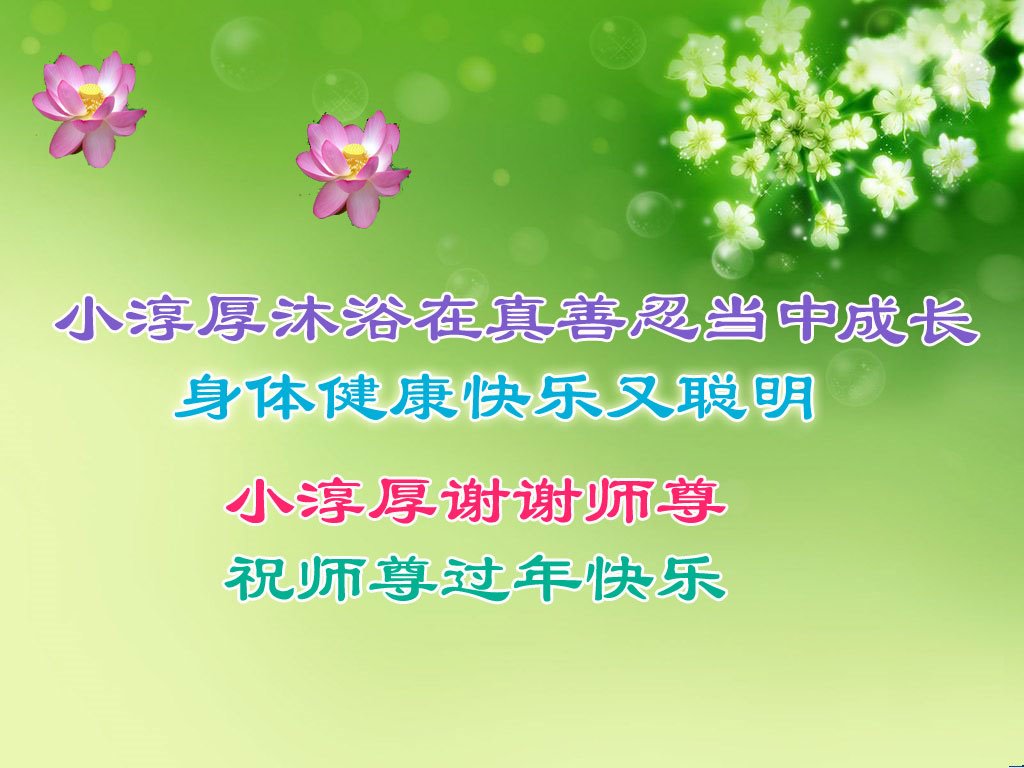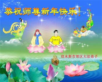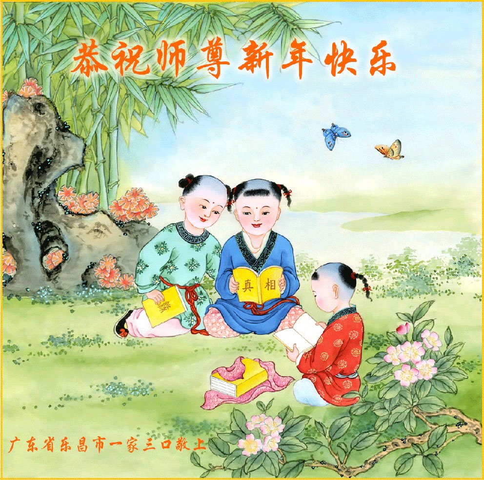 慈悲伟大的师父好!在这天地更新、万物复苏的时候,我们青岛东部的一资料点的全体老少大法弟子及家人给您拜年!恭祝师父新年快乐!借此,我们把满怀对慈悲伟大的师父的思念和感恩之心凝成一句话:学好法,修好心,不懈怠,多救人,路走正,报师恩,证实法!