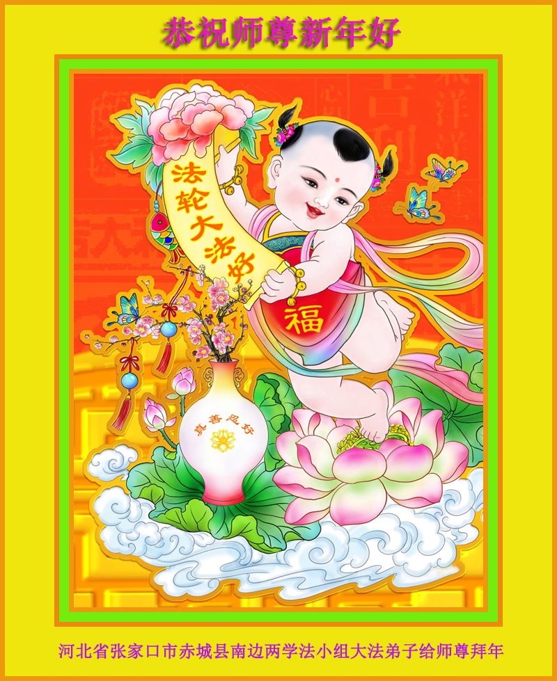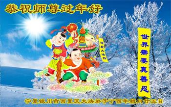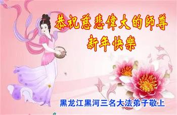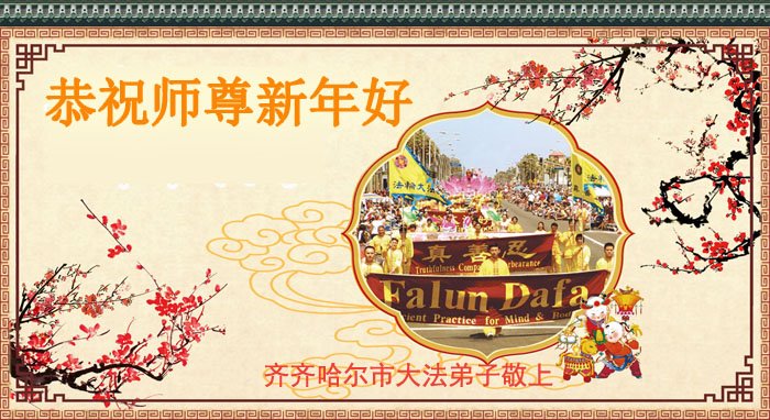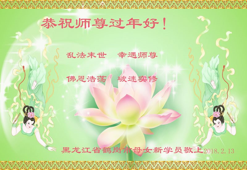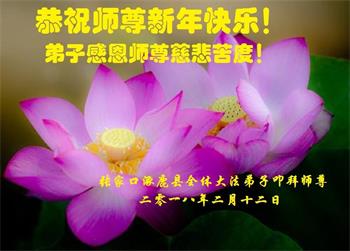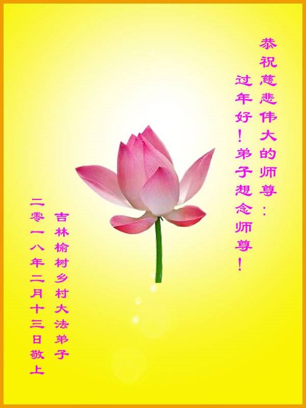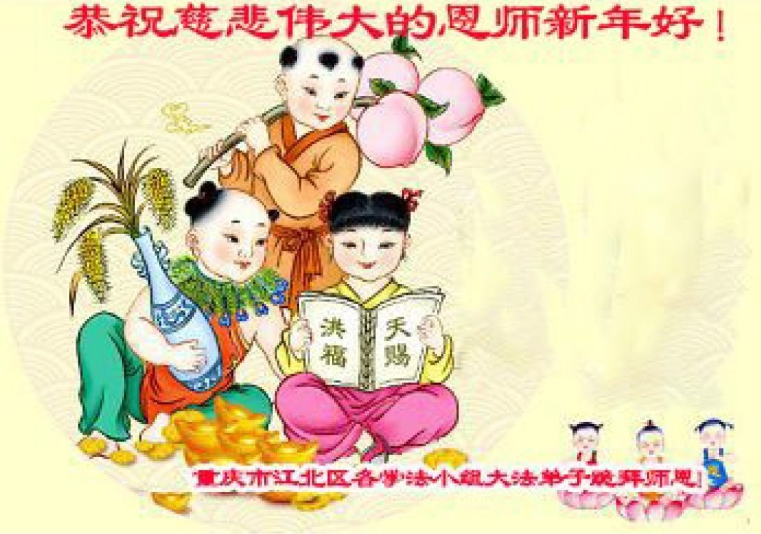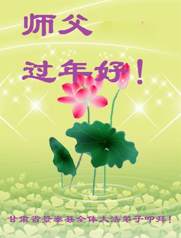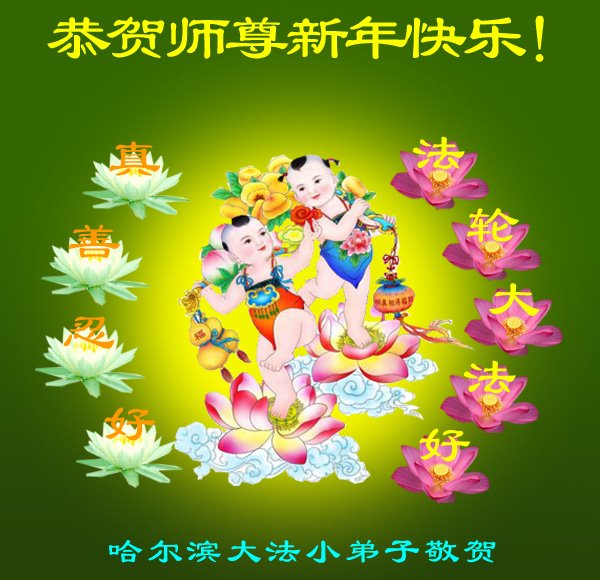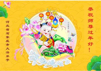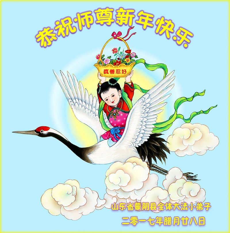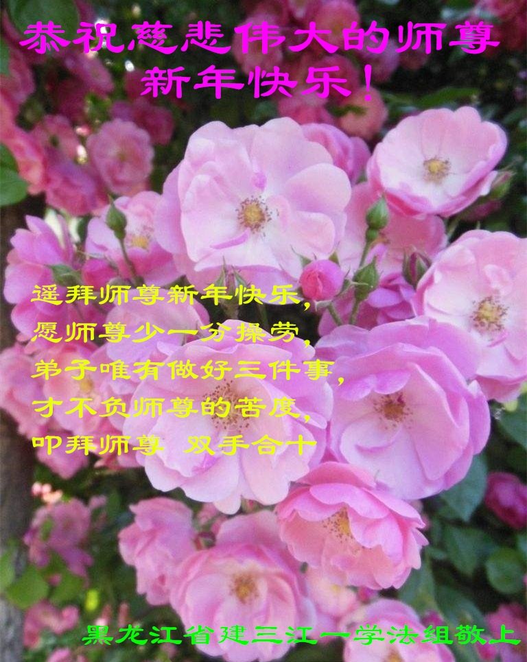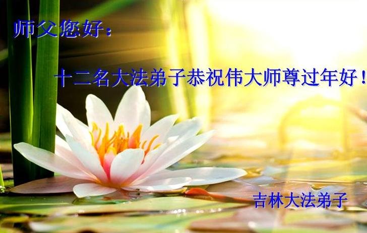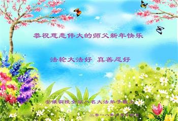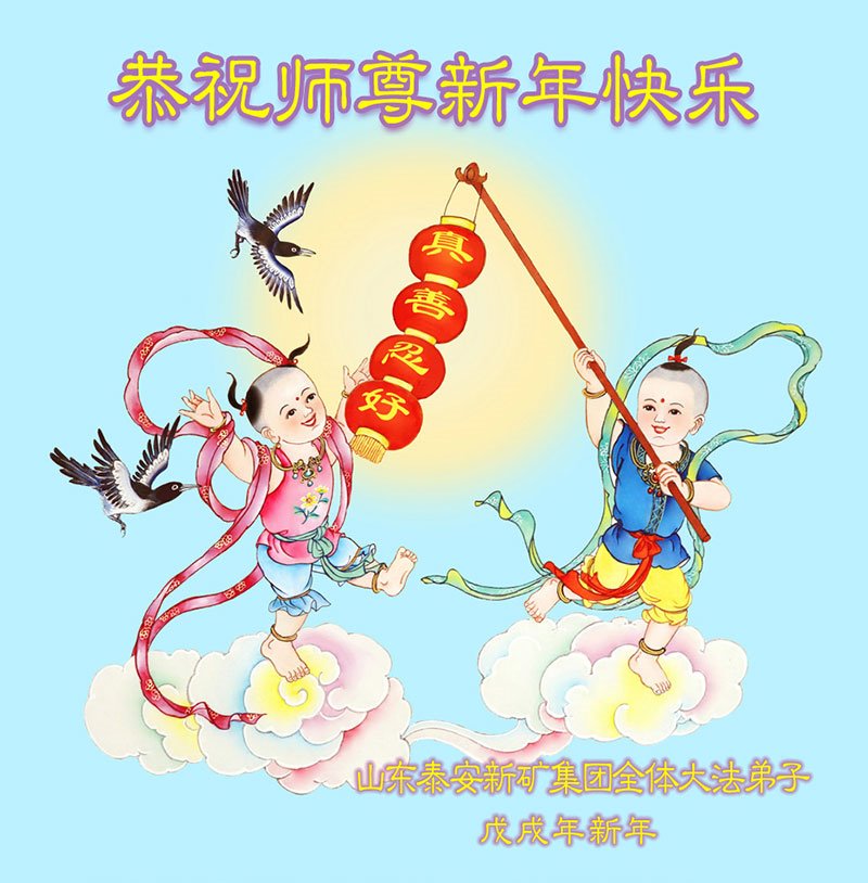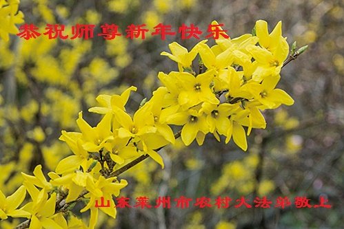 慈悲伟大的师父好!在这天地更新、万物复苏的时候,我们青岛东部的一资料点的全体老少大法弟子及家人给您拜年!恭祝师父新年快乐!借此,我们把满怀对慈悲伟大的师父的思念和感恩之心凝成一句话:学好法,修好心,不懈怠,多救人,路走正,报师恩,证实法!