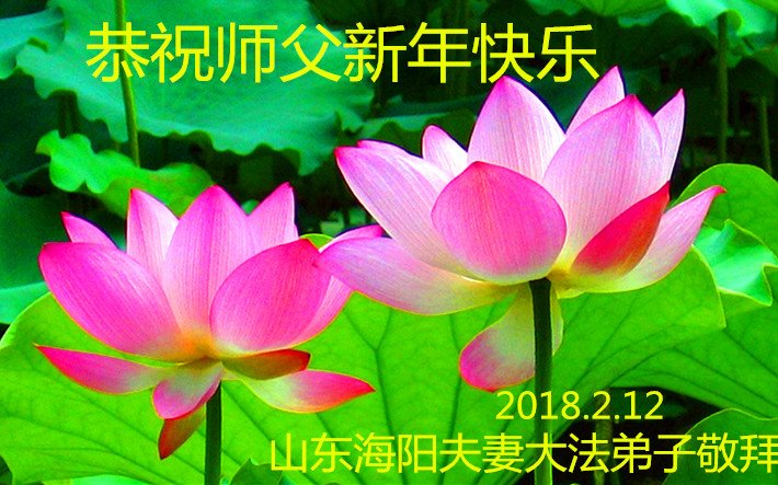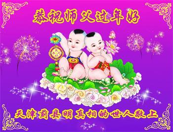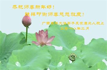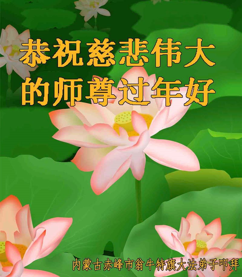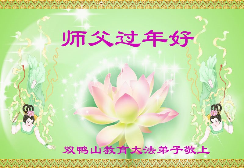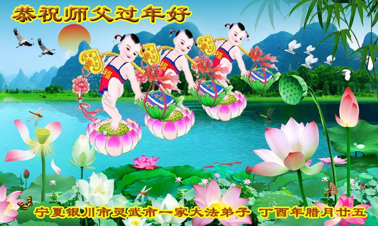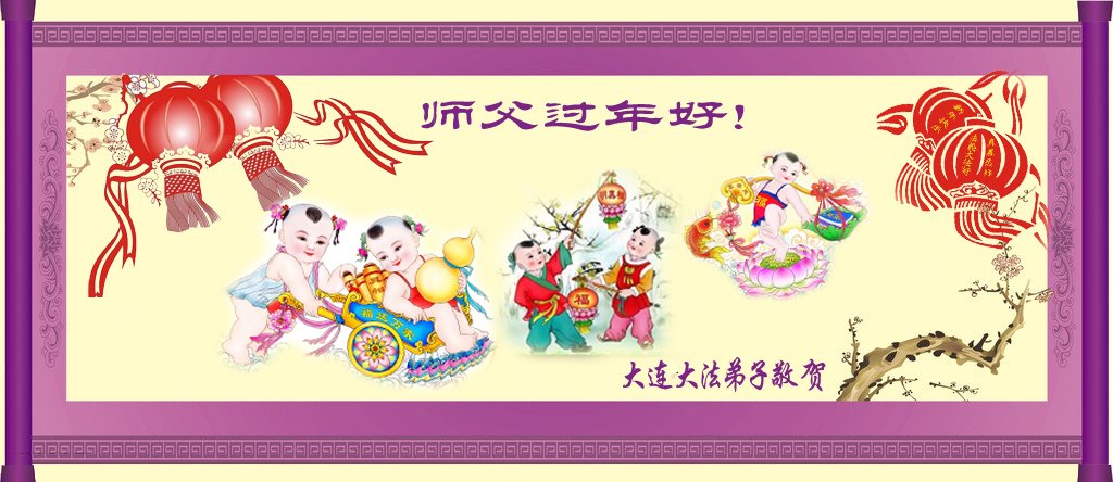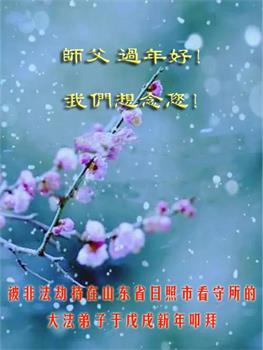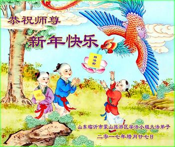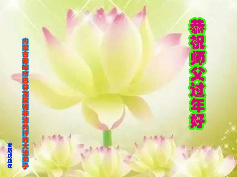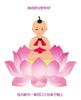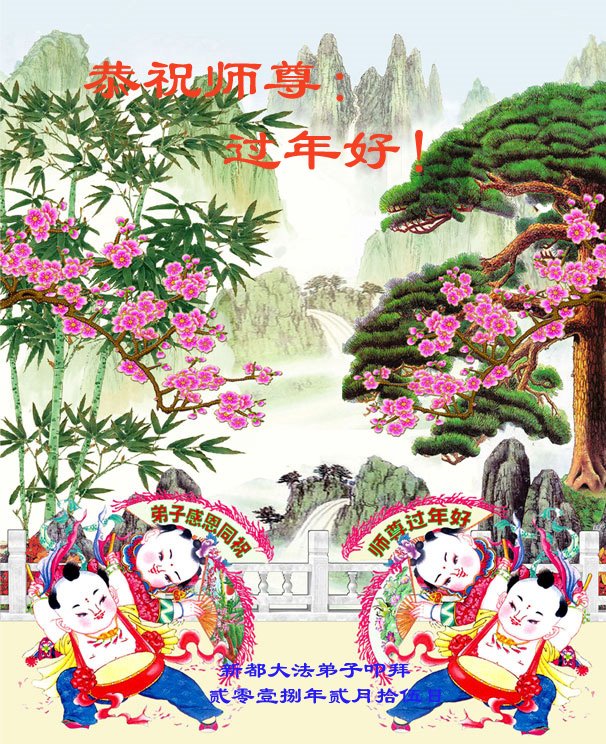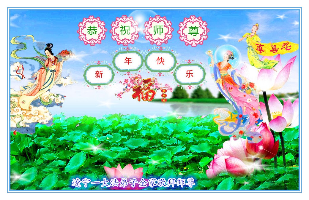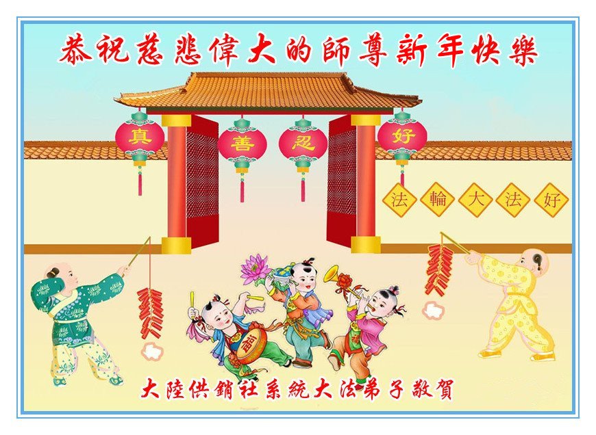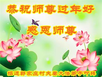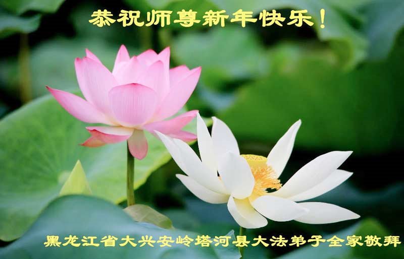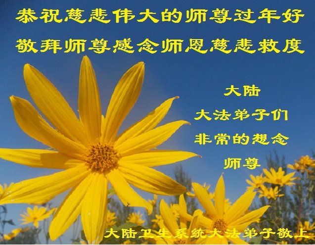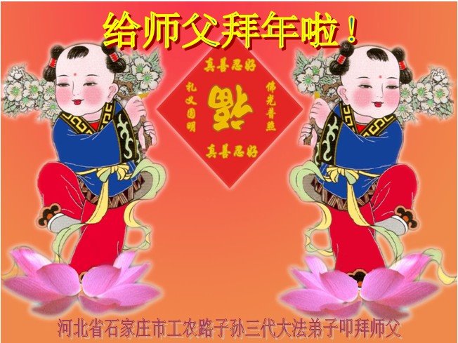慈悲伟大的师父好!在这天地更新、万物复苏的时候,我们青岛东部的一资料点的全体老少大法弟子及家人给您拜年!恭祝师父新年快乐!借此,我们把满怀对慈悲伟大的师父的思念和感恩之心凝成一句话:学好法,修好心,不懈怠,多救人,路走正,报师恩,证实法!