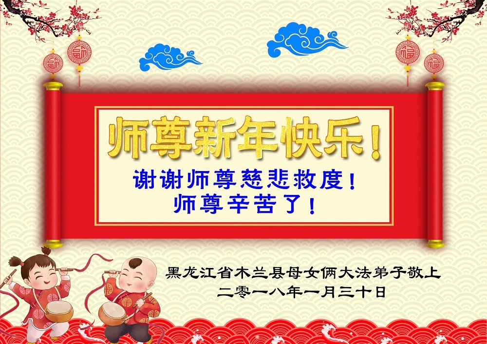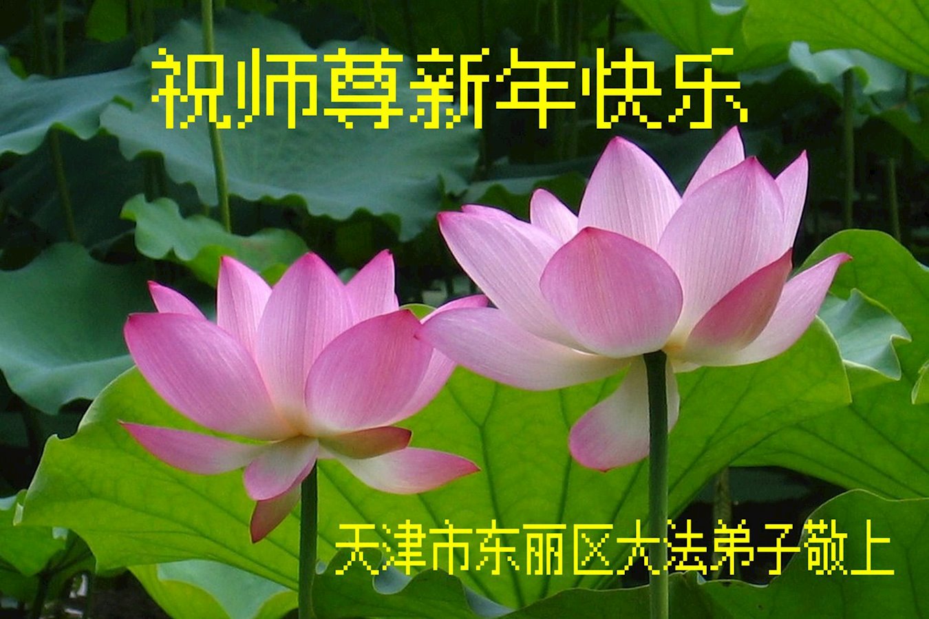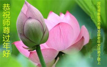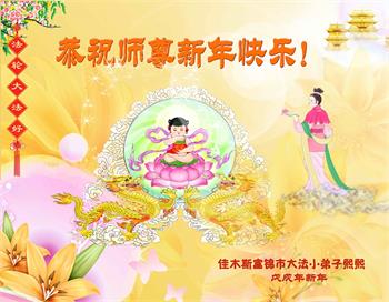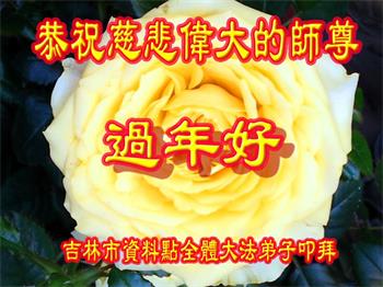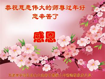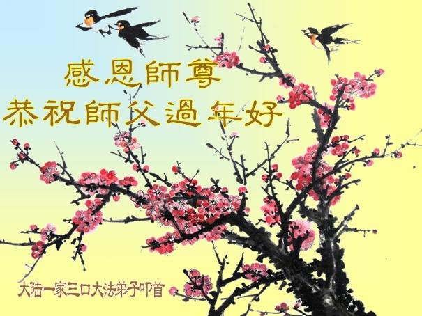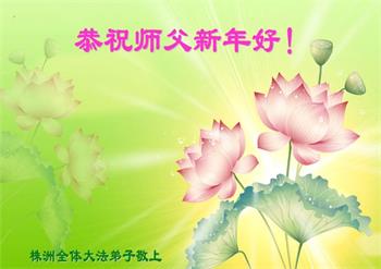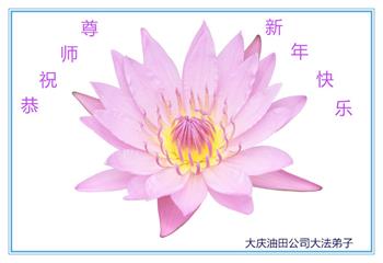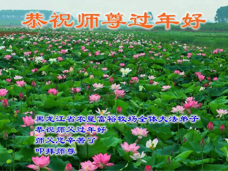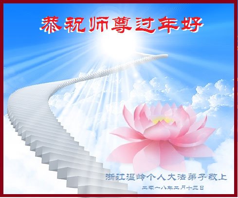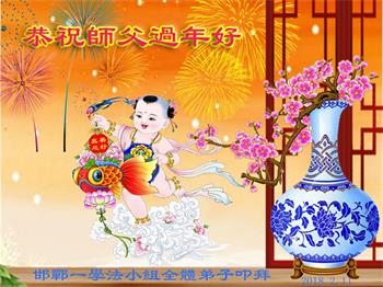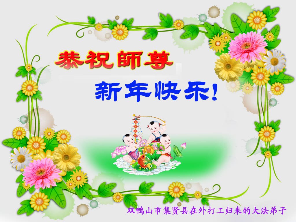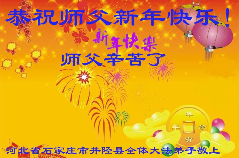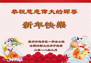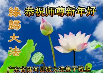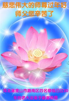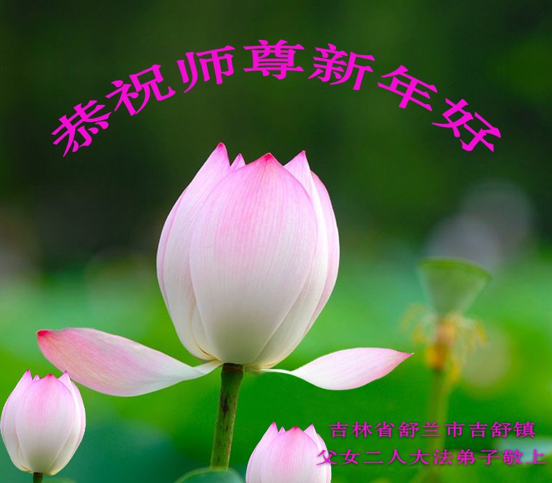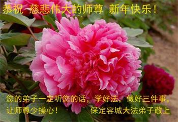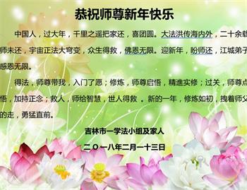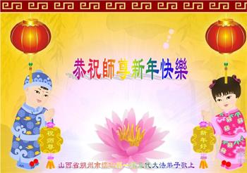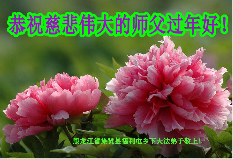 慈悲伟大的师父好!在这天地更新、万物复苏的时候,我们青岛东部的一资料点的全体老少大法弟子及家人给您拜年!恭祝师父新年快乐!借此,我们把满怀对慈悲伟大的师父的思念和感恩之心凝成一句话:学好法,修好心,不懈怠,多救人,路走正,报师恩,证实法!