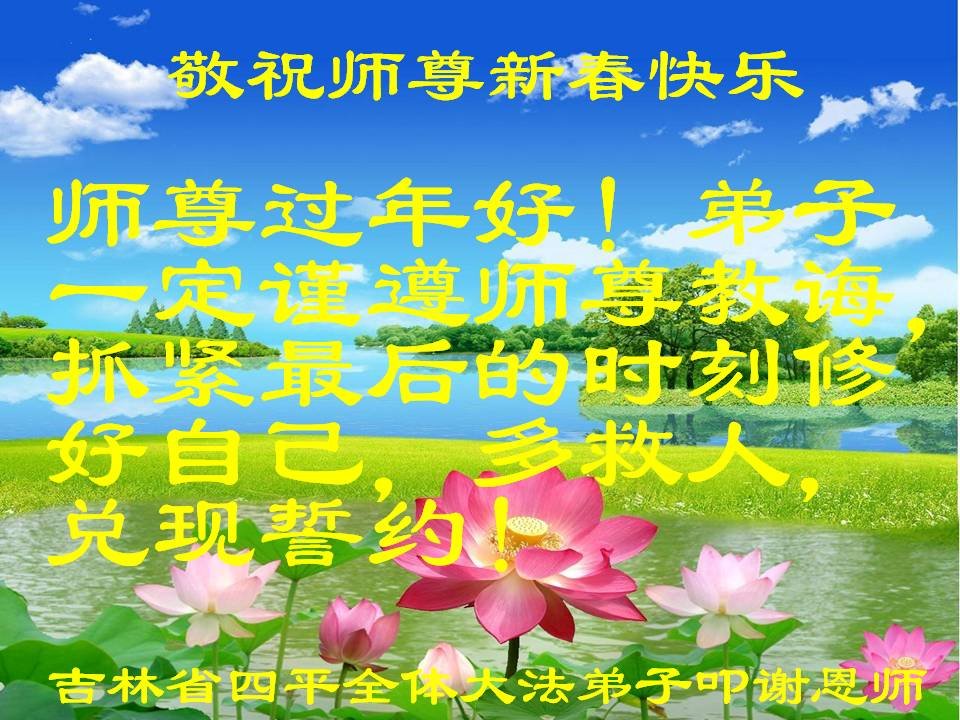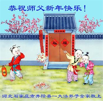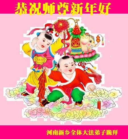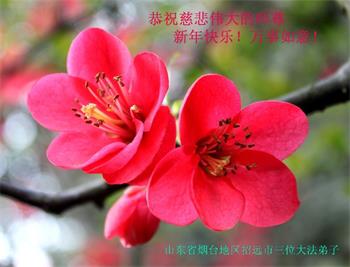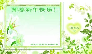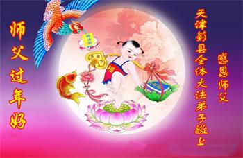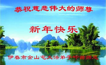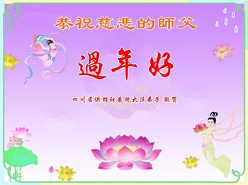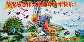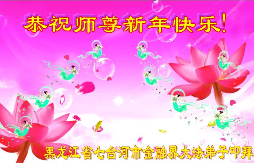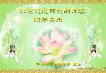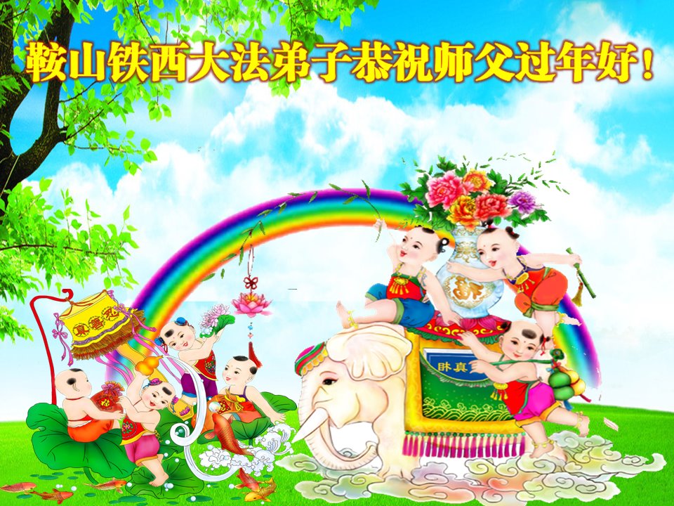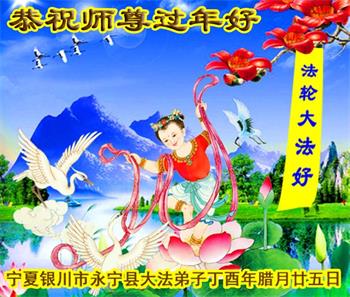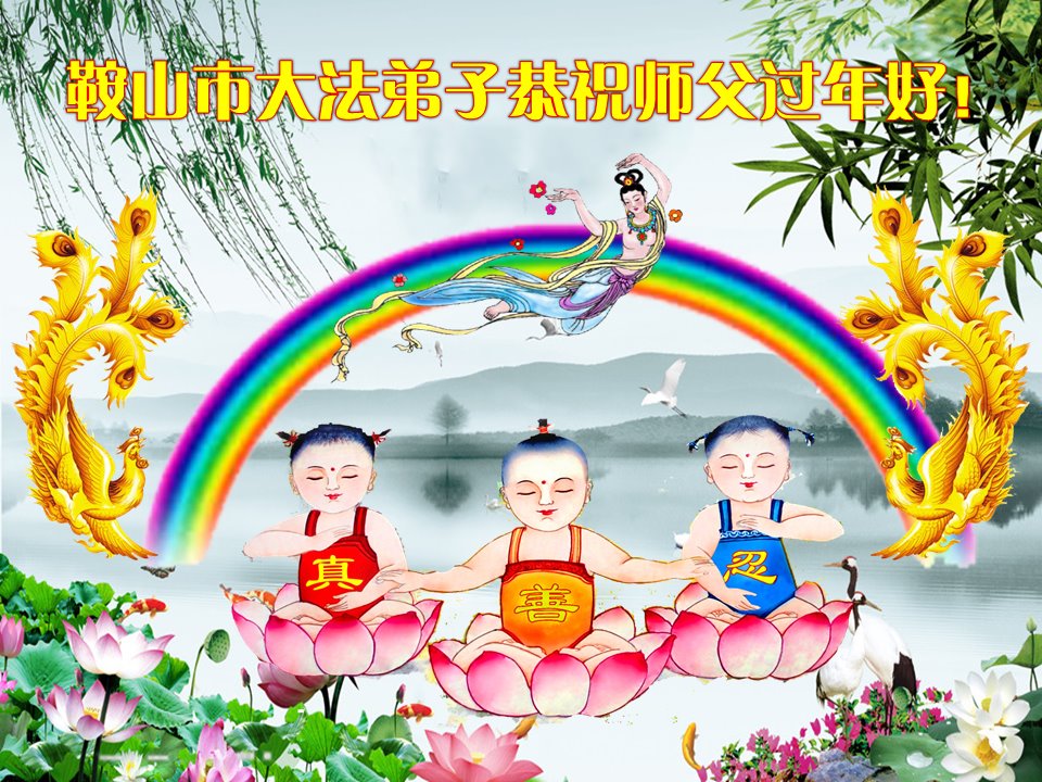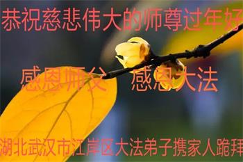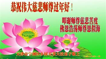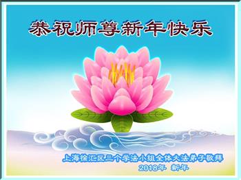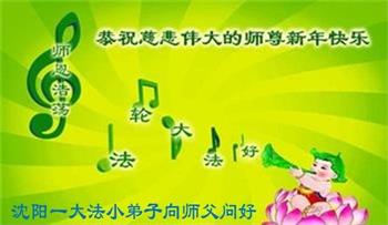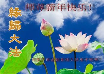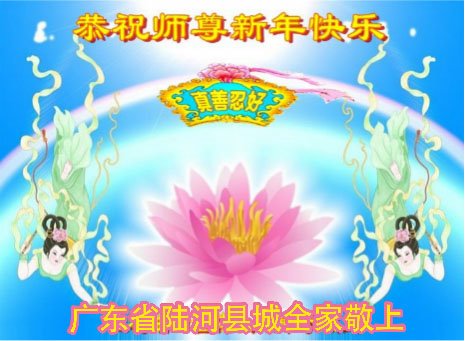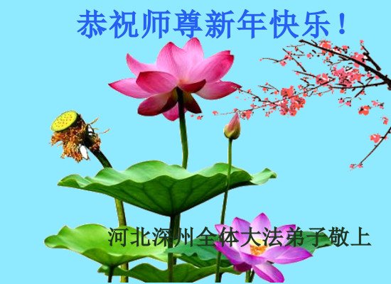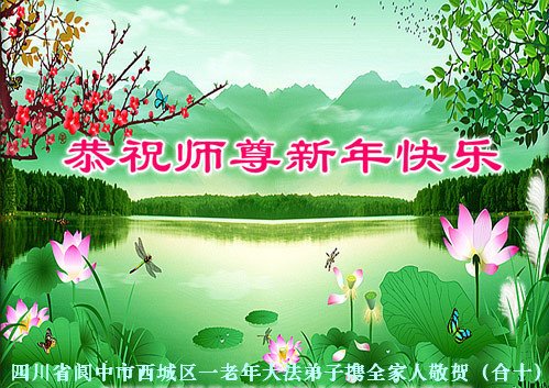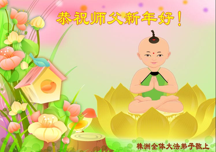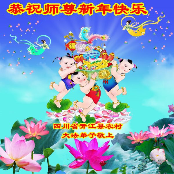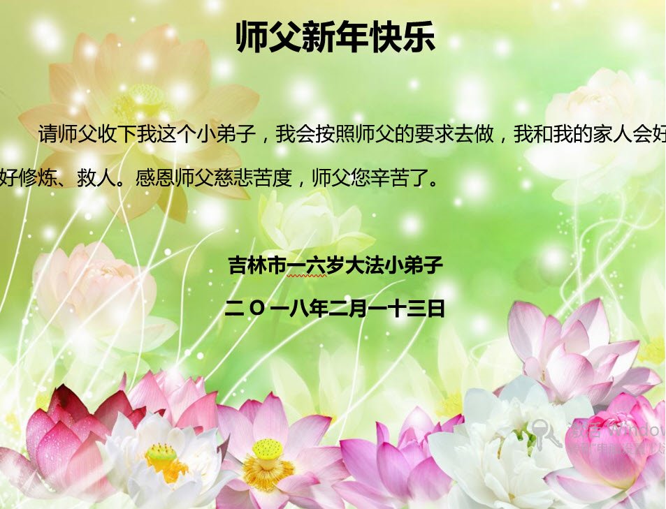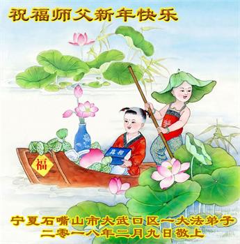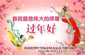 慈悲伟大的师父好!在这天地更新、万物复苏的时候,我们青岛东部的一资料点的全体老少大法弟子及家人给您拜年!恭祝师父新年快乐!借此,我们把满怀对慈悲伟大的师父的思念和感恩之心凝成一句话:学好法,修好心,不懈怠,多救人,路走正,报师恩,证实法!