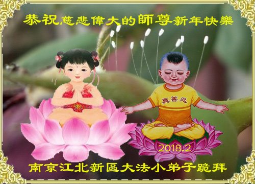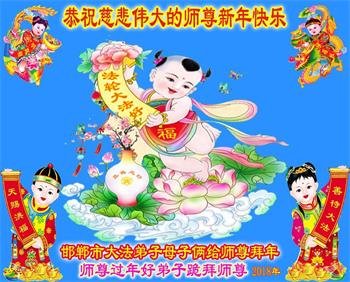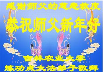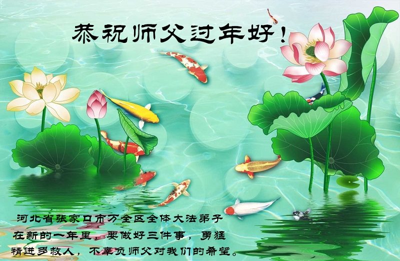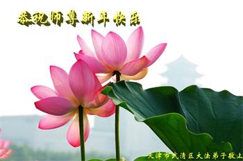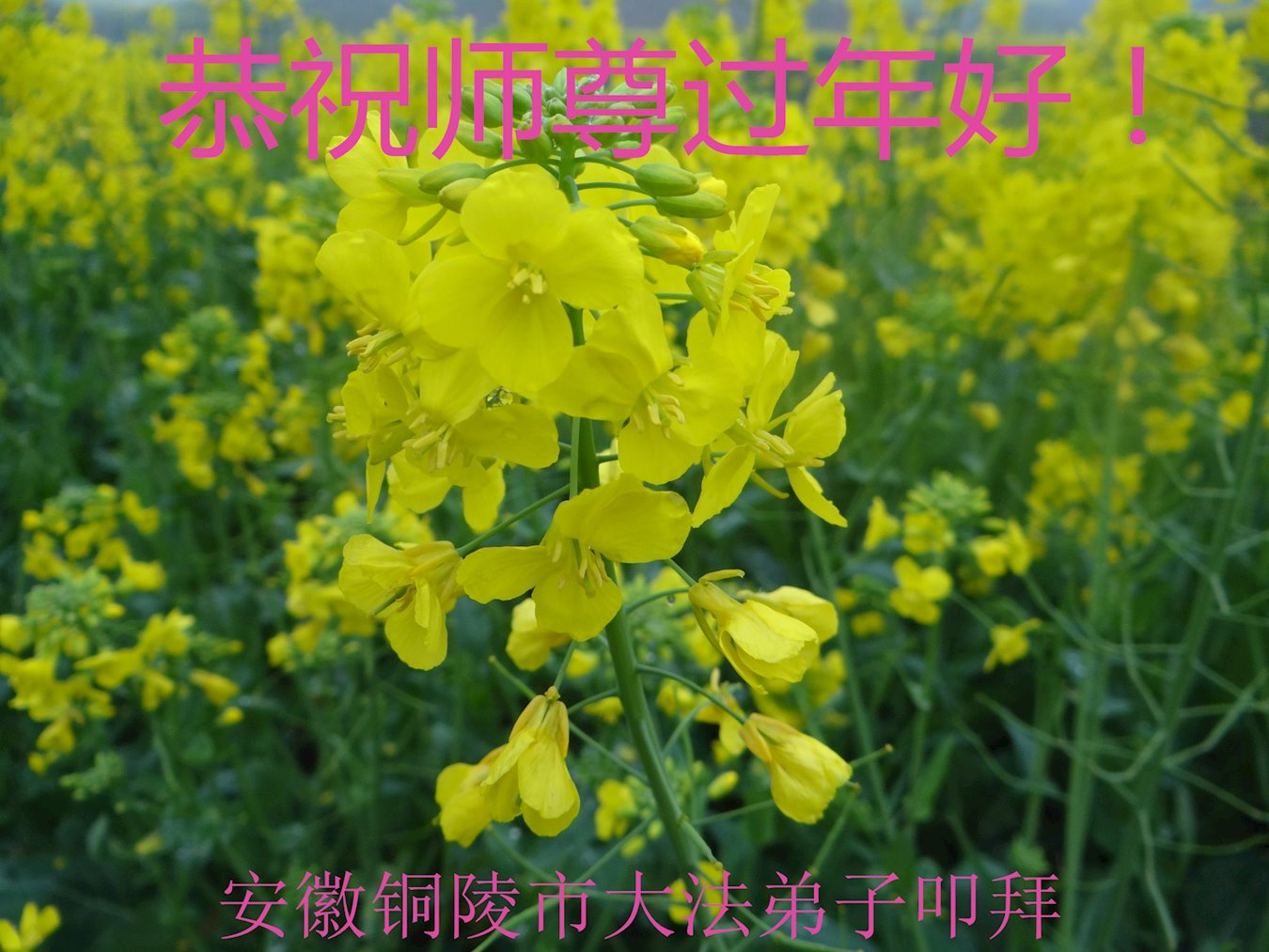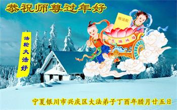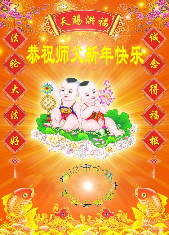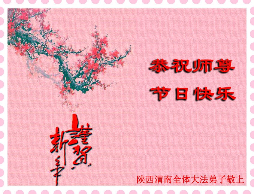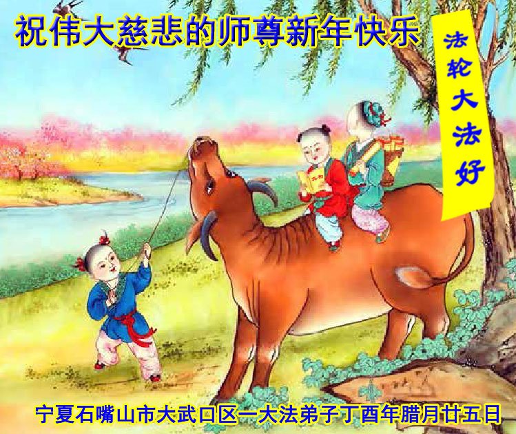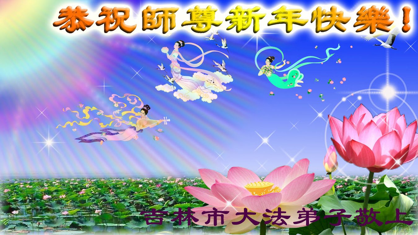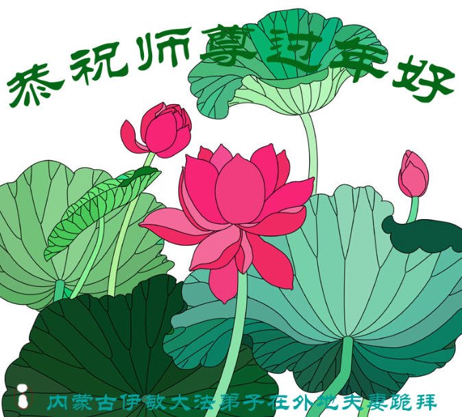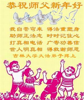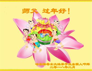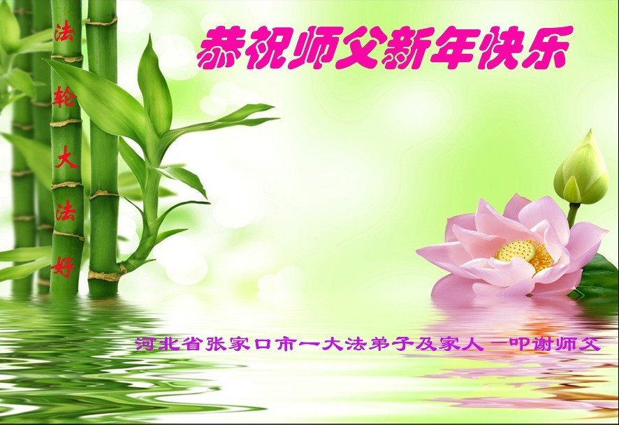 慈悲伟大的师父好!在这天地更新、万物复苏的时候,我们青岛东部的一资料点的全体老少大法弟子及家人给您拜年!恭祝师父新年快乐!借此,我们把满怀对慈悲伟大的师父的思念和感恩之心凝成一句话:学好法,修好心,不懈怠,多救人,路走正,报师恩,证实法!