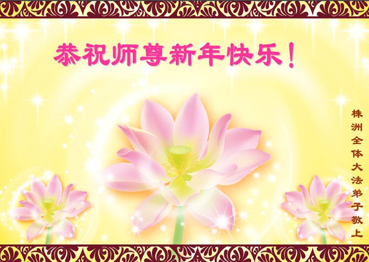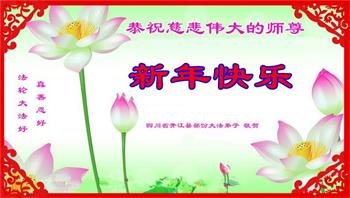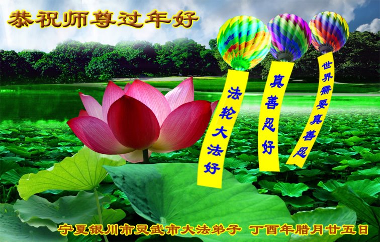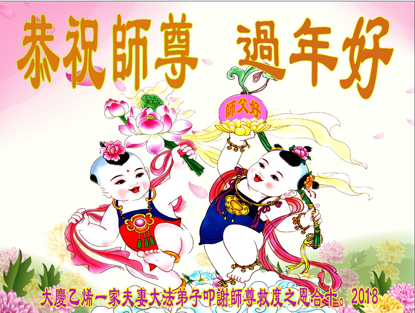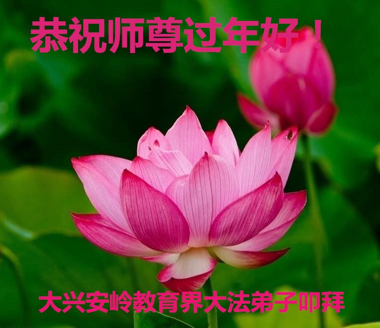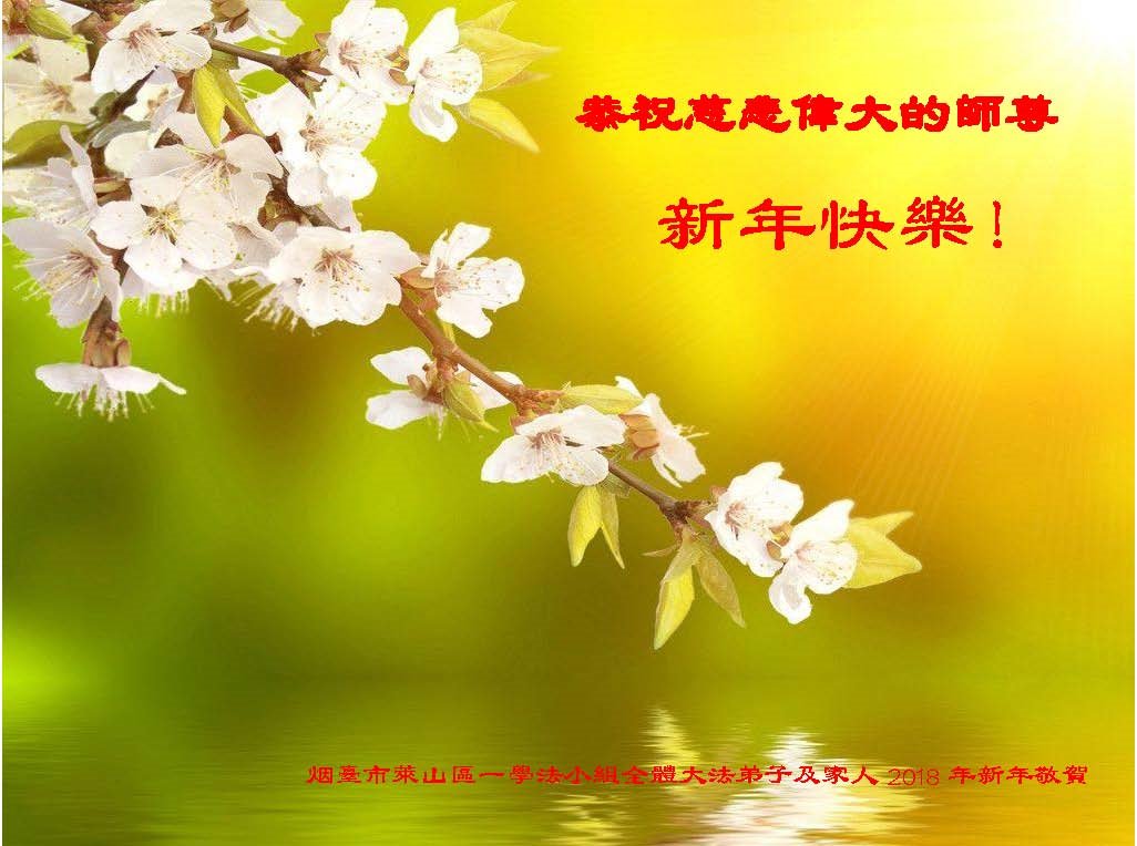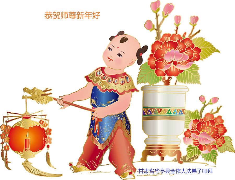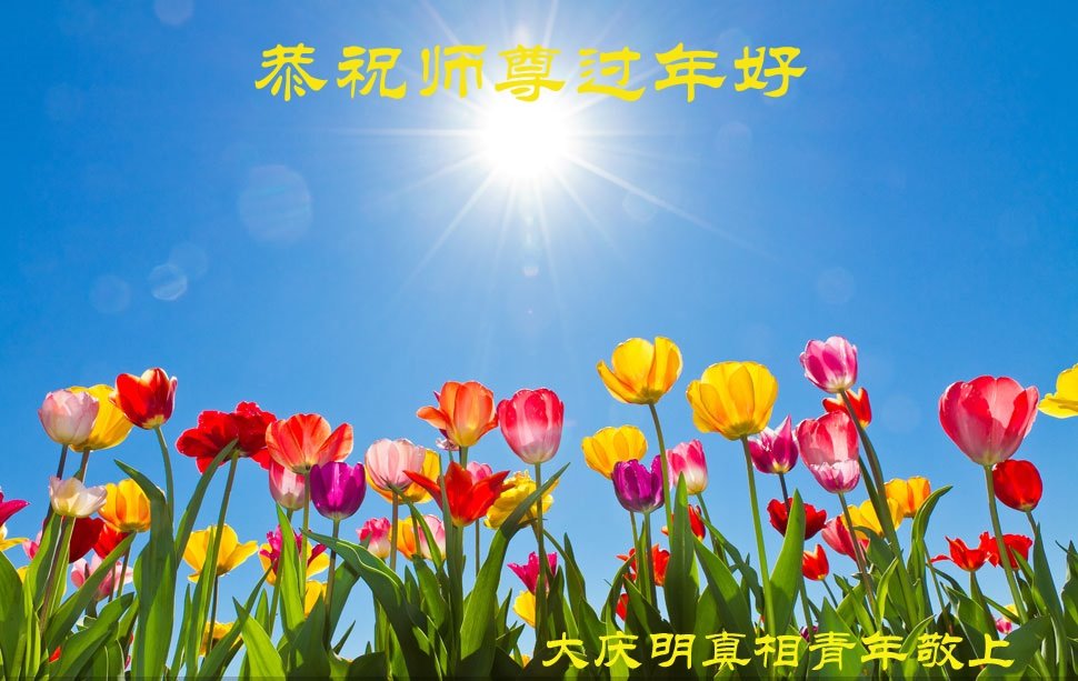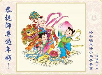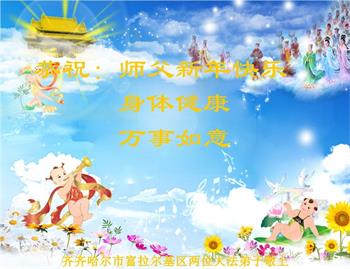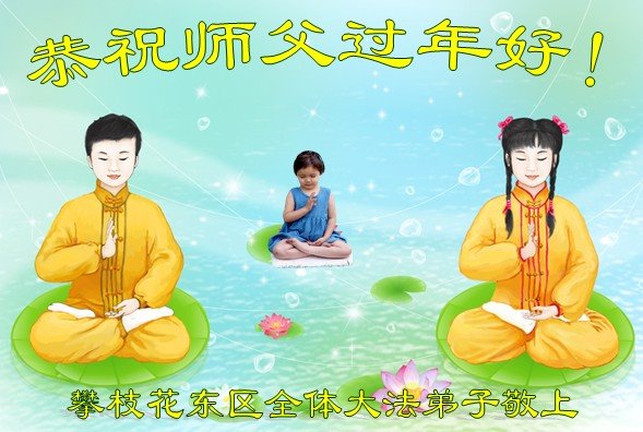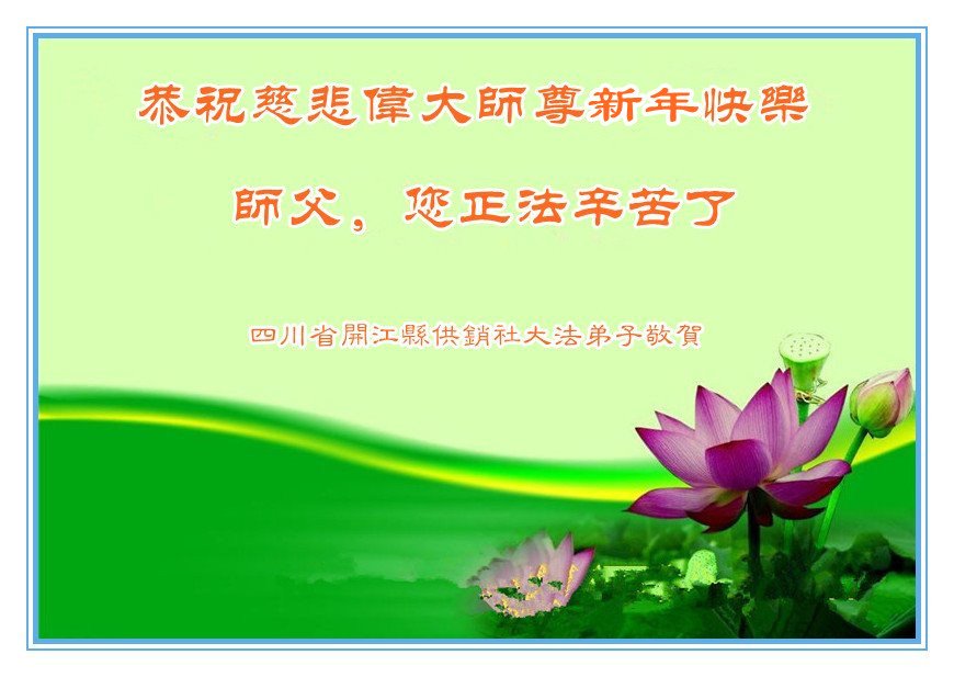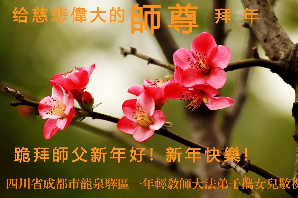 慈悲伟大的师父好!在这天地更新、万物复苏的时候,我们青岛东部的一资料点的全体老少大法弟子及家人给您拜年!恭祝师父新年快乐!借此,我们把满怀对慈悲伟大的师父的思念和感恩之心凝成一句话:学好法,修好心,不懈怠,多救人,路走正,报师恩,证实法!