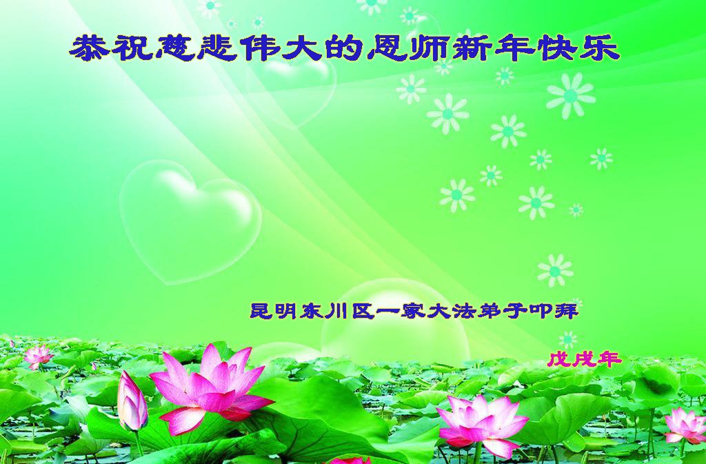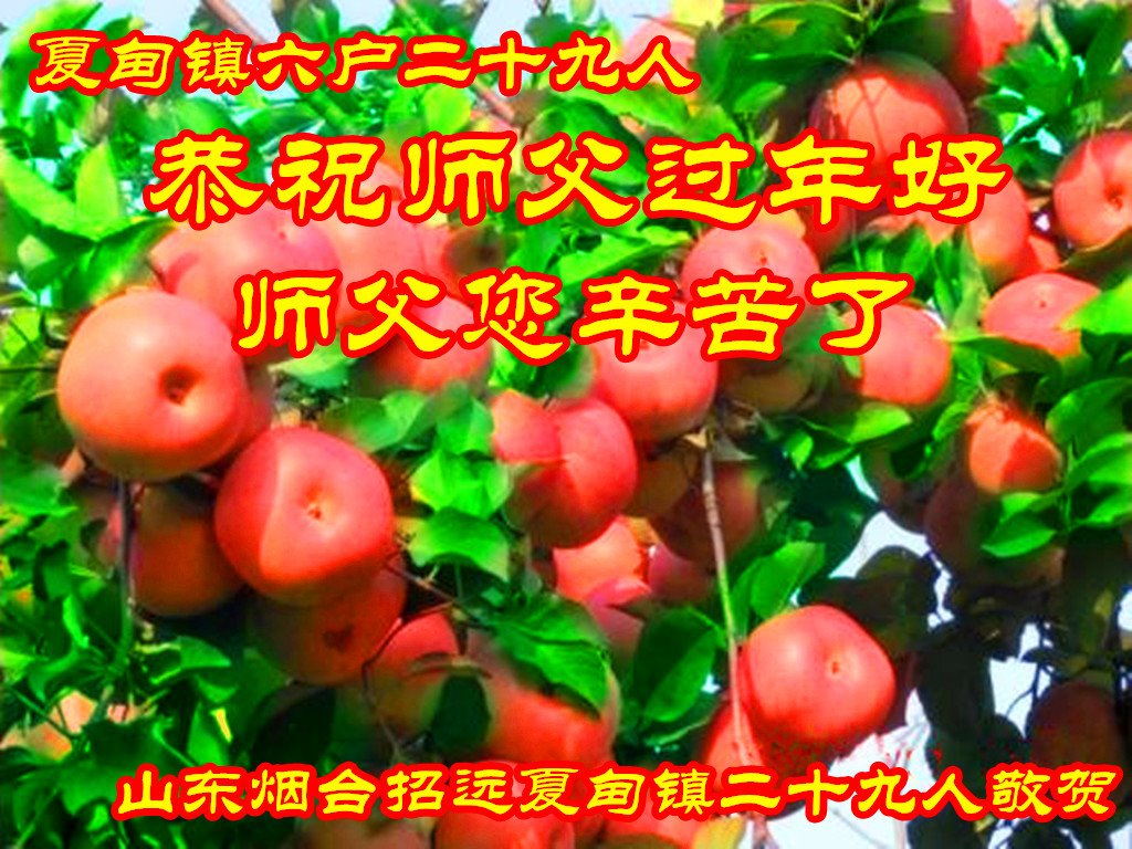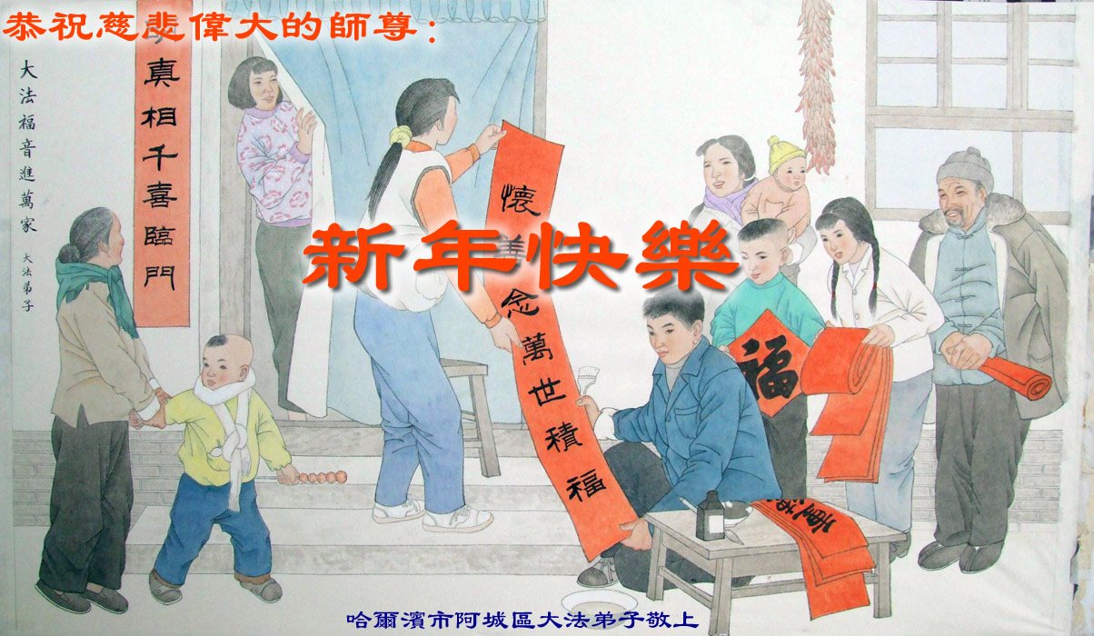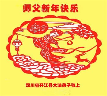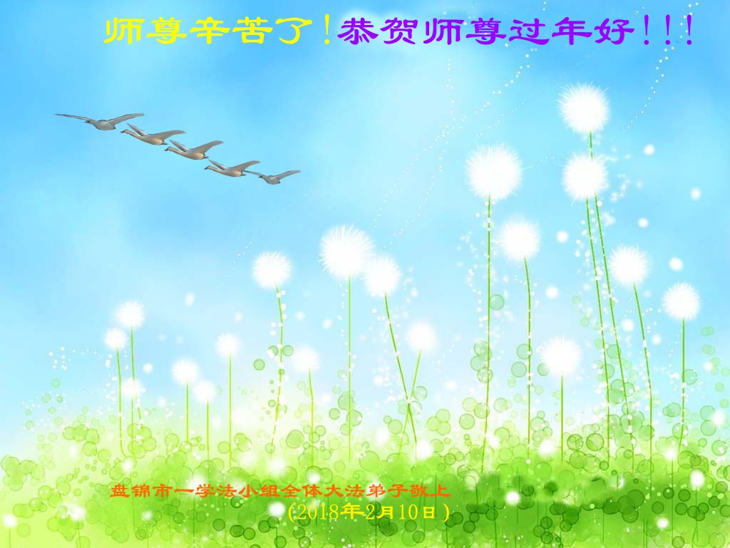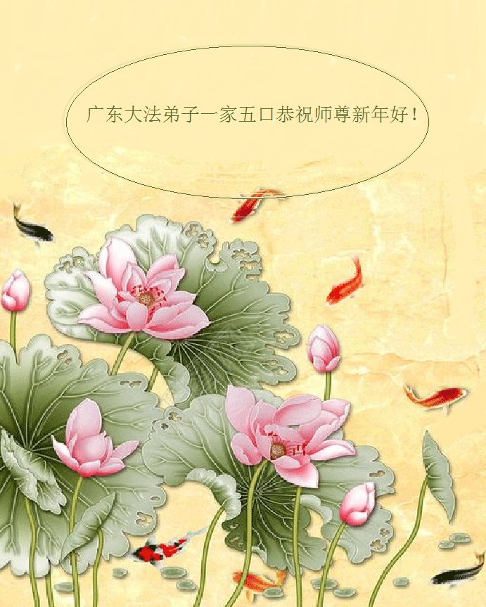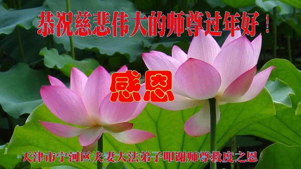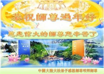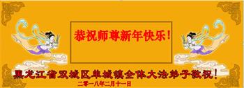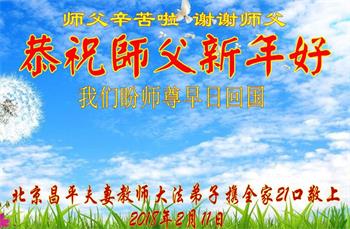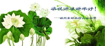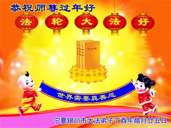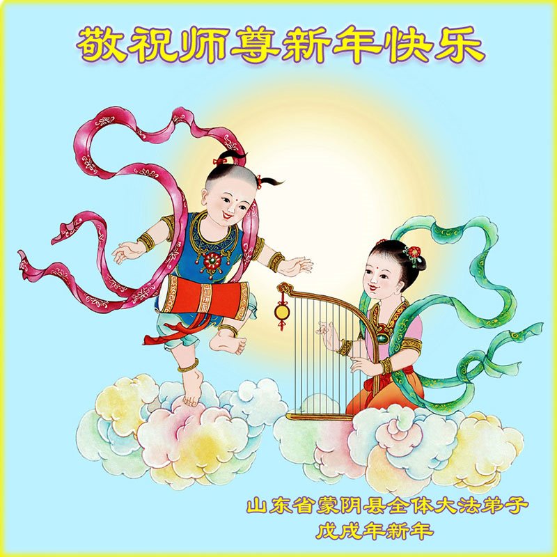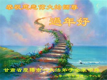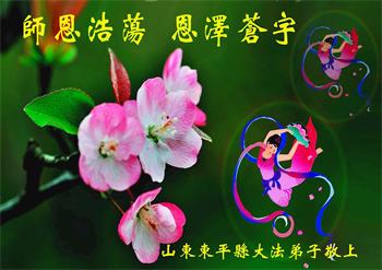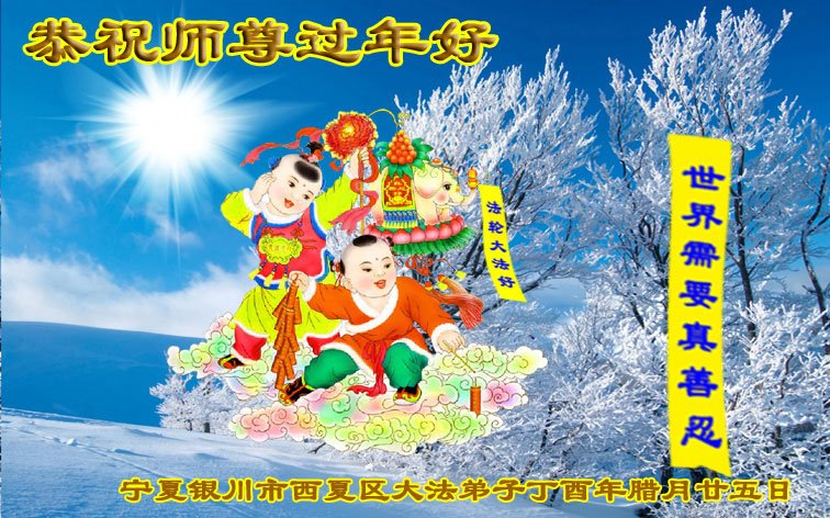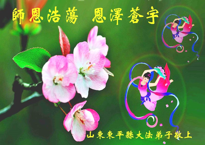 慈悲伟大的师父好!在这天地更新、万物复苏的时候,我们青岛东部的一资料点的全体老少大法弟子及家人给您拜年!恭祝师父新年快乐!借此,我们把满怀对慈悲伟大的师父的思念和感恩之心凝成一句话:学好法,修好心,不懈怠,多救人,路走正,报师恩,证实法!