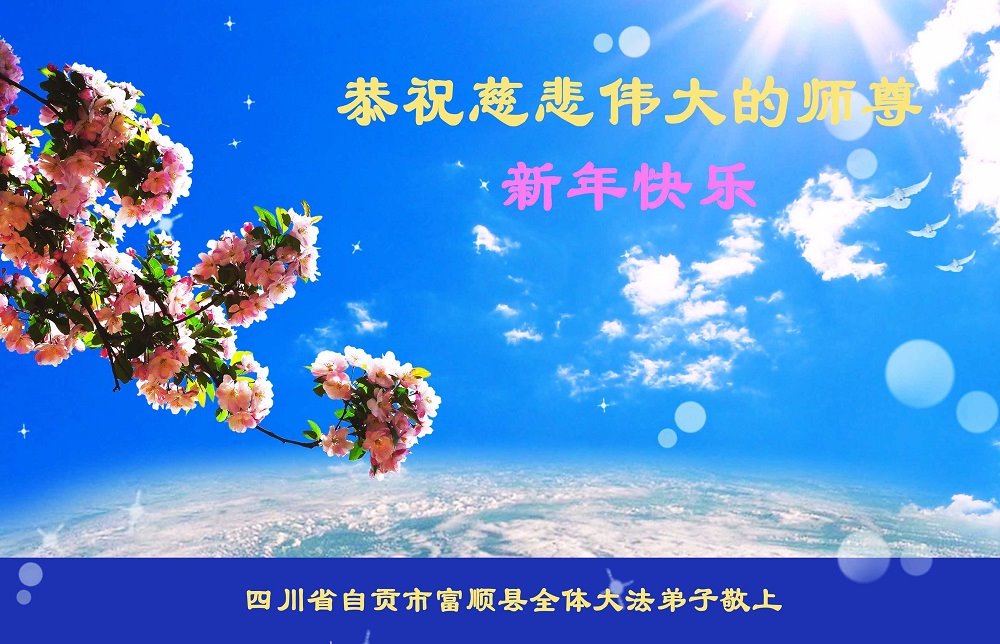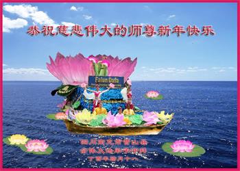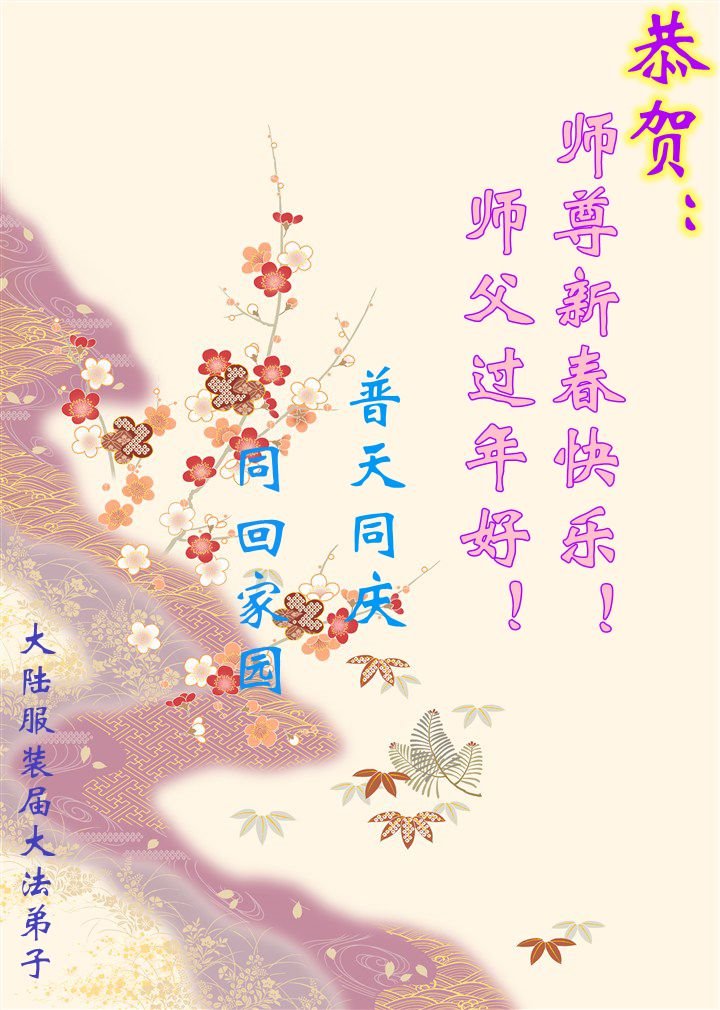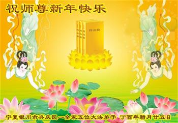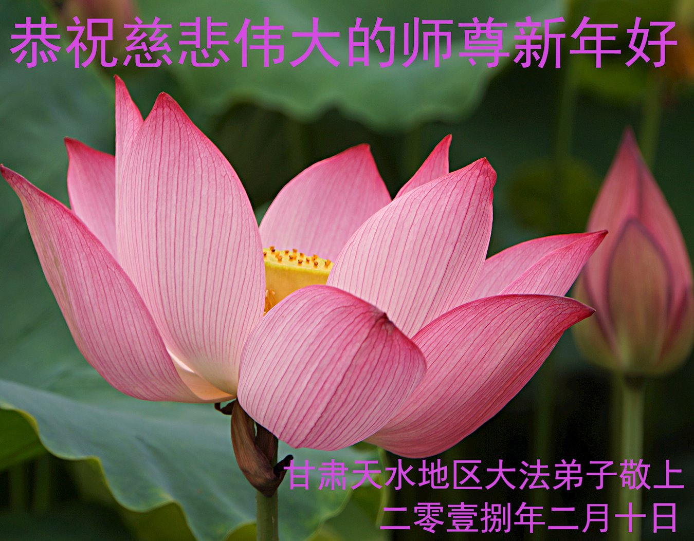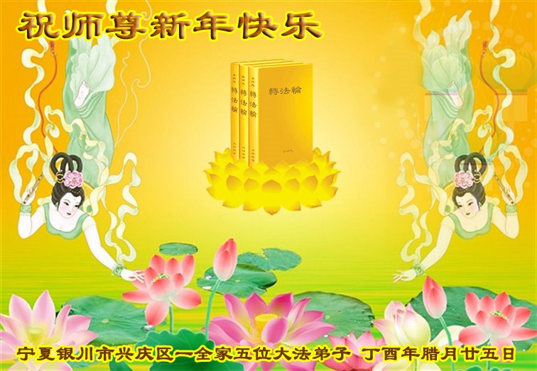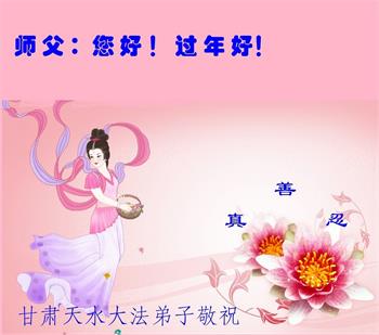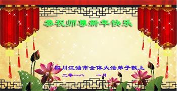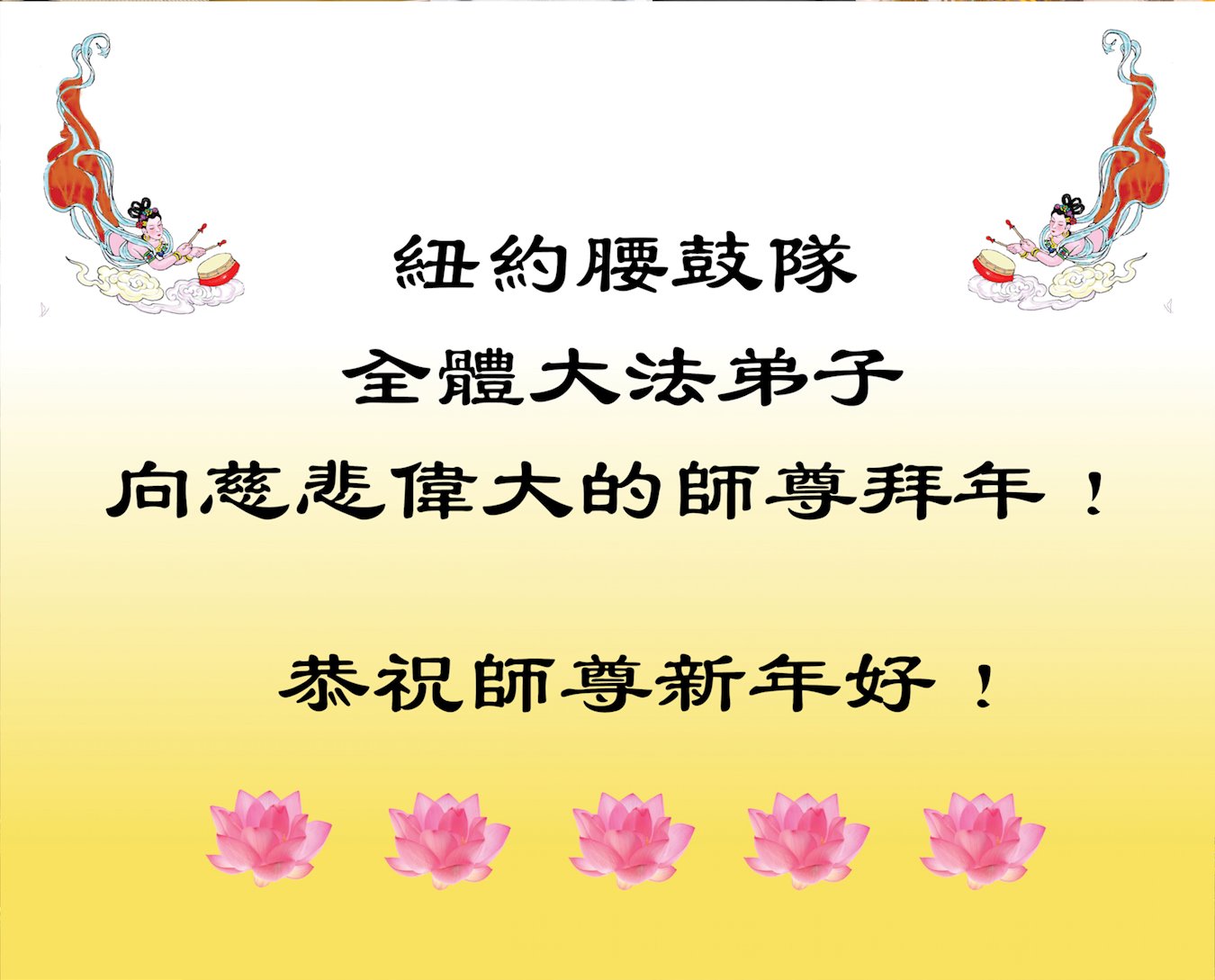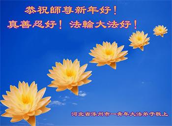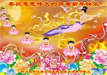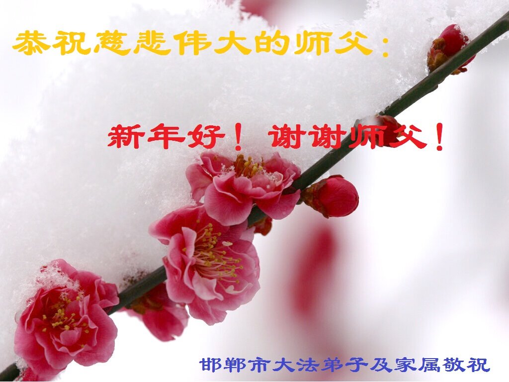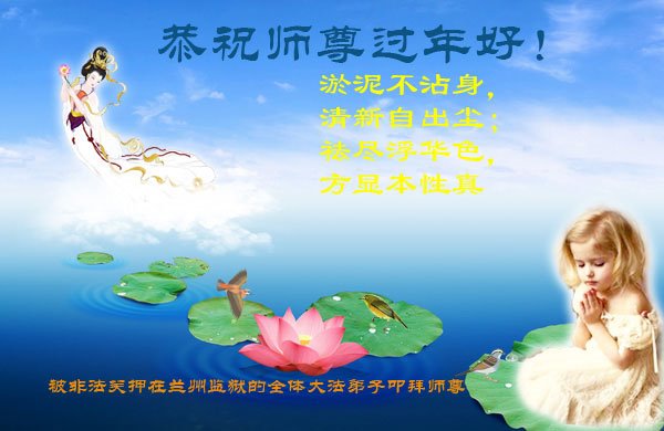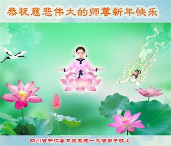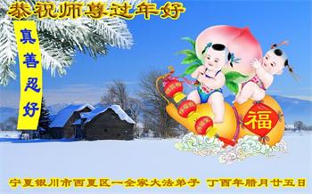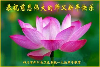 慈悲伟大的师父好!在这天地更新、万物复苏的时候,我们青岛东部的一资料点的全体老少大法弟子及家人给您拜年!恭祝师父新年快乐!借此,我们把满怀对慈悲伟大的师父的思念和感恩之心凝成一句话:学好法,修好心,不懈怠,多救人,路走正,报师恩,证实法!