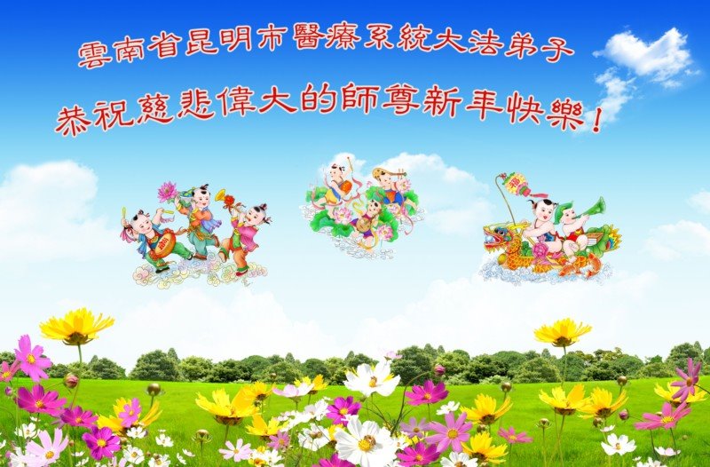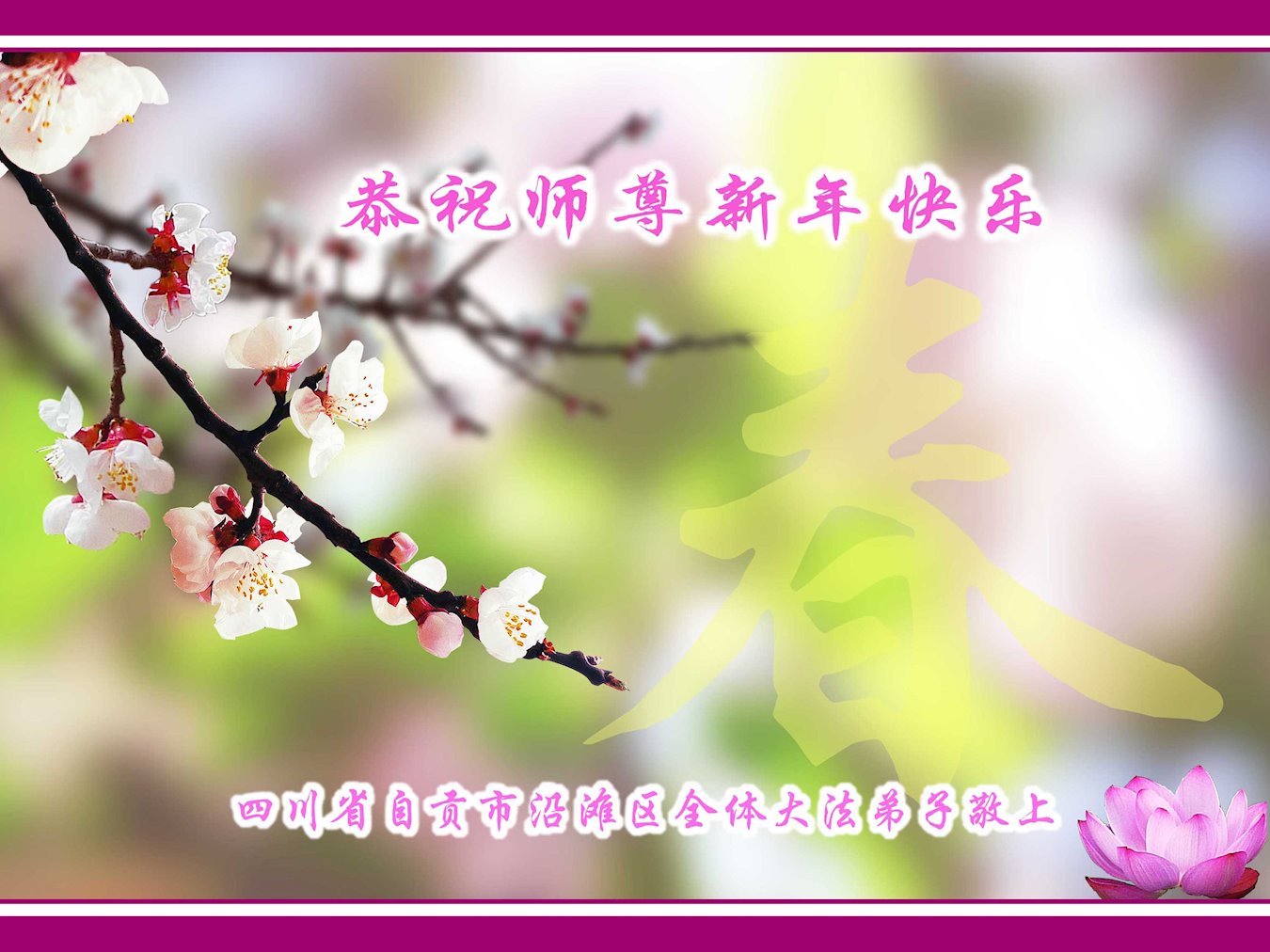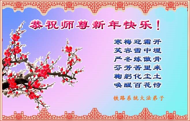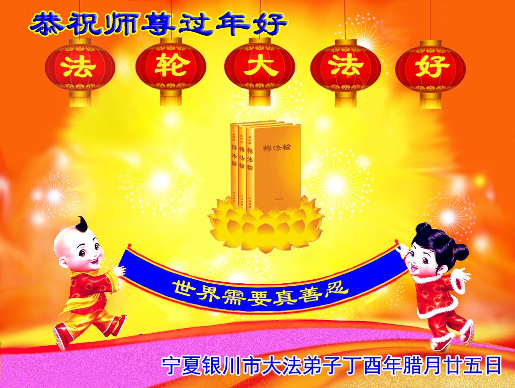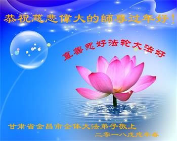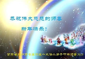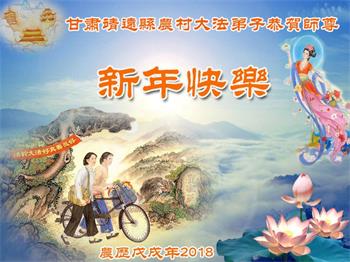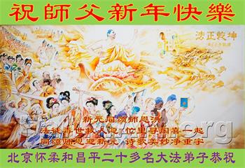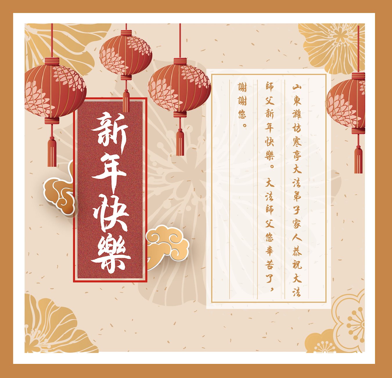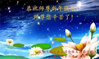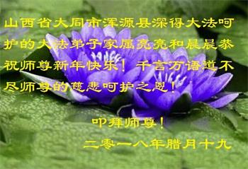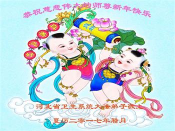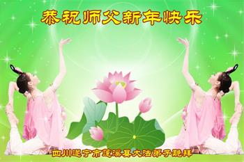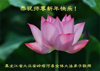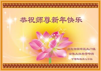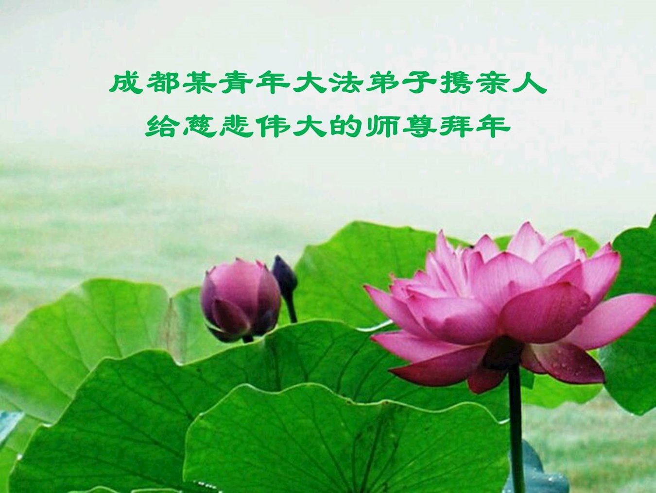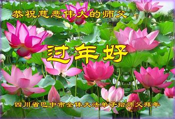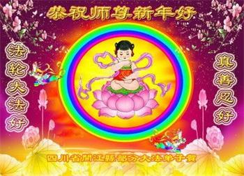 慈悲伟大的师父好!在这天地更新、万物复苏的时候,我们青岛东部的一资料点的全体老少大法弟子及家人给您拜年!恭祝师父新年快乐!借此,我们把满怀对慈悲伟大的师父的思念和感恩之心凝成一句话:学好法,修好心,不懈怠,多救人,路走正,报师恩,证实法!