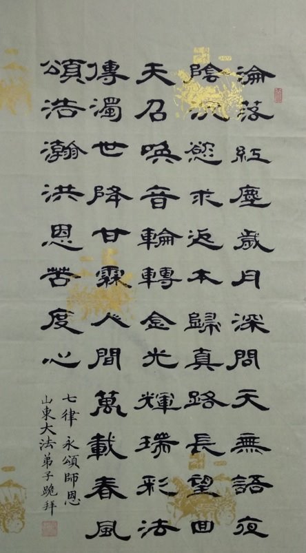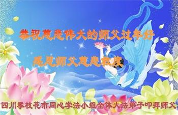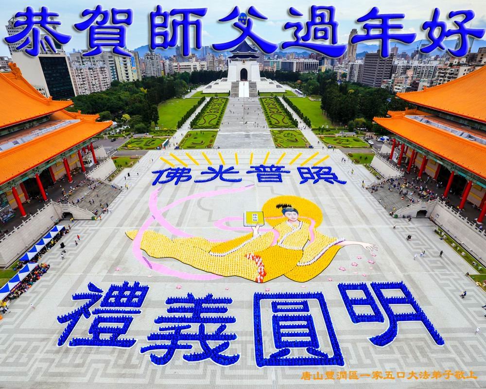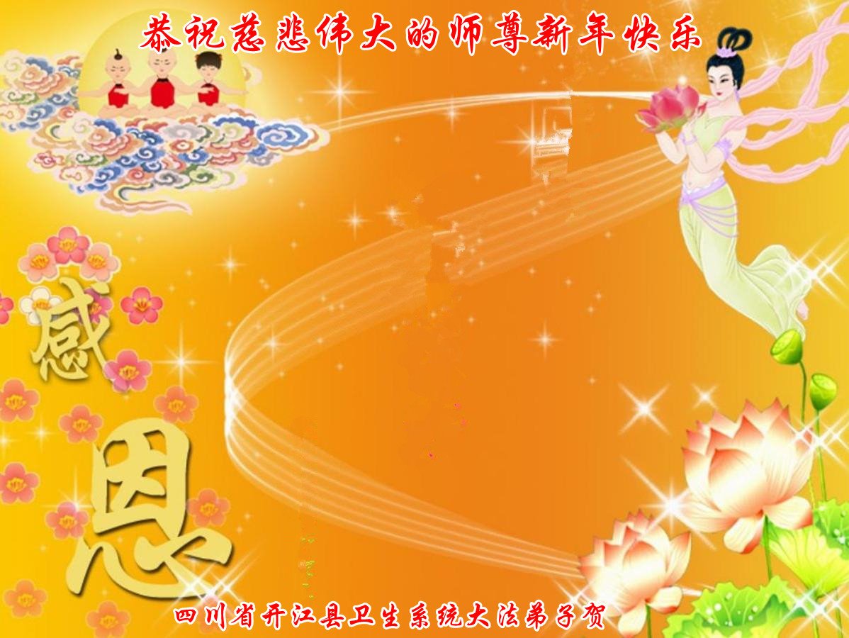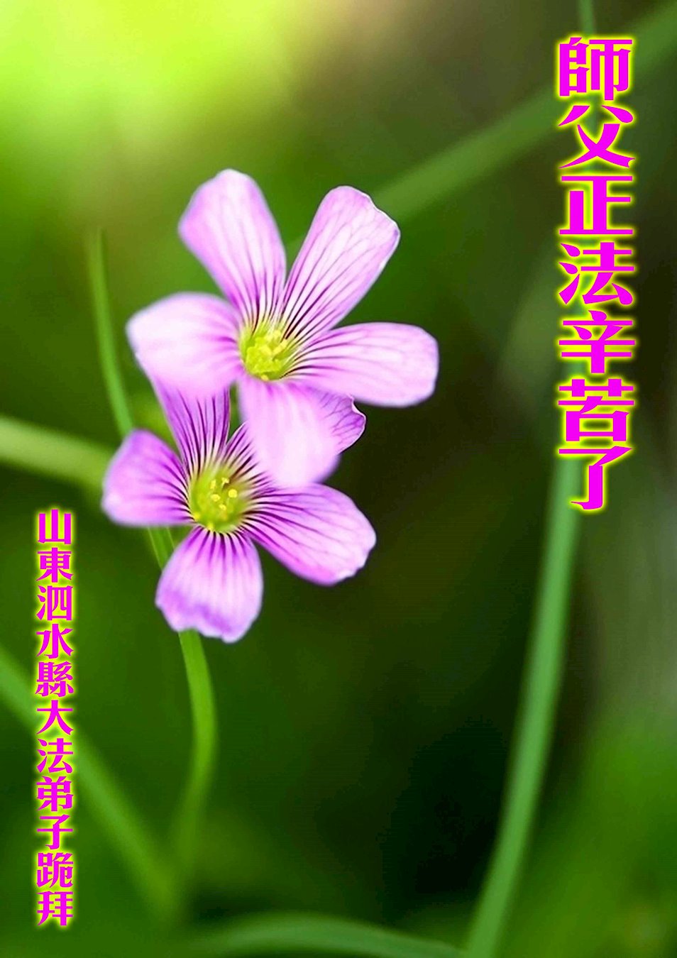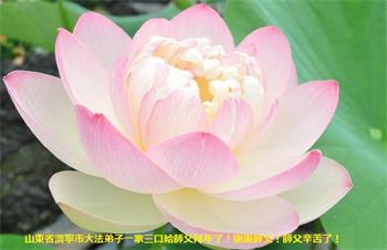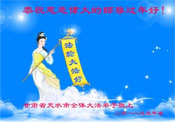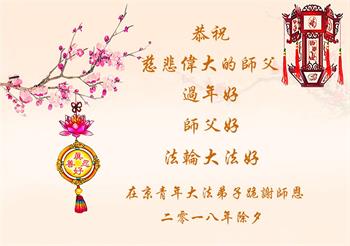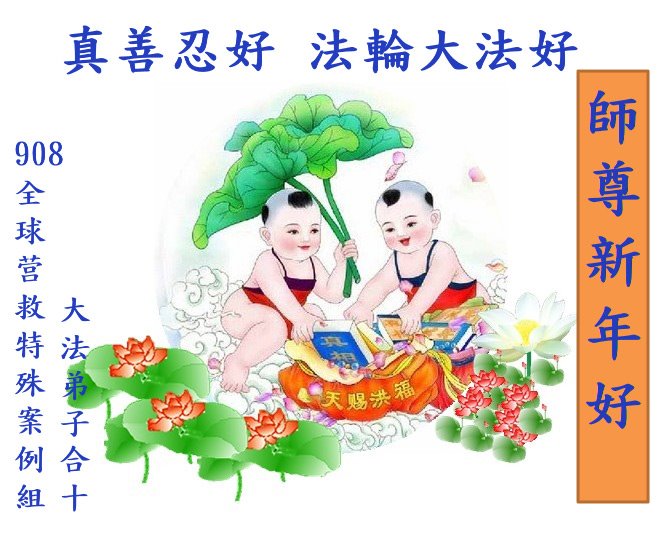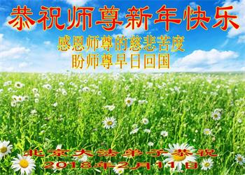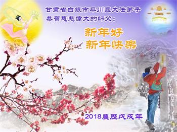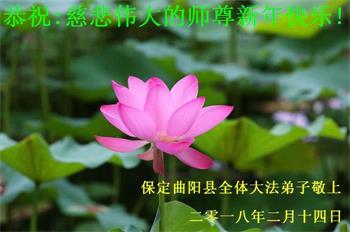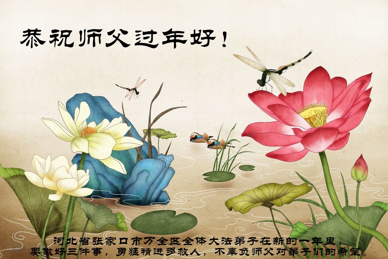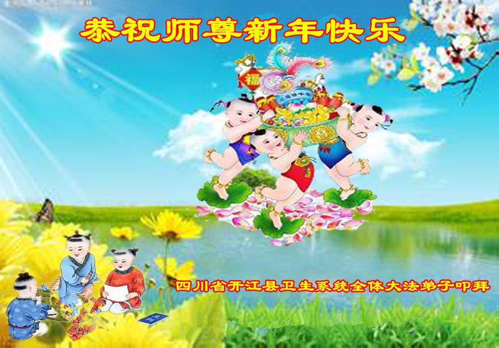 慈悲伟大的师父好!在这天地更新、万物复苏的时候,我们青岛东部的一资料点的全体老少大法弟子及家人给您拜年!恭祝师父新年快乐!借此,我们把满怀对慈悲伟大的师父的思念和感恩之心凝成一句话:学好法,修好心,不懈怠,多救人,路走正,报师恩,证实法!