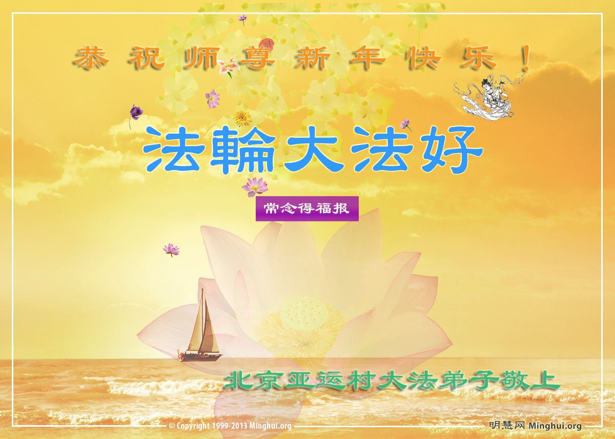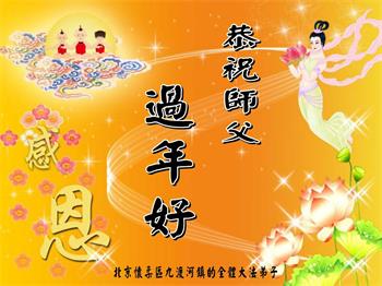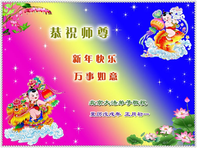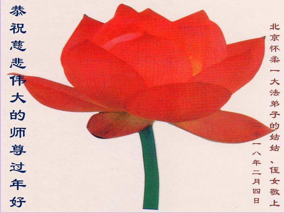 师父好!师父您辛苦了!北京大法弟子想念师父!我没有漂亮的,也没有华丽的语言,我只有一颗真诚的心,我把这颗真诚、善良的心献给伟大的师父:恭祝慈悲伟大的师父新春快乐!