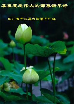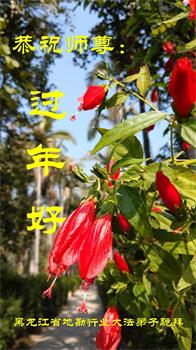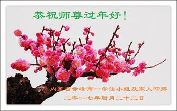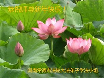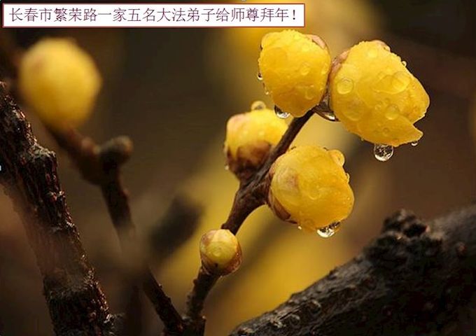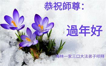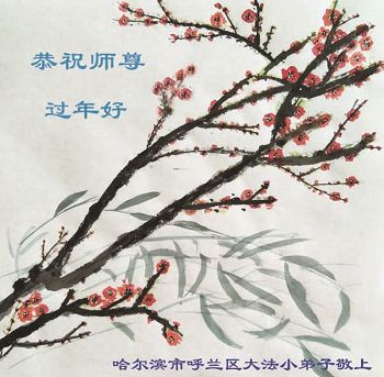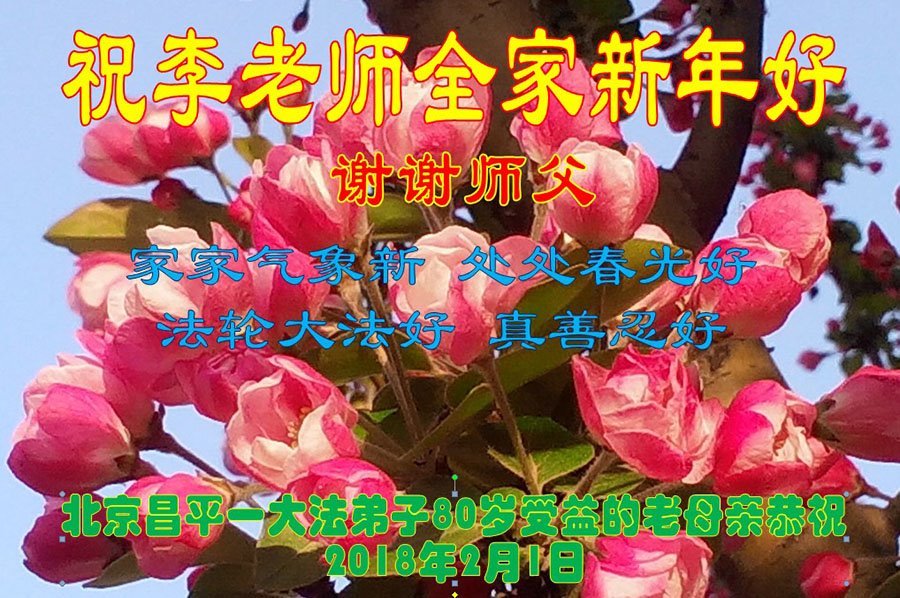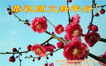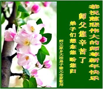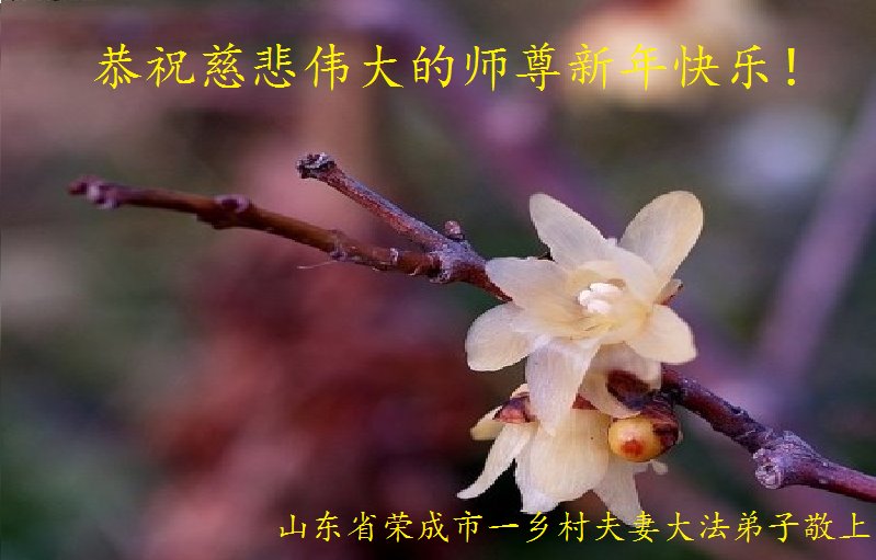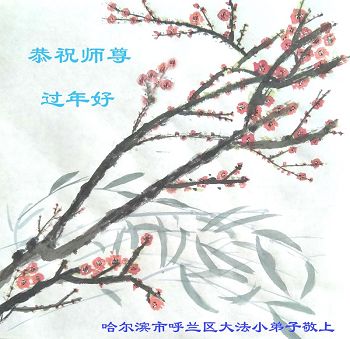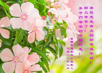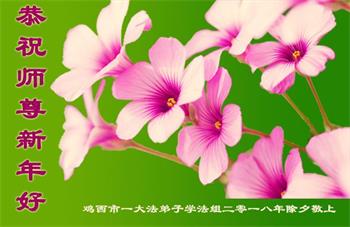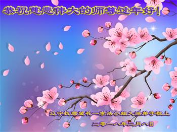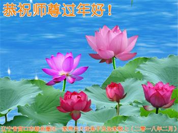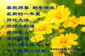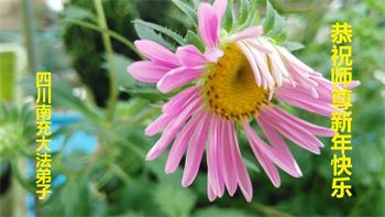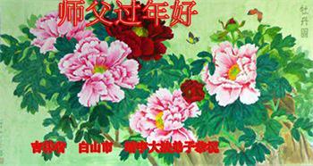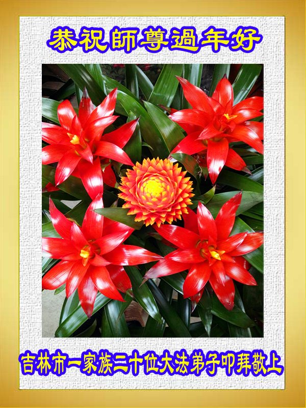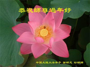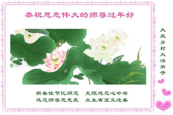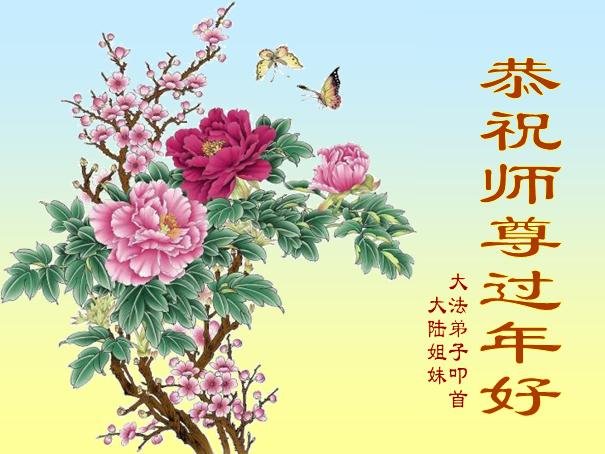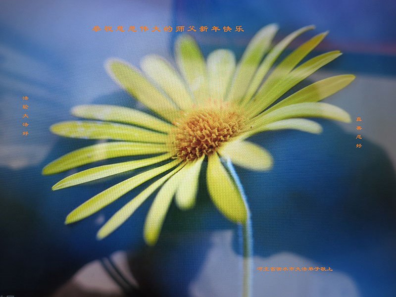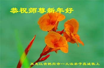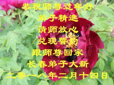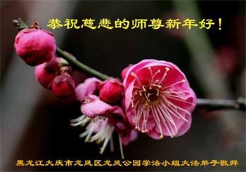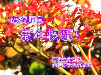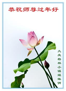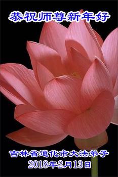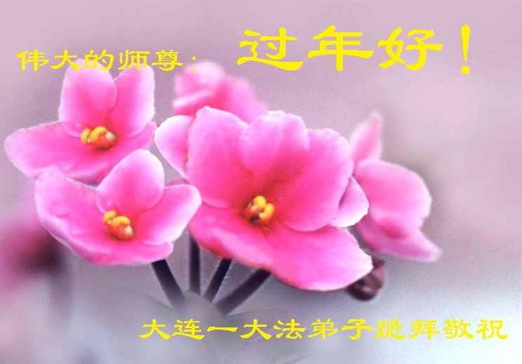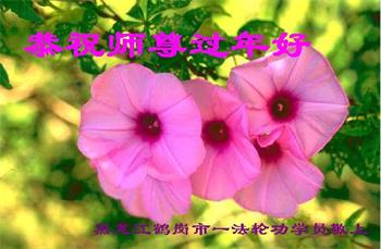 辽宁省抚顺市大法弟子说:“我们是老年大法弟子,我们在家里开了一朵小花,在师父慈悲的呵护,一路走过十多年了,这朵小花在风雨中茁壮成长着,在这严寒即将过去,春天即将来临之际,我们给师父拜年了!师父过年好!师父您辛苦了!”