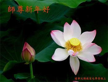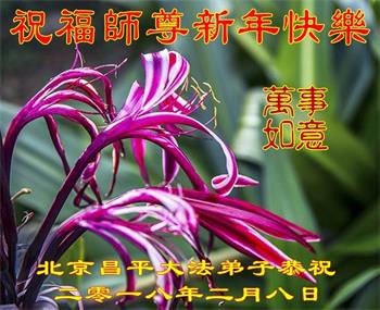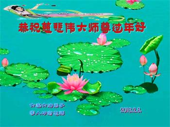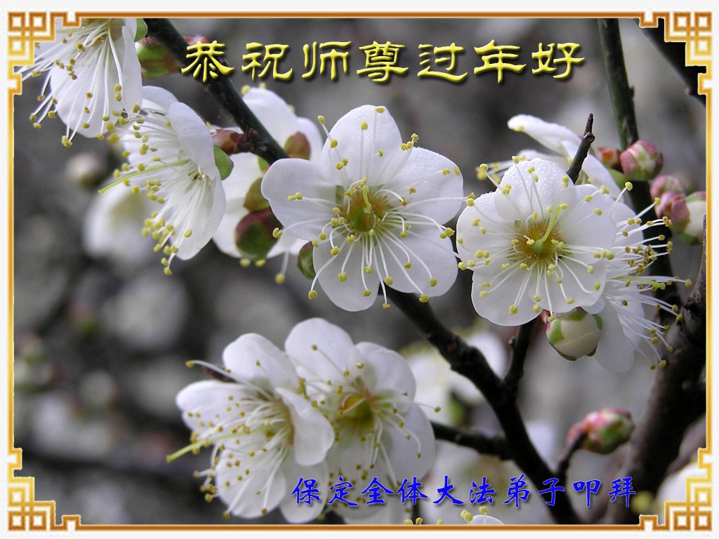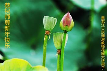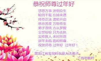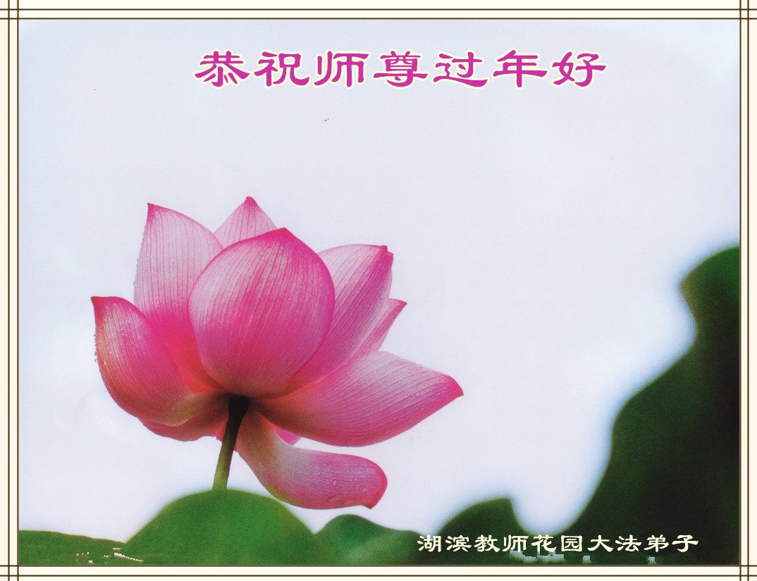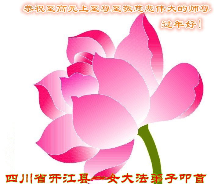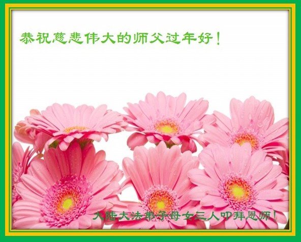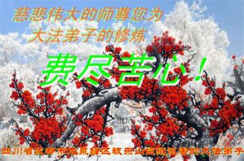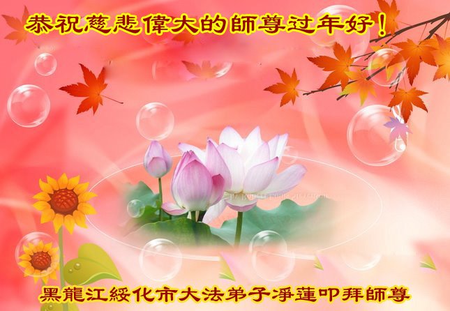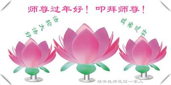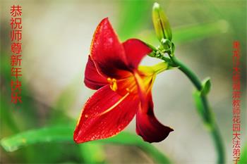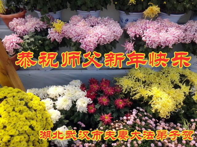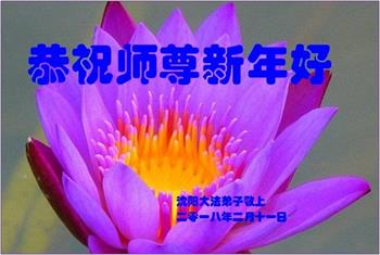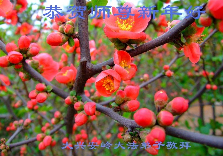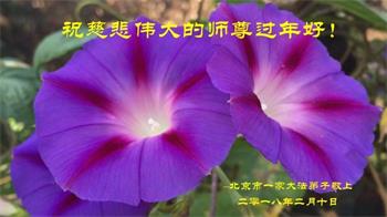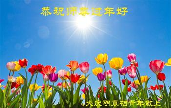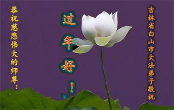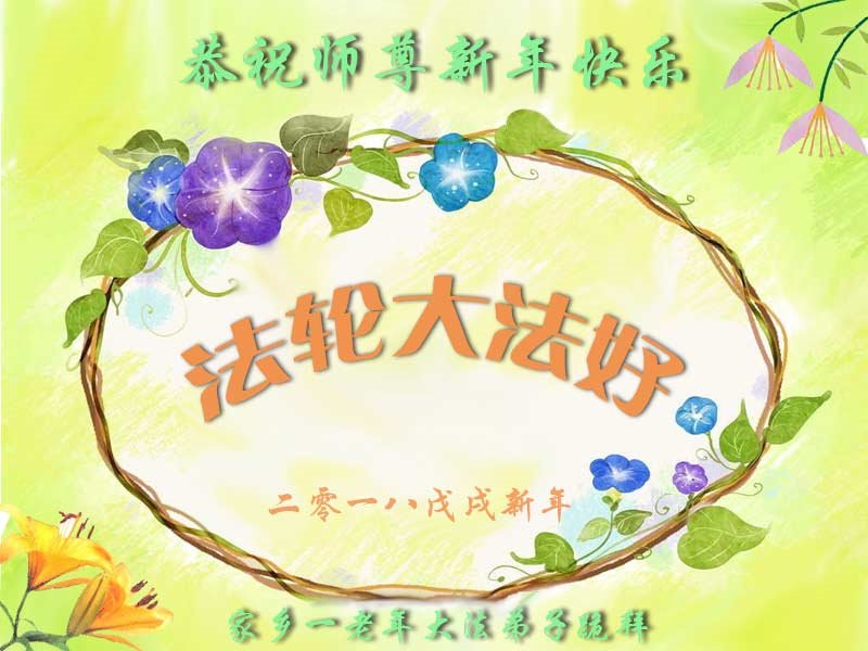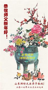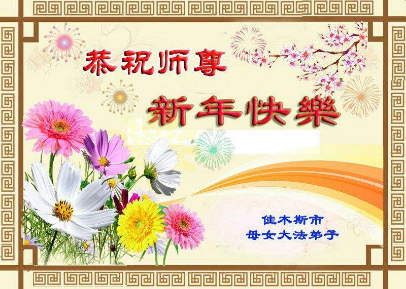 辽宁省抚顺市大法弟子说:“我们是老年大法弟子,我们在家里开了一朵小花,在师父慈悲的呵护,一路走过十多年了,这朵小花在风雨中茁壮成长着,在这严寒即将过去,春天即将来临之际,我们给师父拜年了!师父过年好!师父您辛苦了!”
