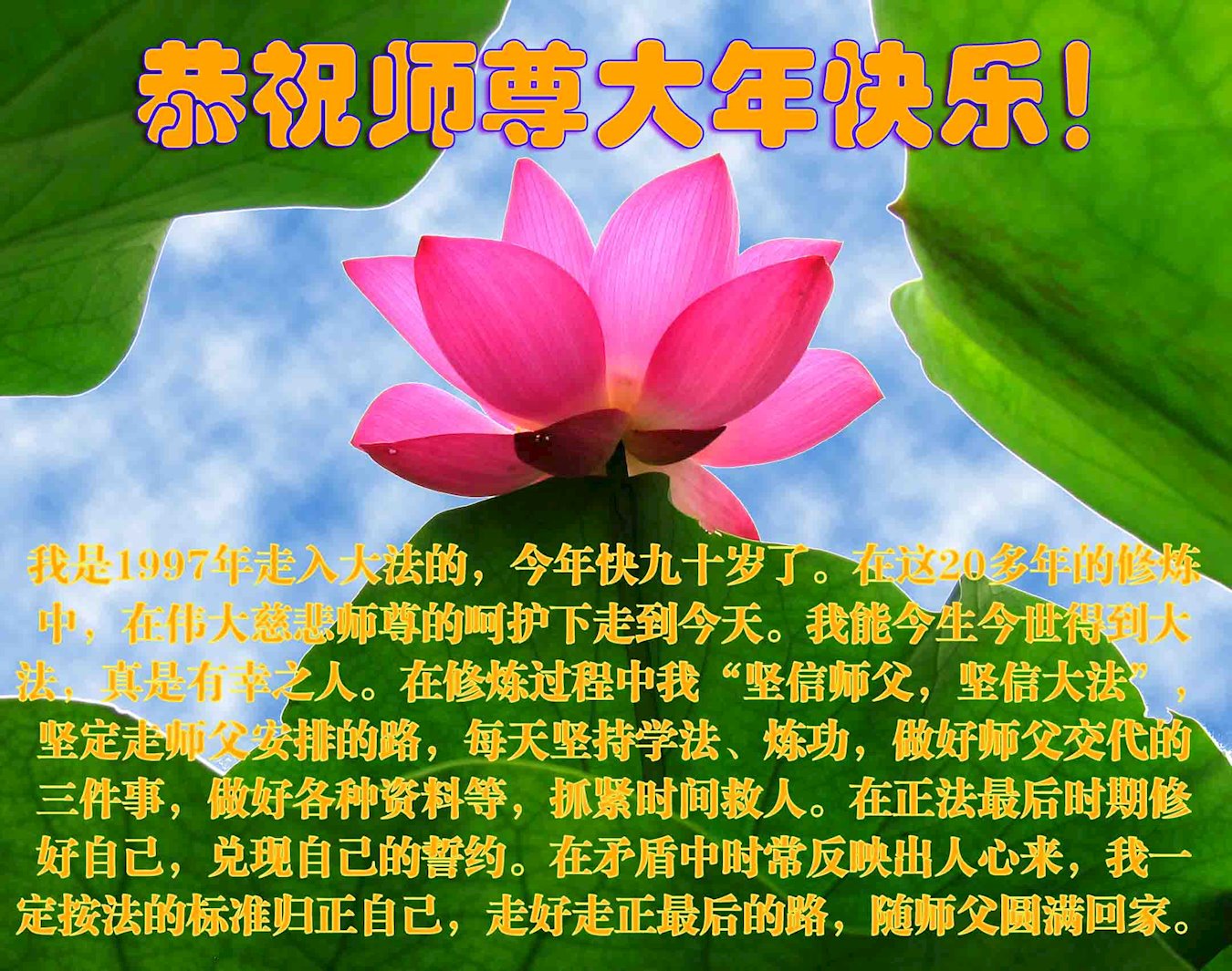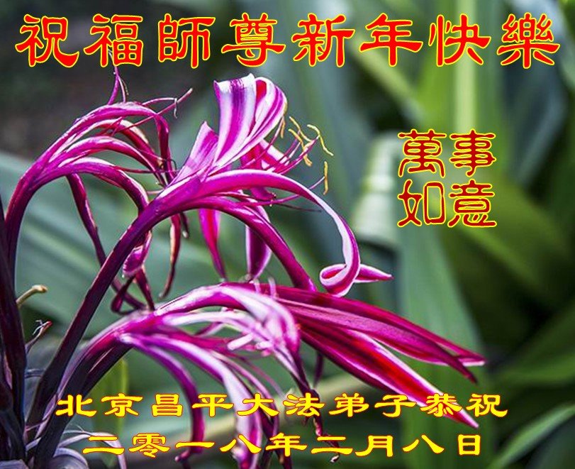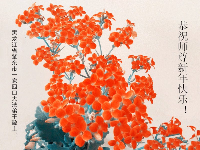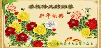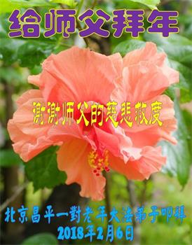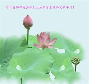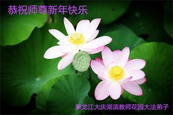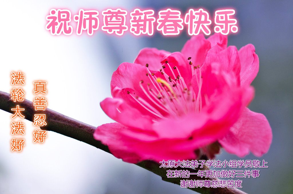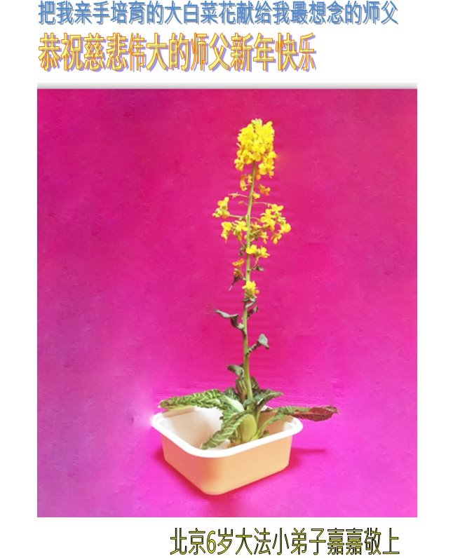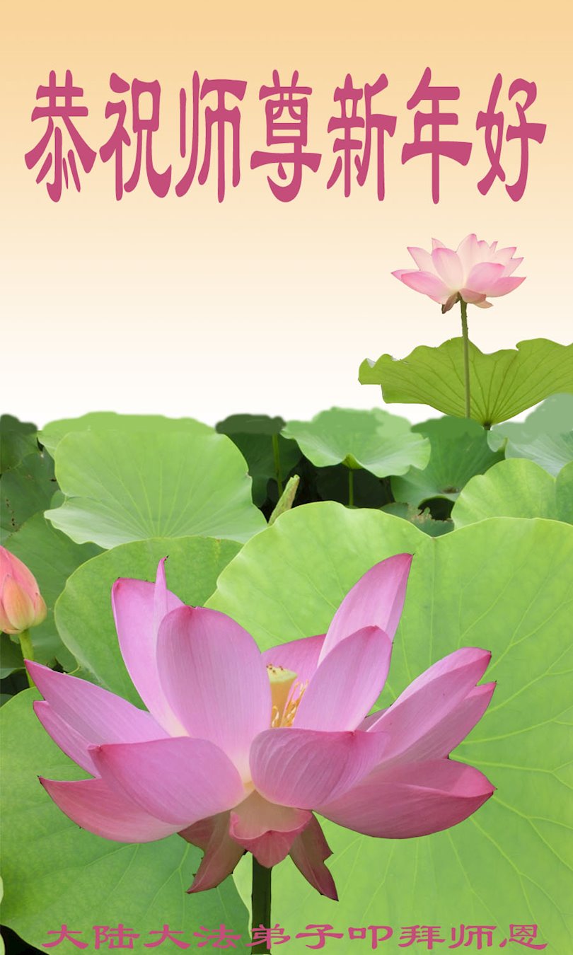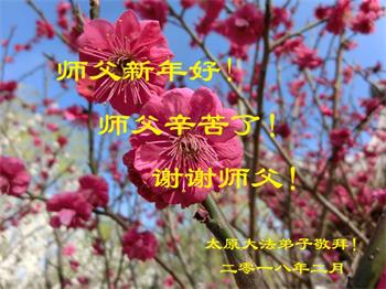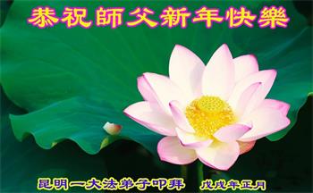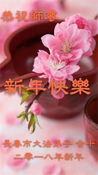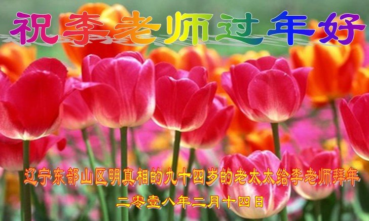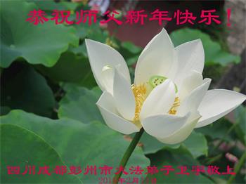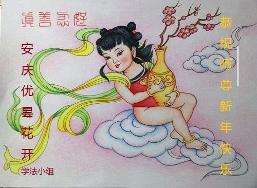 辽宁省抚顺市大法弟子说:“我们是老年大法弟子,我们在家里开了一朵小花,在师父慈悲的呵护,一路走过十多年了,这朵小花在风雨中茁壮成长着,在这严寒即将过去,春天即将来临之际,我们给师父拜年了!师父过年好!师父您辛苦了!”