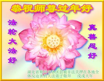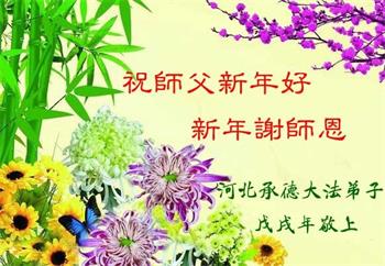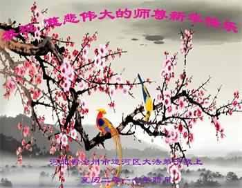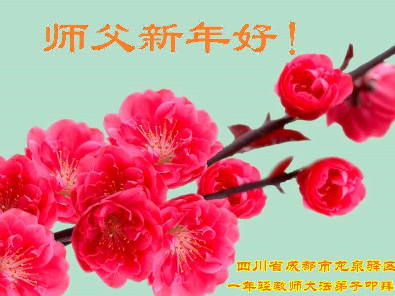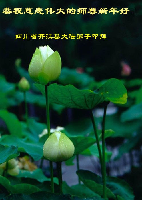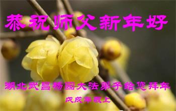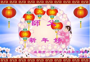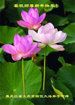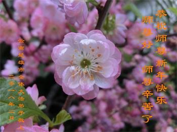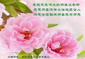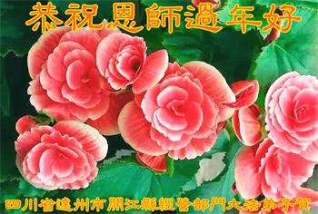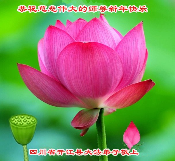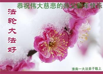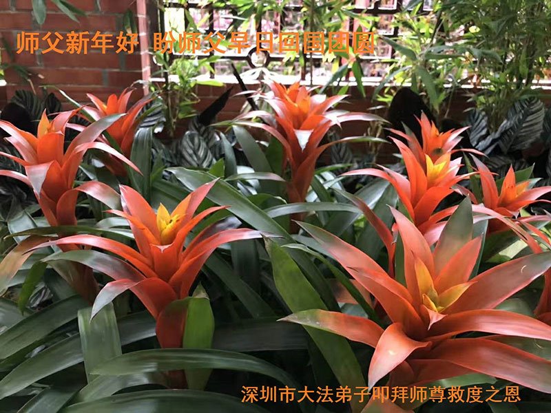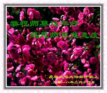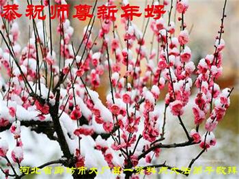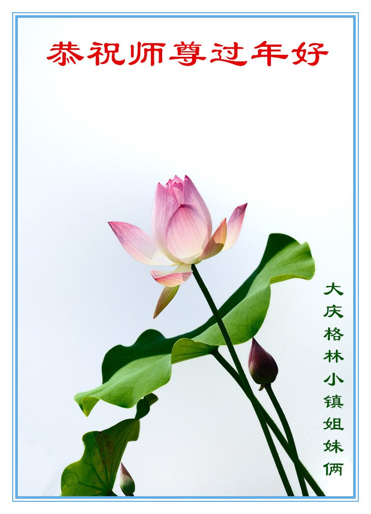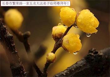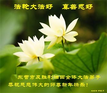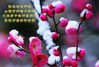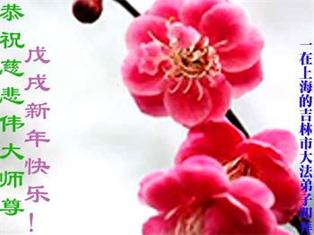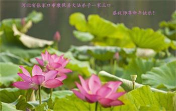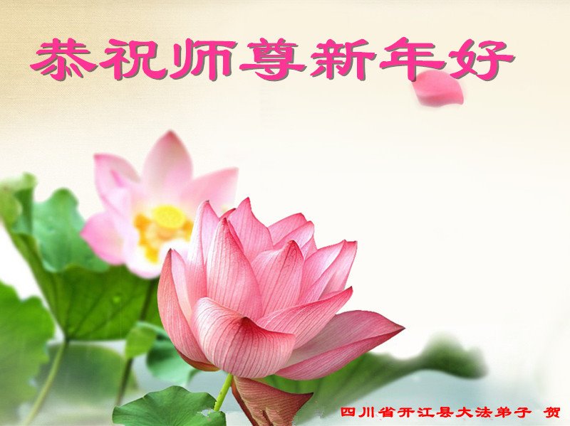 辽宁省抚顺市大法弟子说:“我们是老年大法弟子,我们在家里开了一朵小花,在师父慈悲的呵护,一路走过十多年了,这朵小花在风雨中茁壮成长着,在这严寒即将过去,春天即将来临之际,我们给师父拜年了!师父过年好!师父您辛苦了!”