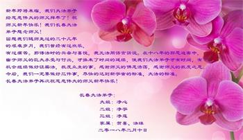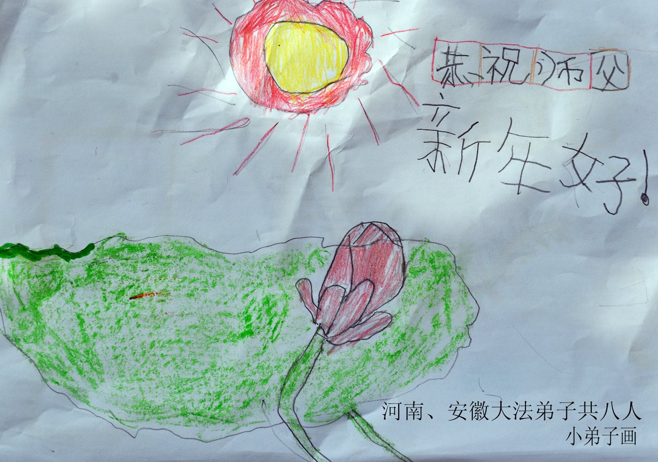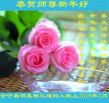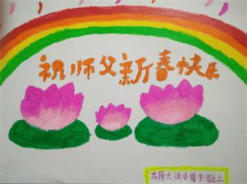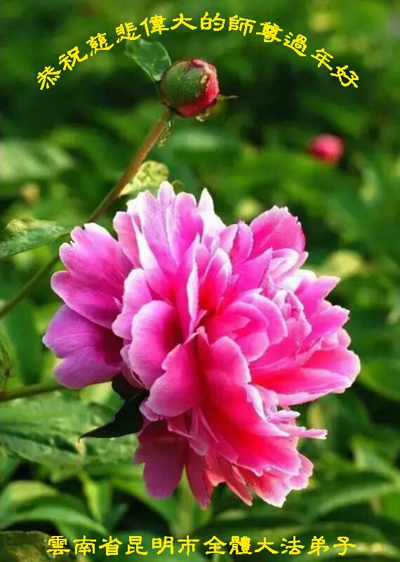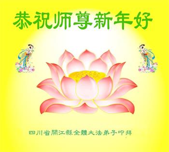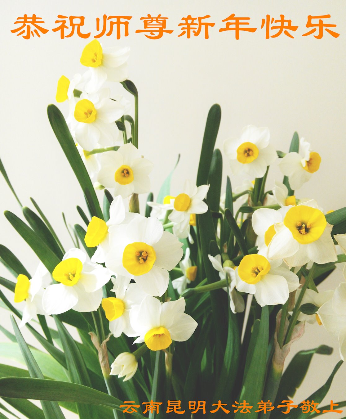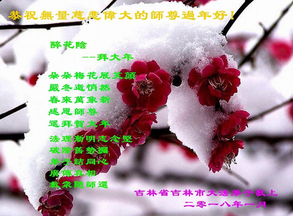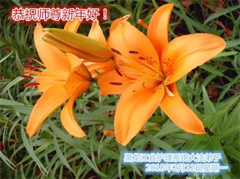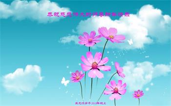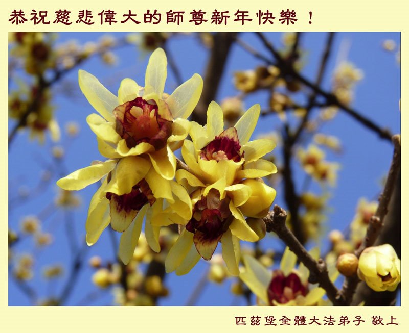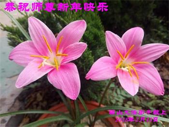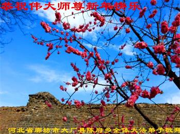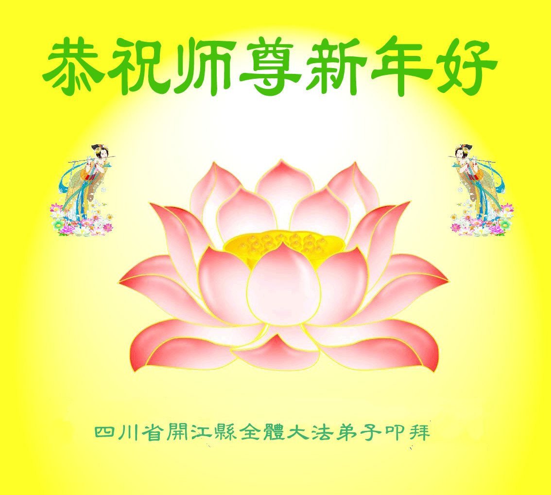 辽宁省抚顺市大法弟子说:“我们是老年大法弟子,我们在家里开了一朵小花,在师父慈悲的呵护,一路走过十多年了,这朵小花在风雨中茁壮成长着,在这严寒即将过去,春天即将来临之际,我们给师父拜年了!师父过年好!师父您辛苦了!”