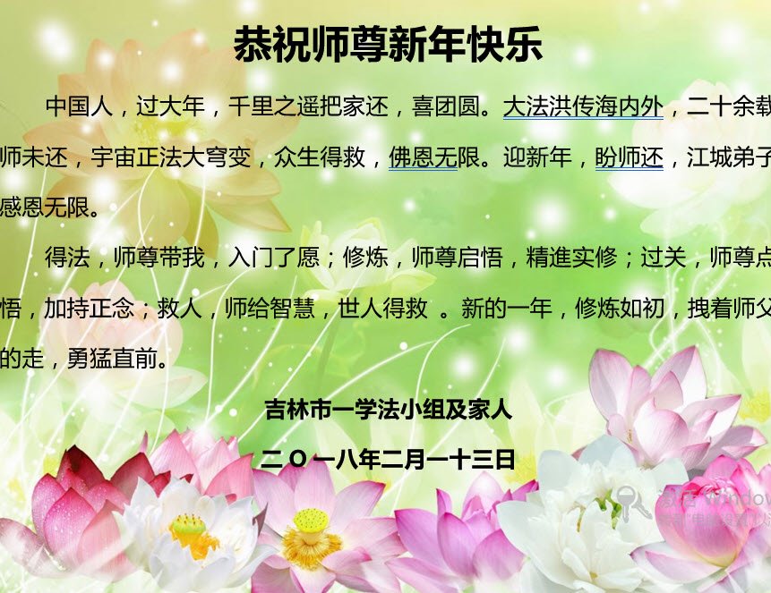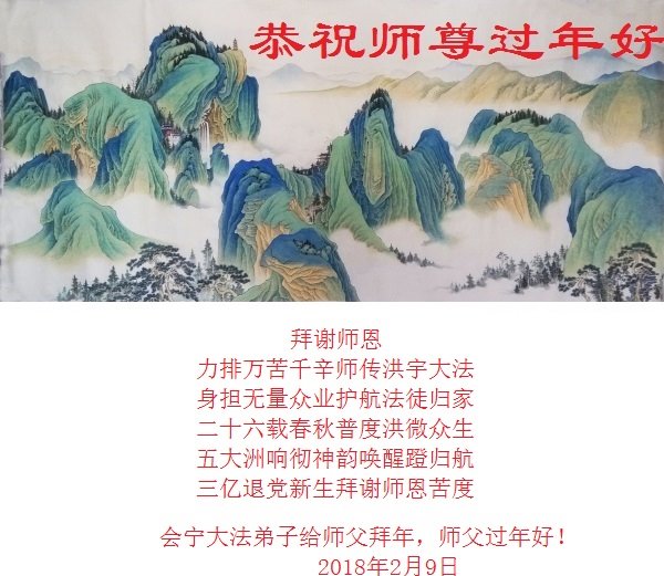 <英文版: http://en.minghui.org/html/articles/2018/2/17/168600.html>新年钟声敲响 大陆资料点大法弟子恭祝师尊新年好