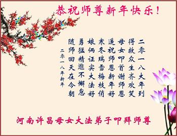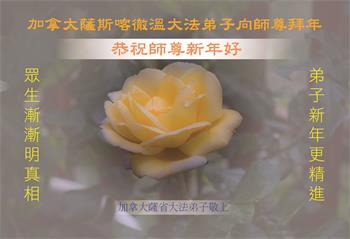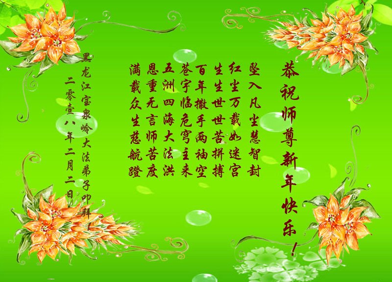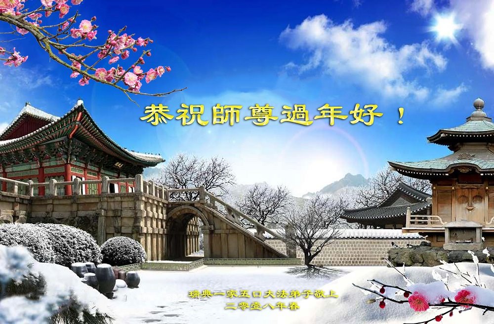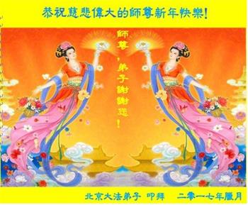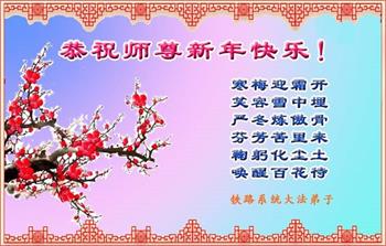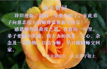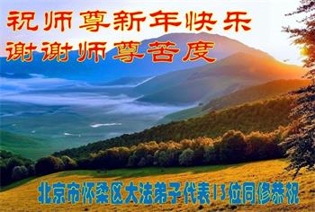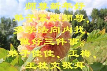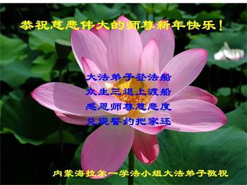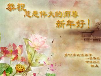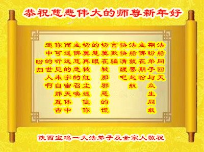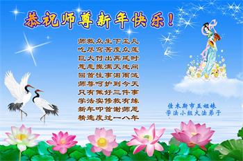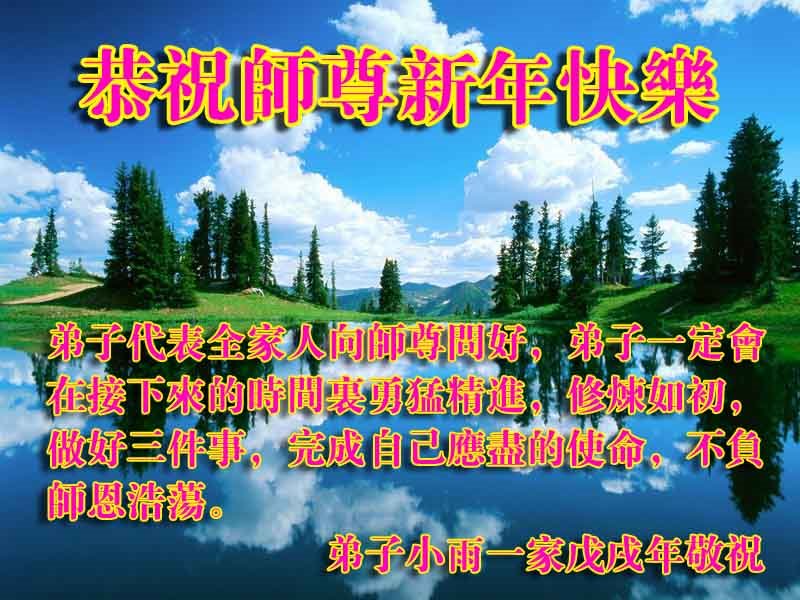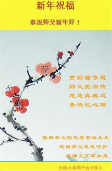 在新的一年里,弟子一定在法中归正自己,修好自己,同时救人和洪法,完成弟子助师正法的使命。同时,弟子也受一位来自中国大陆的新学员的委托,向师父恭贺新年快乐!