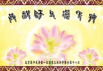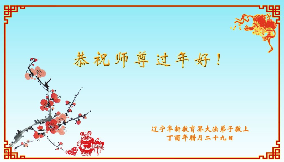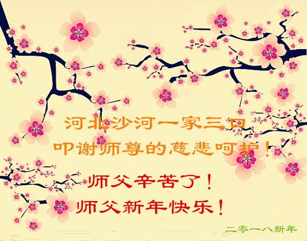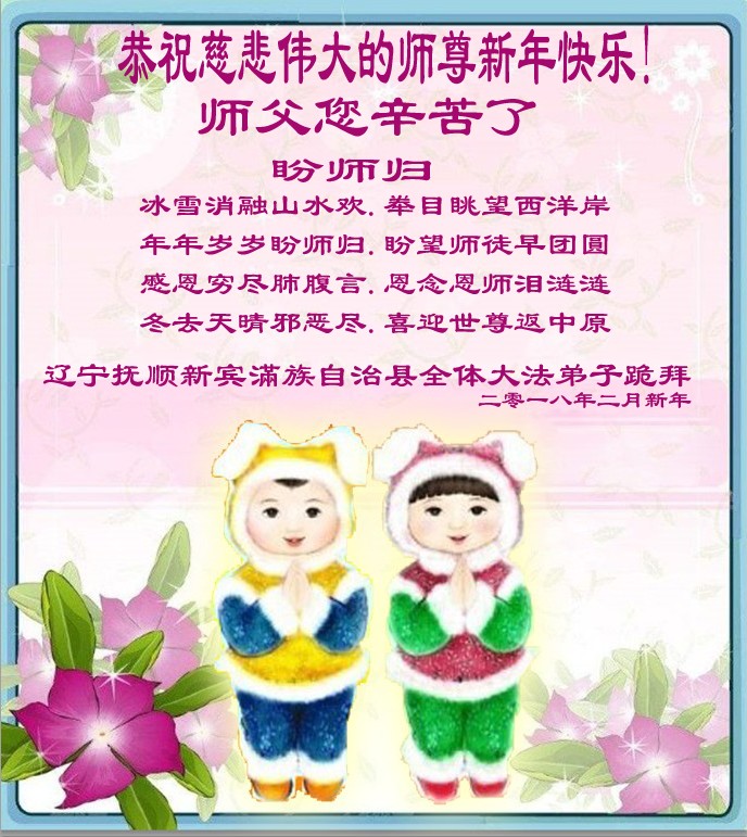 我是抚顺市某区资料点的大法弟子。我及我的家人在此恭祝师父过年好!