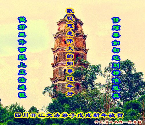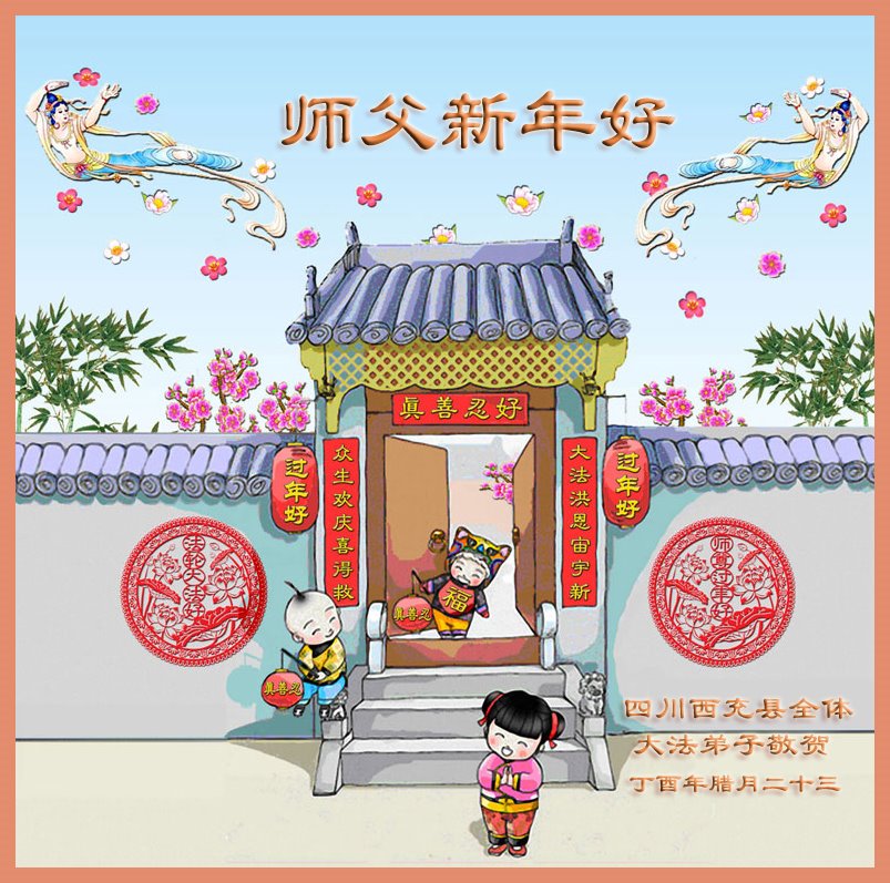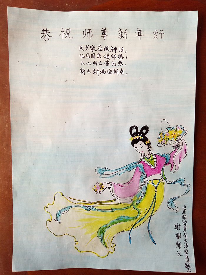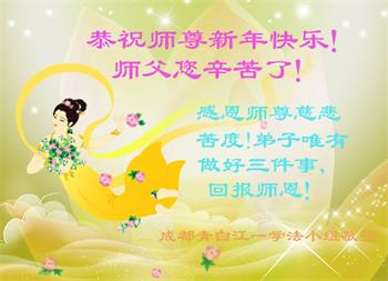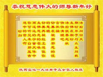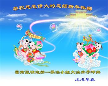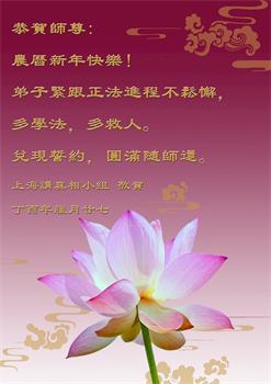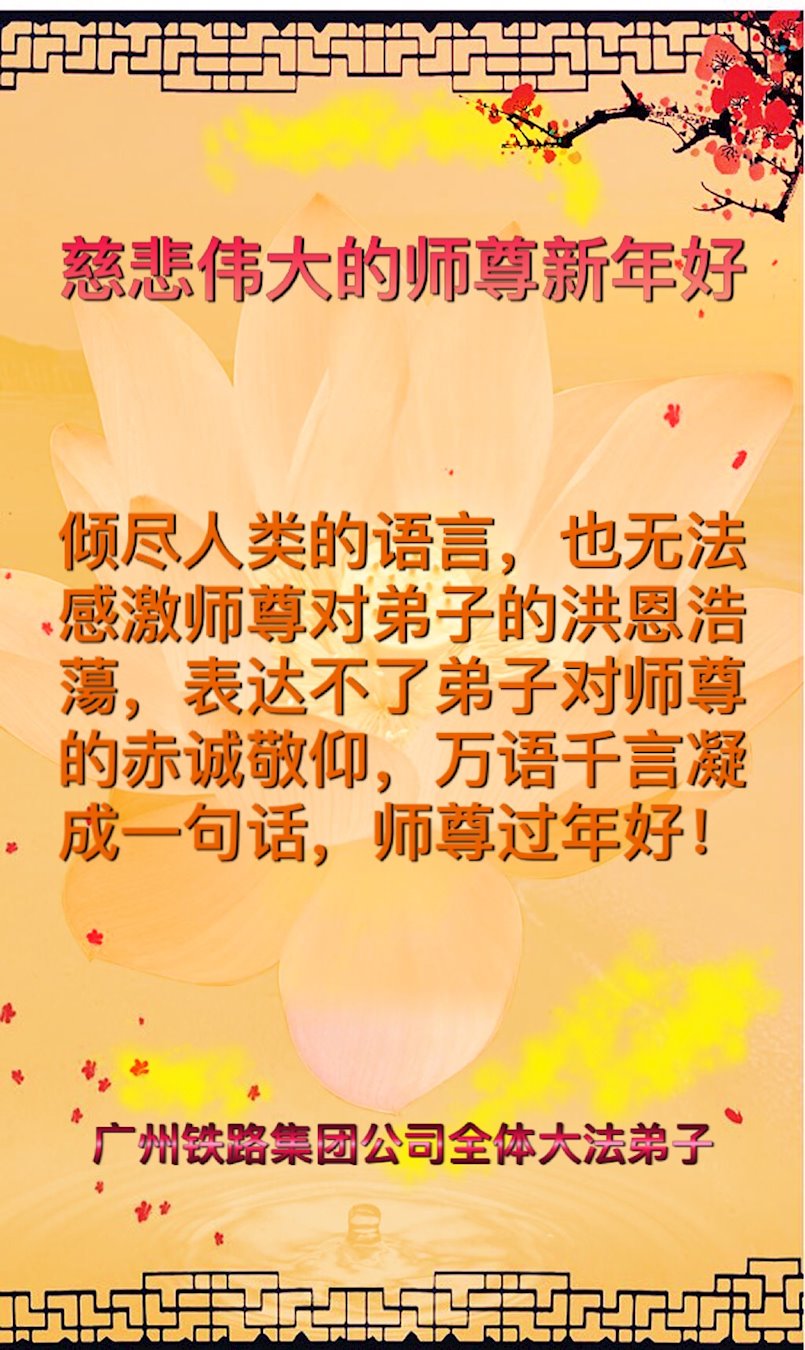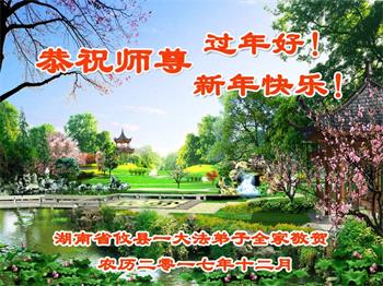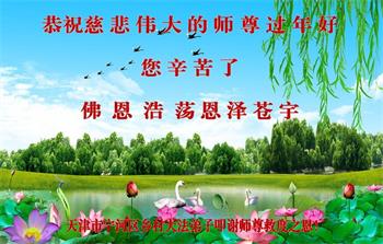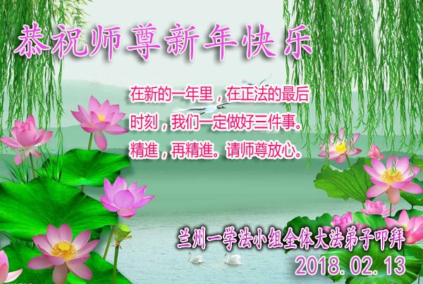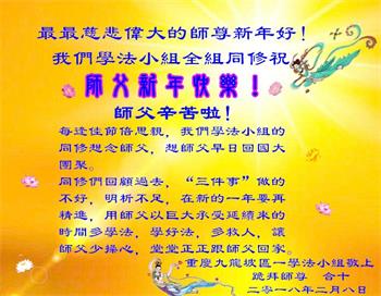 敬爱的师尊您好!我们资料点及学法小组全体弟子敬祝师尊过年好!请师尊放心,弟子们谨遵师尊教诲做好三件事,圆满随师还。