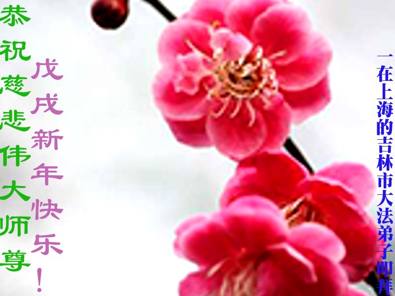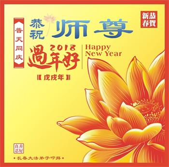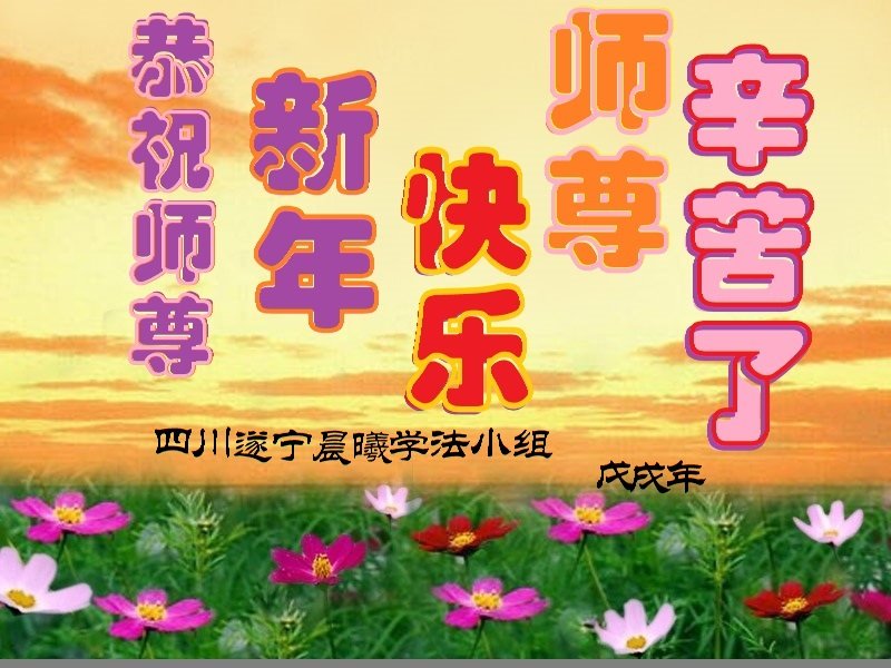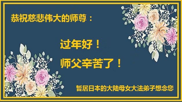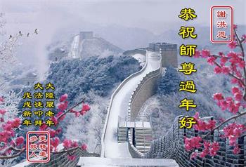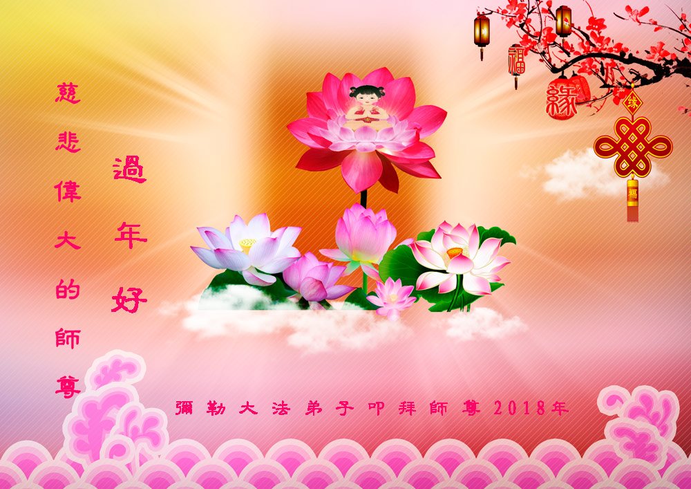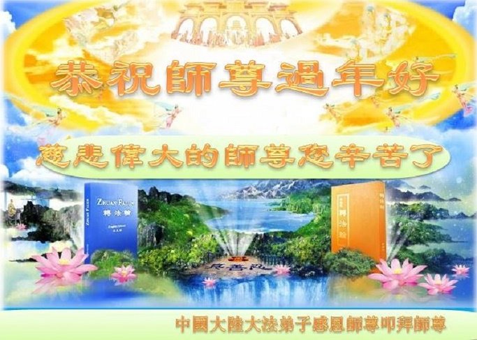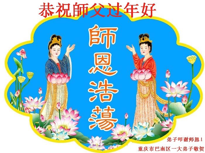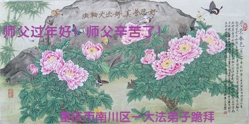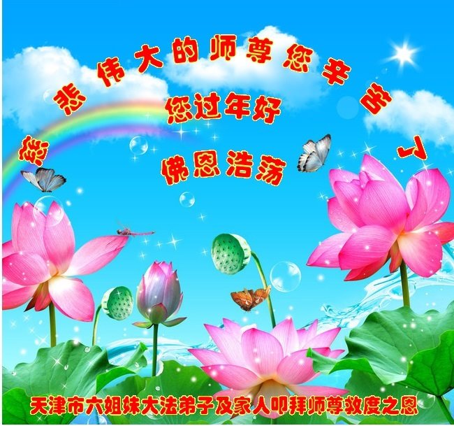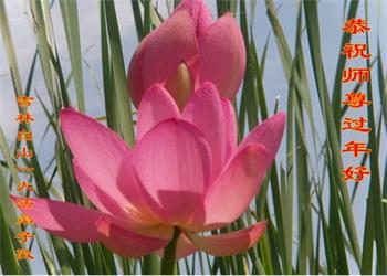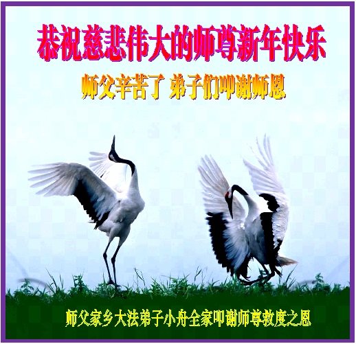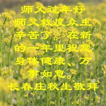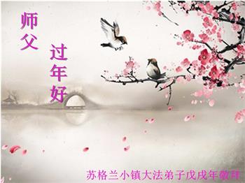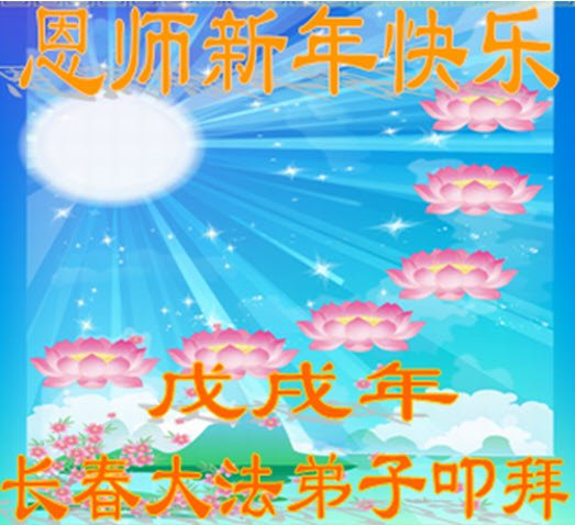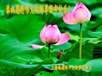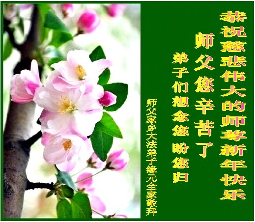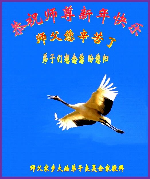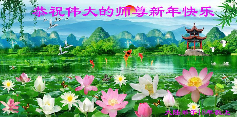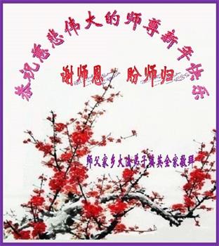 中国的大年即将来临,弟子多么渴望师父能回大陆和您的弟子、得救的众生一起共度佳节!我觉的普天同庆的日子不远了!师父您二十几年来的心血灌注着每一位弟子的心田,弟子明白了人生的意义,身、心得到净化,同时知道救度众生是我们的使命,弟子不会让您失望,弟子会在做好三件事的同时修好自己,不辜负师父的慈悲苦度。祝愿师父戊戌年快乐!