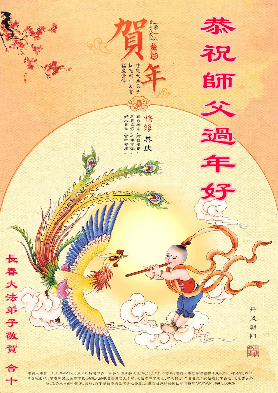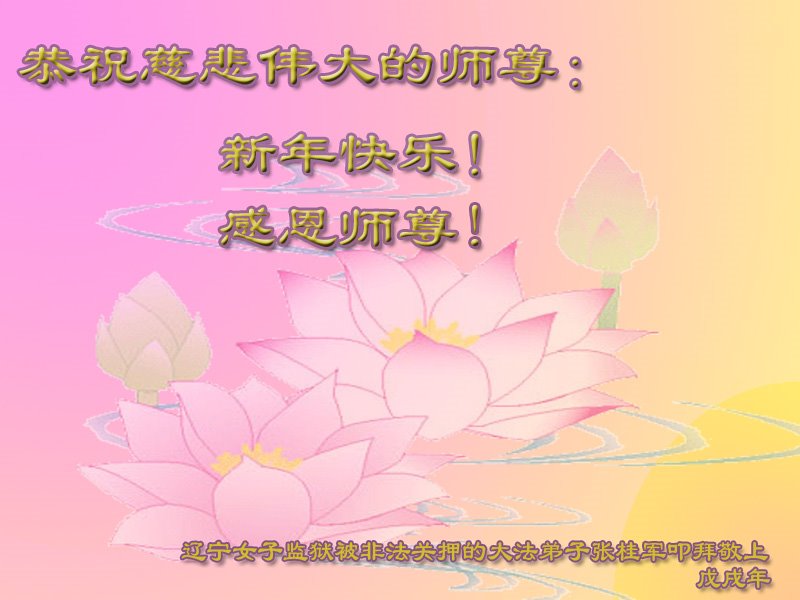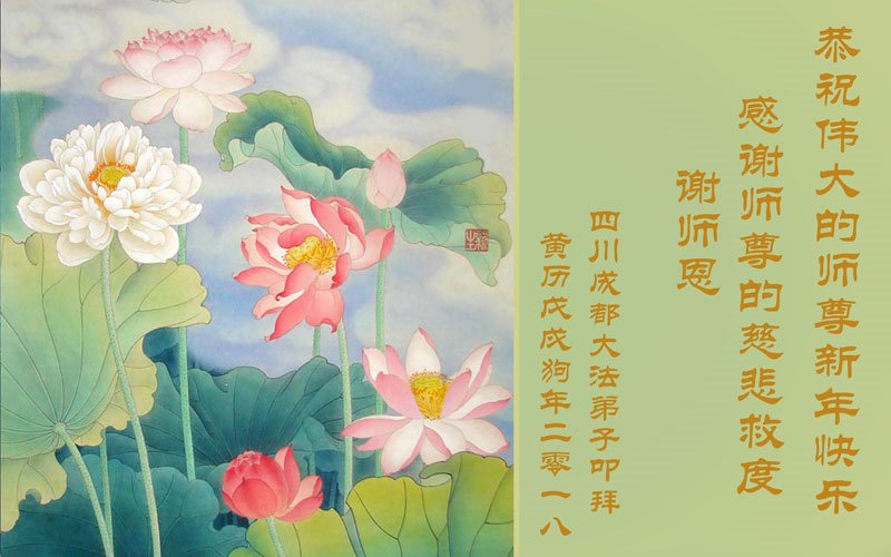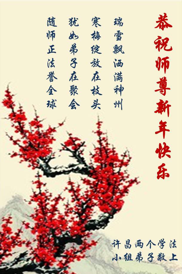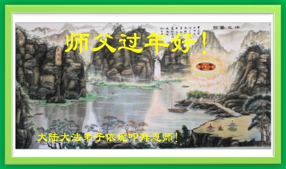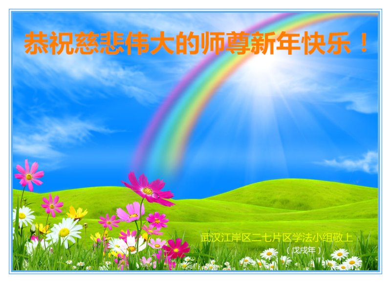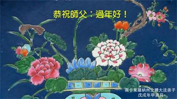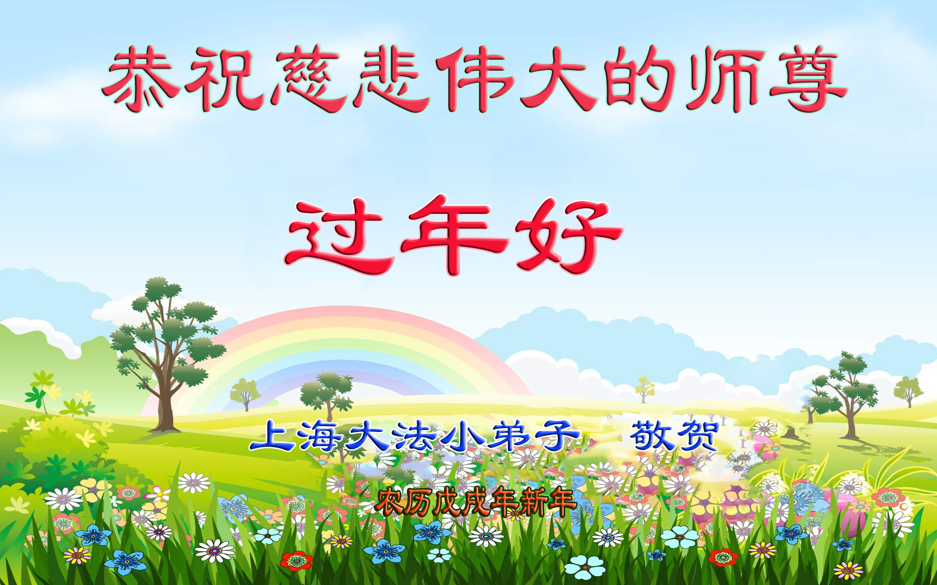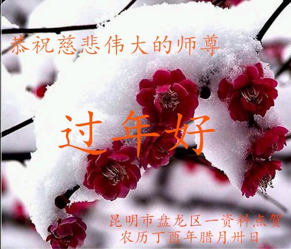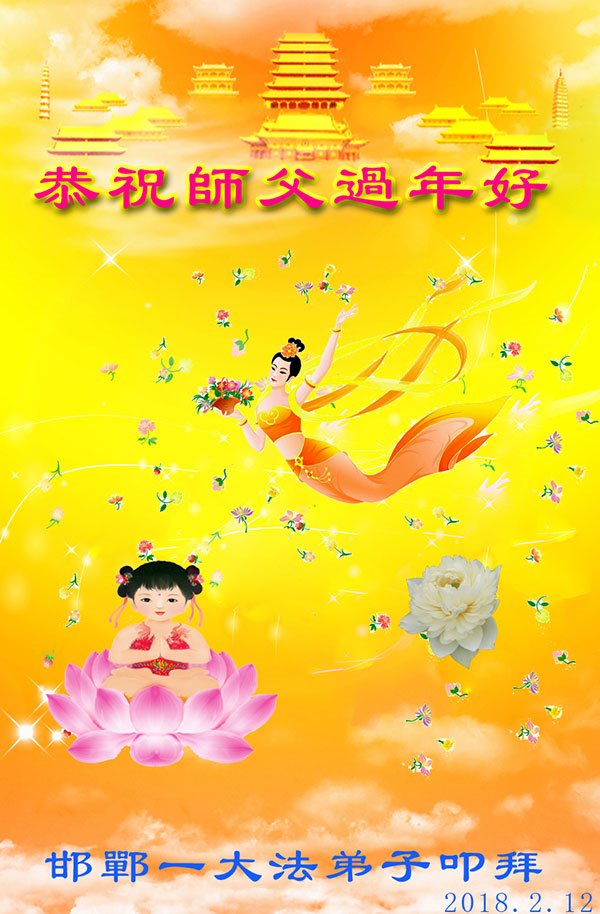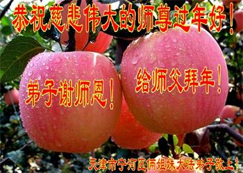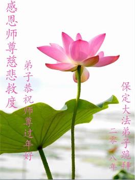中国的大年即将来临,弟子多么渴望师父能回大陆和您的弟子、得救的众生一起共度佳节!我觉的普天同庆的日子不远了!师父您二十几年来的心血灌注着每一位弟子的心田,弟子明白了人生的意义,身、心得到净化,同时知道救度众生是我们的使命,弟子不会让您失望,弟子会在做好三件事的同时修好自己,不辜负师父的慈悲苦度。祝愿师父戊戌年快乐!