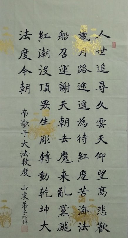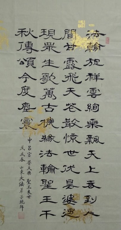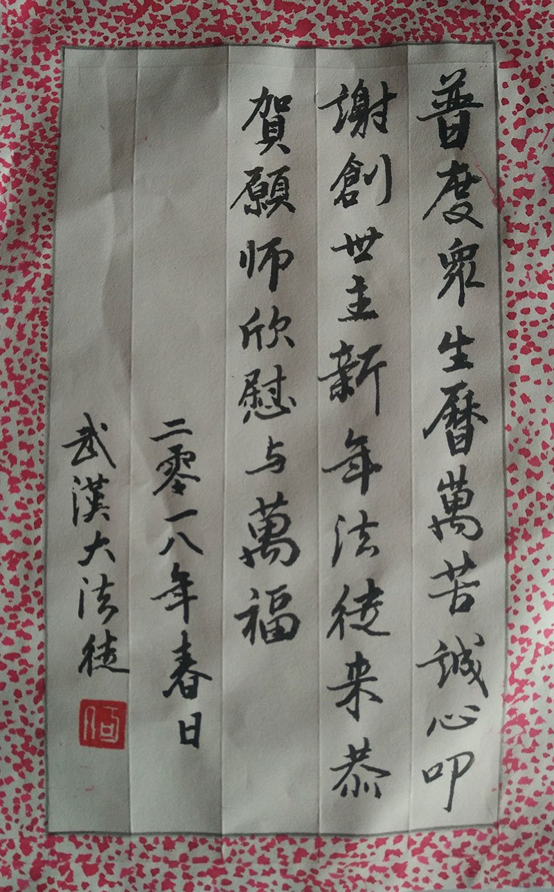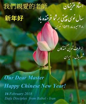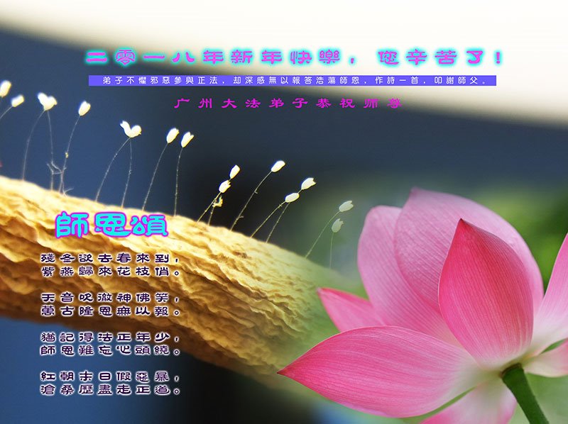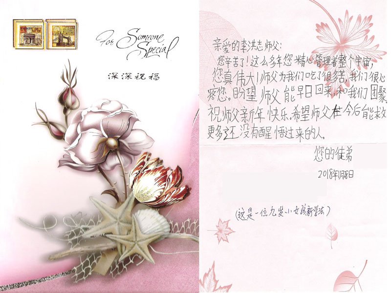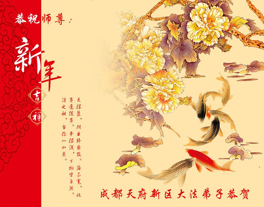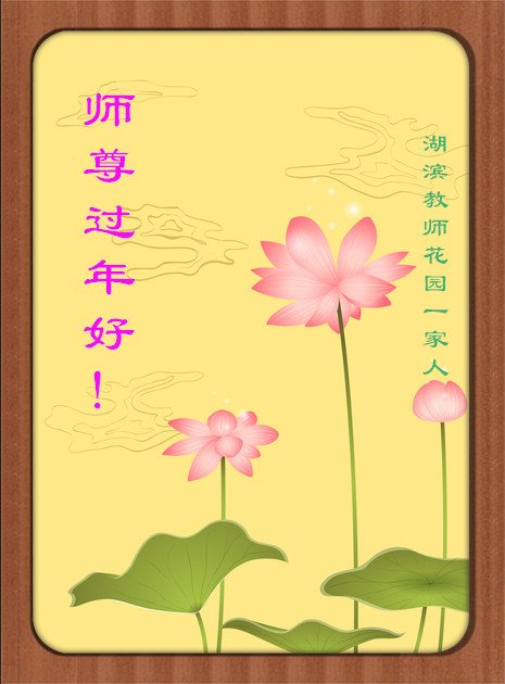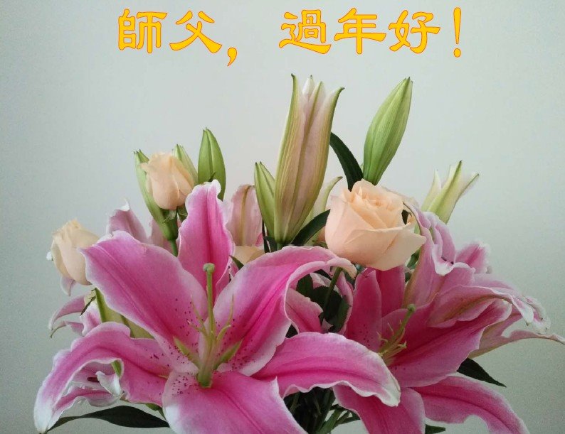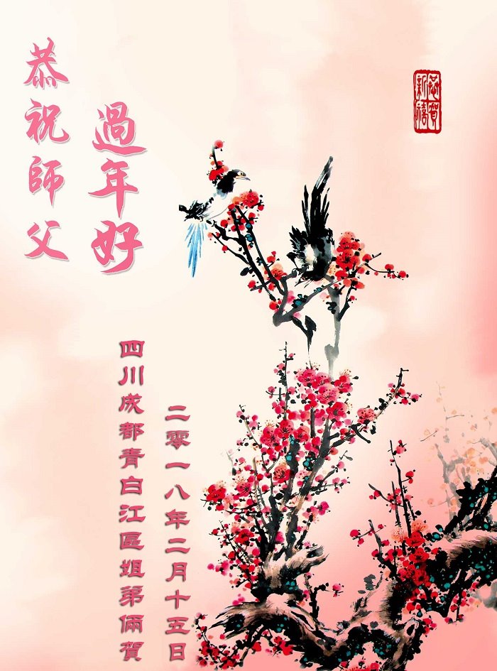 中国的大年即将来临,弟子多么渴望师父能回大陆和您的弟子、得救的众生一起共度佳节!我觉的普天同庆的日子不远了!师父您二十几年来的心血灌注着每一位弟子的心田,弟子明白了人生的意义,身、心得到净化,同时知道救度众生是我们的使命,弟子不会让您失望,弟子会在做好三件事的同时修好自己,不辜负师父的慈悲苦度。祝愿师父戊戌年快乐!