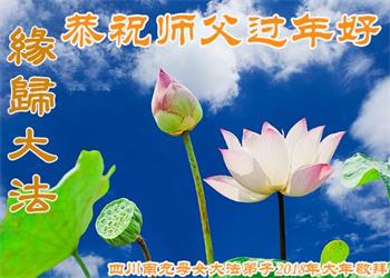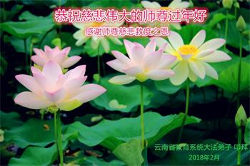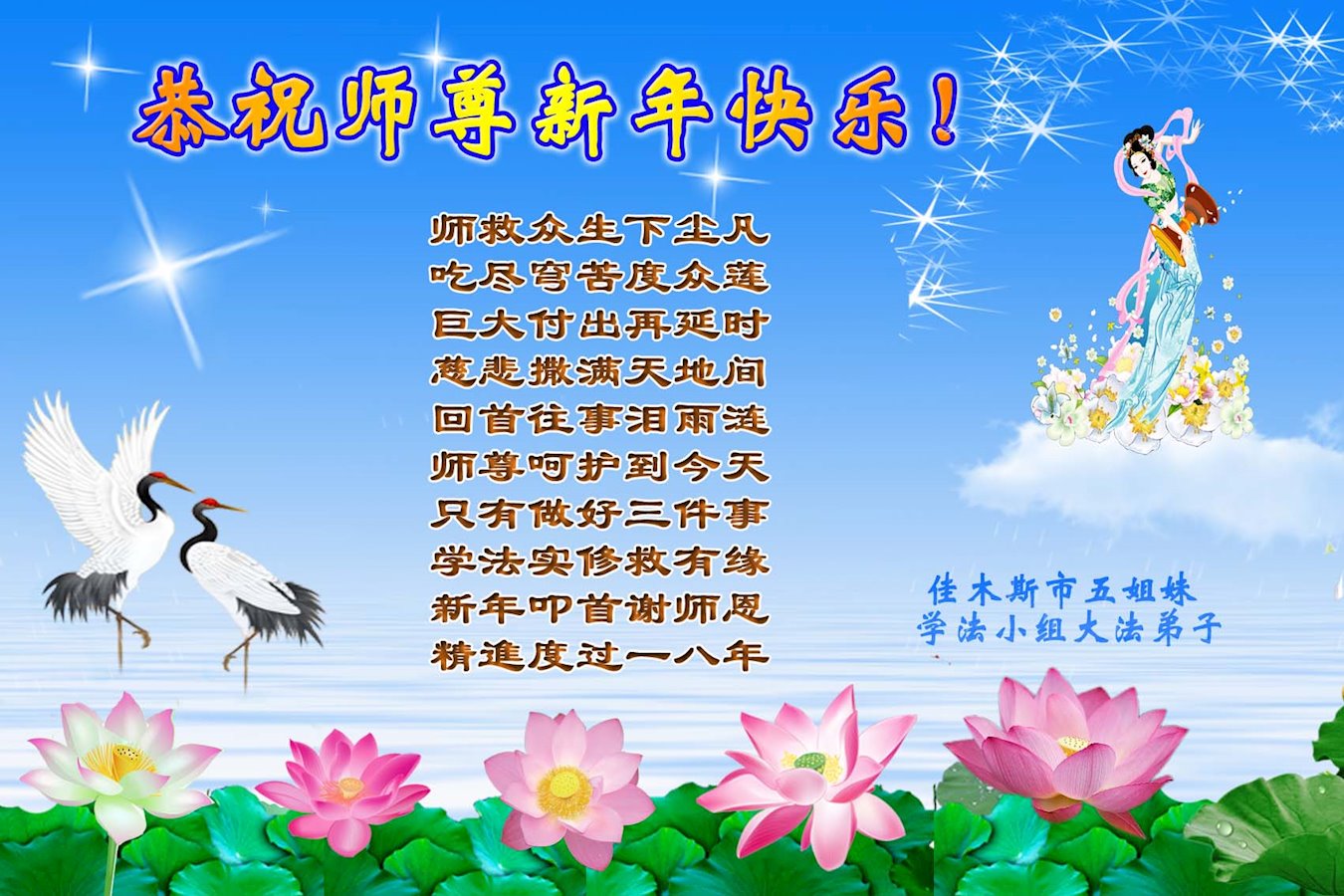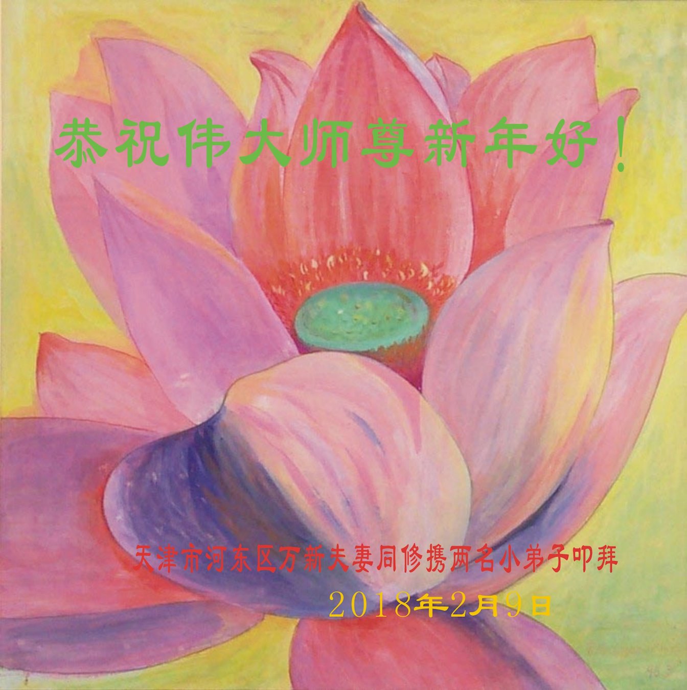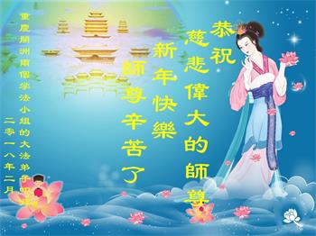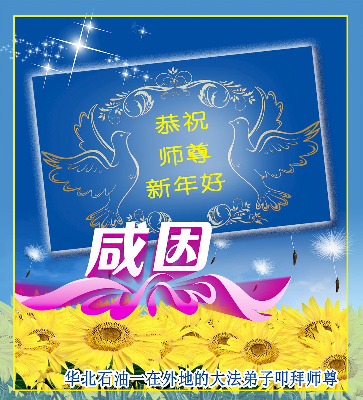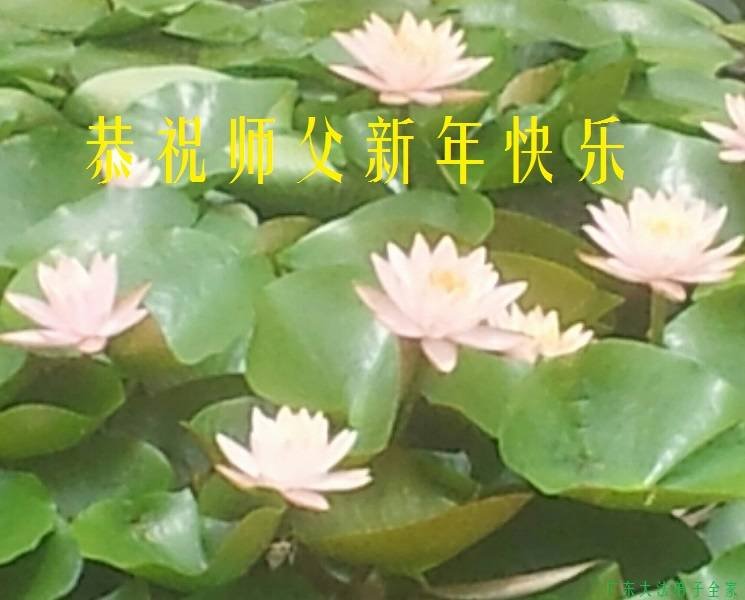 时间过得真快,转眼又到了新年,恭祝慈悲伟大的师尊新年快乐!我们每一步提高,师父都不知操了多少心血。我们地处美国南方,生活太安逸,很容易被社会吸引,在过去的一年里,有好些时候,我们却不珍惜师父的巨大付出给我们赢来的时间,没有做好三件事情,感觉太对不起您了。在新的一年里,我们要更加精進,互相提醒,珍惜这万古机缘,修好自己,做好三件事,助师救度更多众生!再一次,