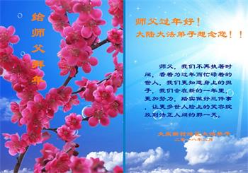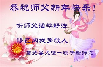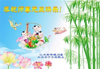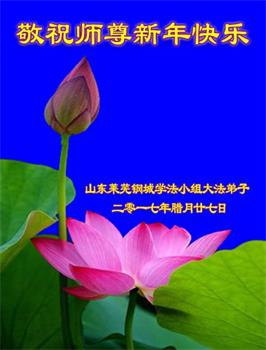 青岛东部的一资料点的大法弟子恭祝师父新年快乐!他们说:“我们把满怀对慈悲伟大的师父的思念和感恩之心凝成一句话:学好法,修好心,不懈怠,多救人,路走正,证实法,报师恩!”