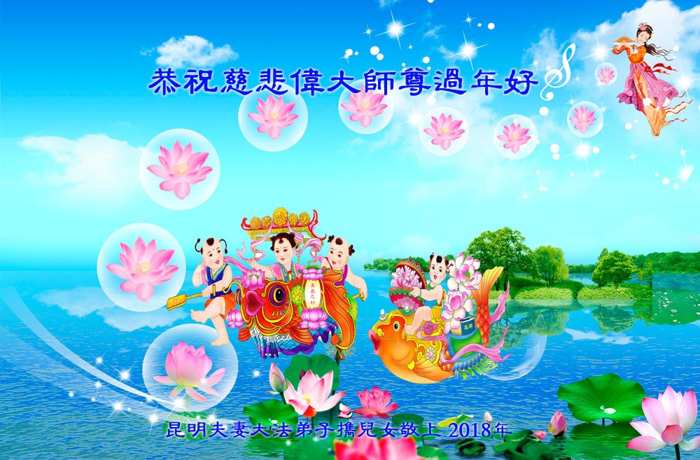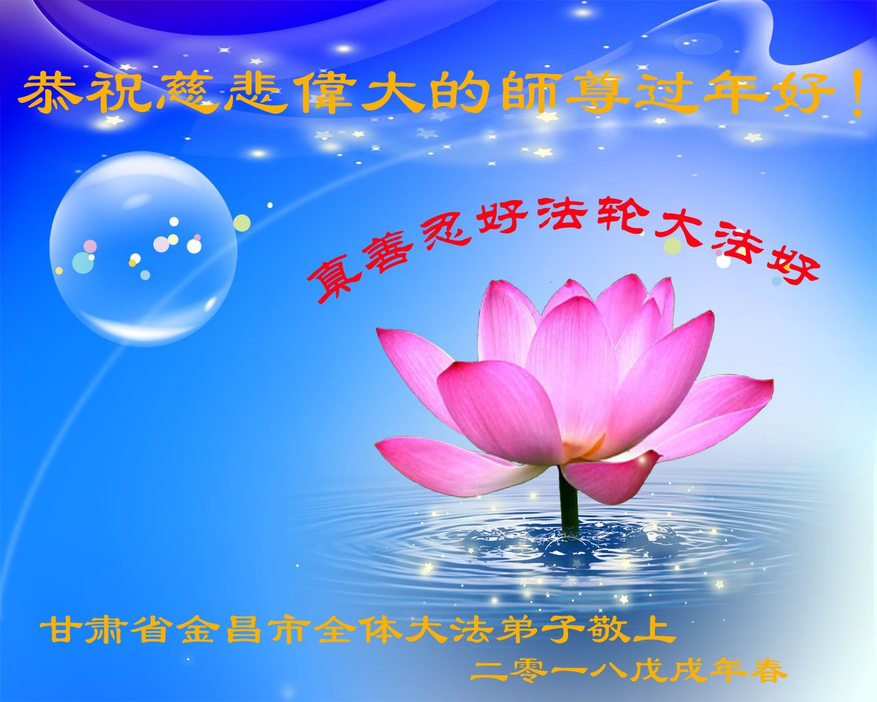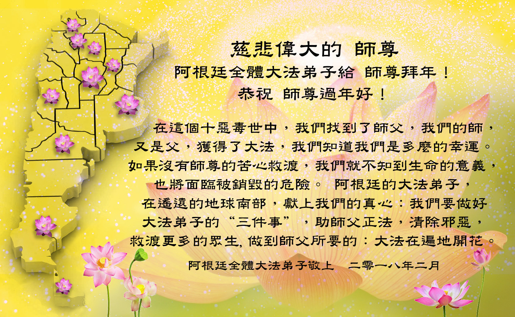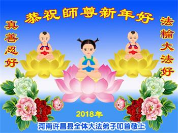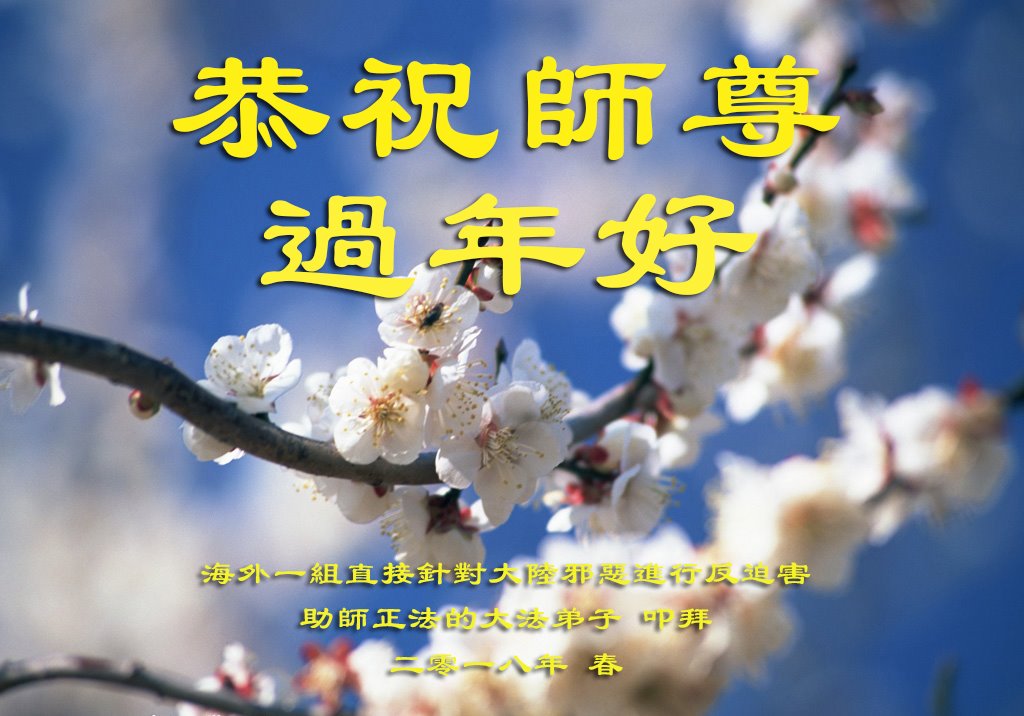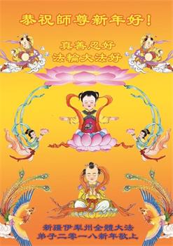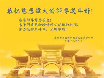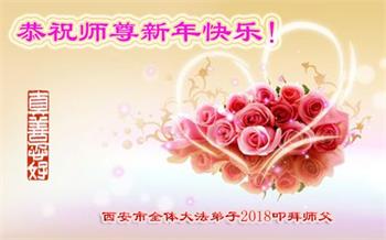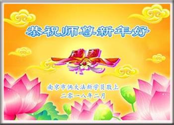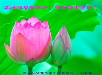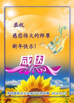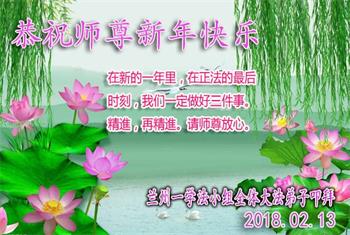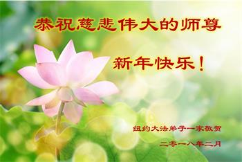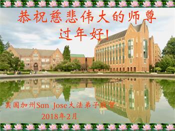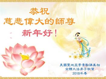 【明慧网二零一八年二月十六日】中国新年之际,来自美国纽约、大费城、拉斯维加斯、旧金山、肯塔基、洛杉矶、旧金山、匹兹堡、堪萨斯州、俄亥俄州、南卡莱罗纳、圣地亚哥、圣荷西、波士顿、麻州、康州、波特兰、芝加哥、爱荷华州、内不拉斯加、阿肯色等地的大法弟子恭祝师尊新年好!