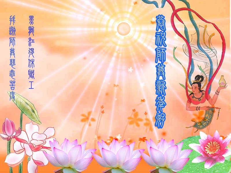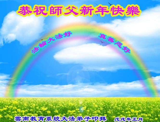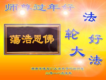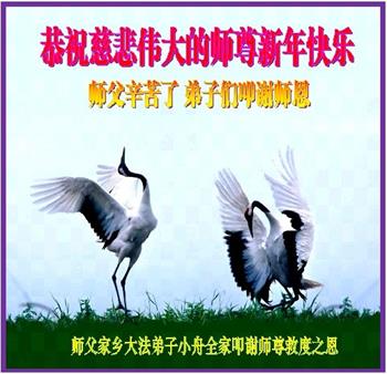 谢谢师尊的慈悲苦度,师尊辛苦了!在新的一年里,弟子们一定听师尊的话,做好三件事,多救人,遇事向内找,做一个合格的大法弟子,圆满随师还。