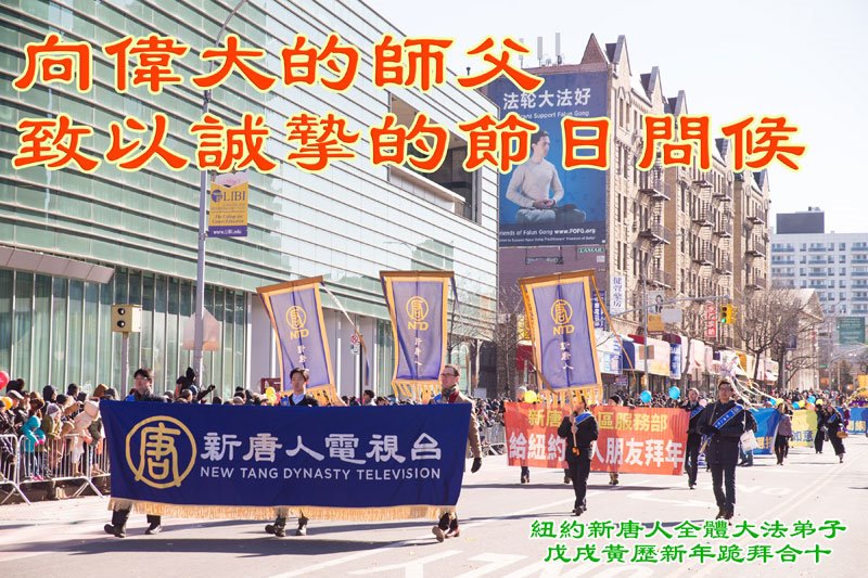 在2018中国新年即将来临之际,纽约时代广场景点大法弟子恭祝师尊新年快乐!