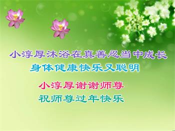 最伟大的师尊:农历新年快乐!谢谢师尊度我!我今年八岁了,我从小就和爸爸妈妈、阿姨一起出去发资料救人。我也要努力的修炼,跟师尊回真正的家。纽约大法小弟子跪拜师尊!
