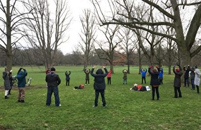 ![]() 二零一八年二月四日,法轮功学员在绿堡公园炼功 |