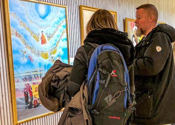 - 瑞典民众感受法轮大法的美好(图)- 二月五日至十七日,瑞典法轮功学员在斯德哥尔摩东部高中举办了真善忍美展,参观者除了该校和外校的师生外,还吸引了很多当地民众。
