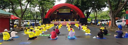 '图1~3:雅加达法轮功学员集体炼功'