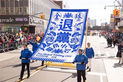 具足民族特色的腰鼓队紧跟其后,为退党彩船呐喊助威:“要做中华儿女,不做马列子孙”。殿后的大型横幅“三退平安”送上真正的祝福:平安是真福。
