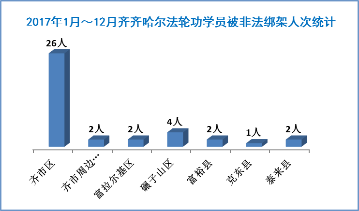 ![]() 图2:齐齐哈尔市法轮功学员2017年被绑架迫害人次统计 |