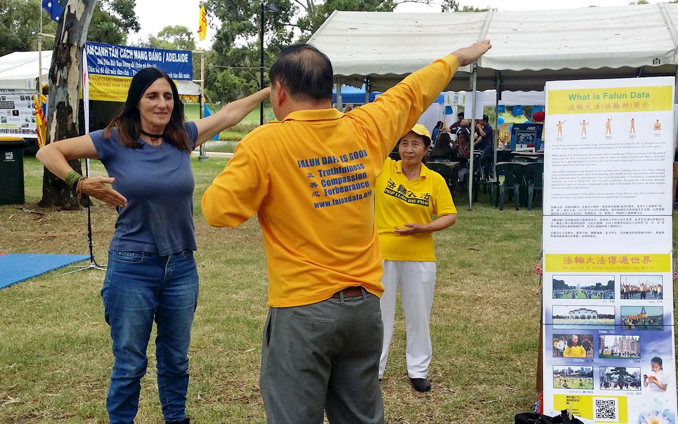 【明慧网二零一八年二月二十四日】南澳越南社区新年嘉年华是当地越南社区最重要的庆祝活动,每年汇集数千当地越裔、州际和国际游客,共同庆祝传统新年这一东南亚大部份国家最重要的节日。二零一八年二月九日周六,南澳法轮功学员再次受邀参加今年的庆典活动,向人们展示祥和的功法和分享修炼的美好。