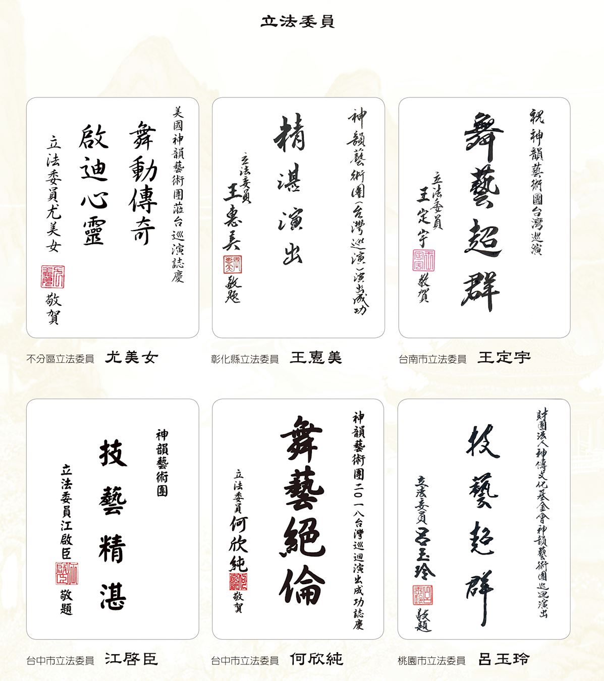 立法委员和议长祝贺神韵演出成功