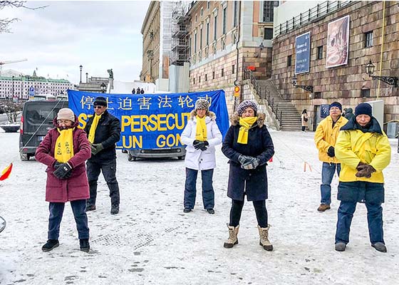 瑞典法轮功学员冒严寒传真相 民众支持(图)