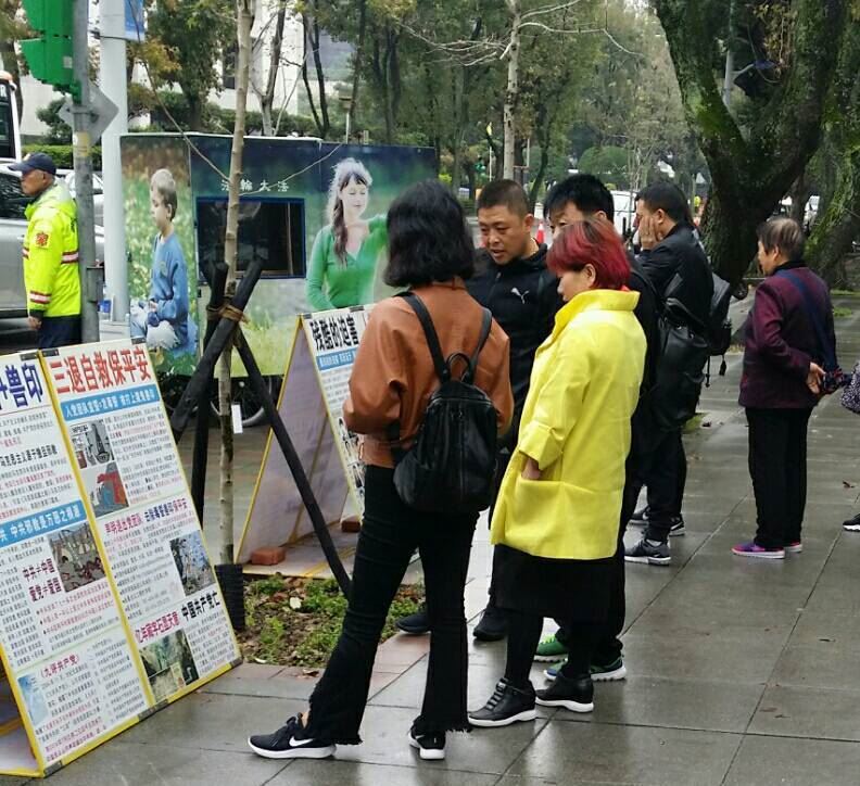 当天还有一家自天津来的中国游客,虽然赶行程,但很友善地与学员打招呼,他们隔天就要离开台湾了,这趟台湾行更清楚了法轮功的确与政治无关。当初“天津事件”(四二五上访的起因)的真实缘由他们知道了,邪党栽赃诬陷法轮功的各种骗局也看到了……学员进一步解说:法轮功学员在和平时期修炼,在被残酷迫害时期还是修炼,这么多年就是实践了正信真理的追寻,就是坚持修炼。他们立即点头表示赞同。接着学员帮父女退出了中共相关组织,他们说回去会跟亲人分享这些所见所闻的。