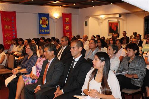 '图1~3:二零一八年二月十八日,二零一八年秘鲁法轮大法修炼心得交流会在首都利马的观花阜伯爵称号酒店(Hotel El Condado Mraflores)召开。学员法会上交流了自己的修炼心得体会'