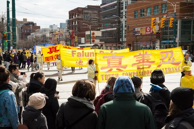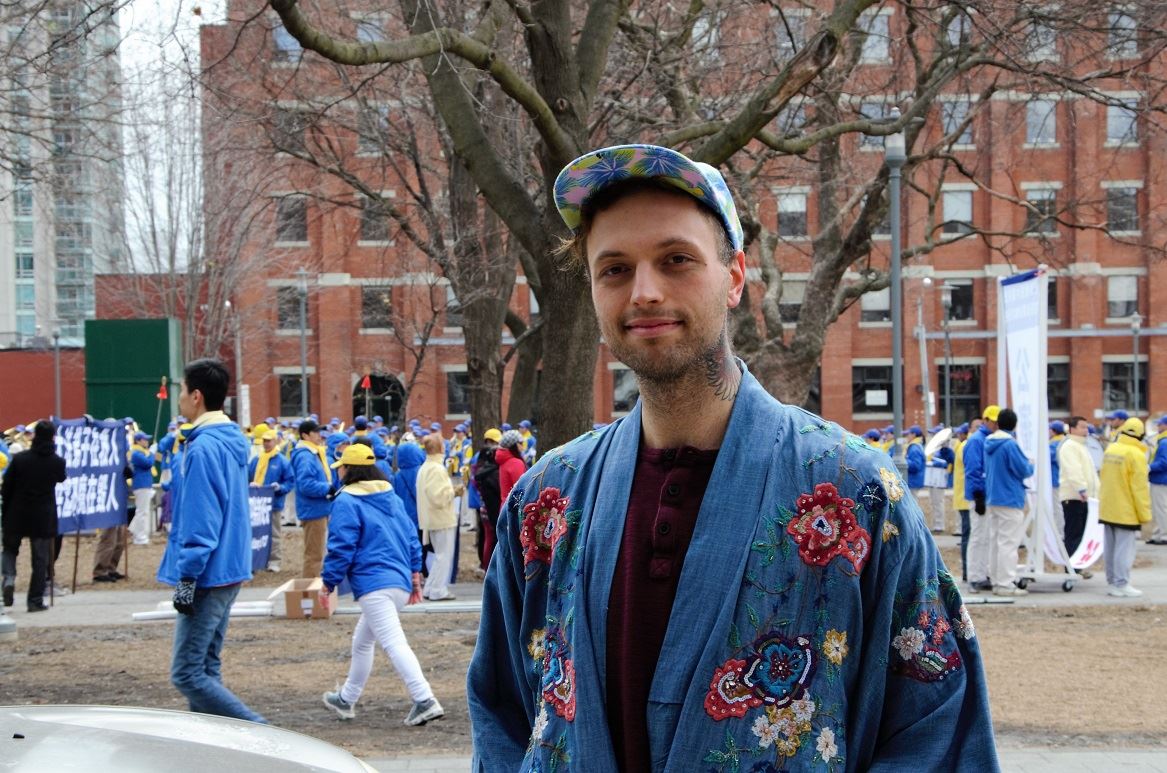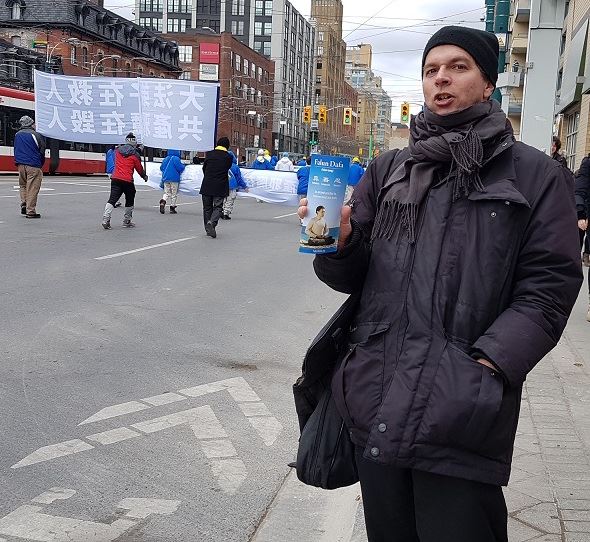 游行过程中天国乐团的音乐吸引了很多人驻足聆听,多伦多音乐人芬利(Finley)表示他第一次听到天国乐团的音乐,感觉非常震撼。