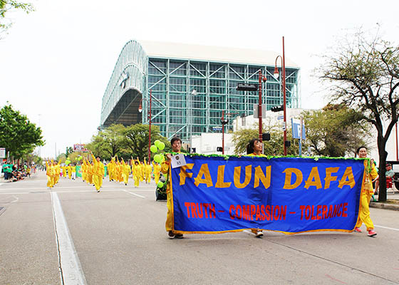 三月十七日,美国休士顿第五十九届圣派翠克大游行在休士顿市中心举行,法轮功队伍再度参加圣派翠克日游行,向民众展示中国古老传统的功法。