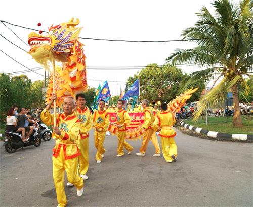 【明慧网二零一八年三月二日】新年伊始,万象更新。马来西亚雪兰莪州双溪比力新村(Sungai Pelek)、丹绒士拔(Tanjung Sepat)、斯里肯邦安(Seri Kembangan)又称沙登新村,以及吉隆坡增江北区(Jinjang Utara),这四个乡镇的居民,今年的中国新年因法轮功学员来到当地举办新年游行,而显得特别喜庆和热闹。