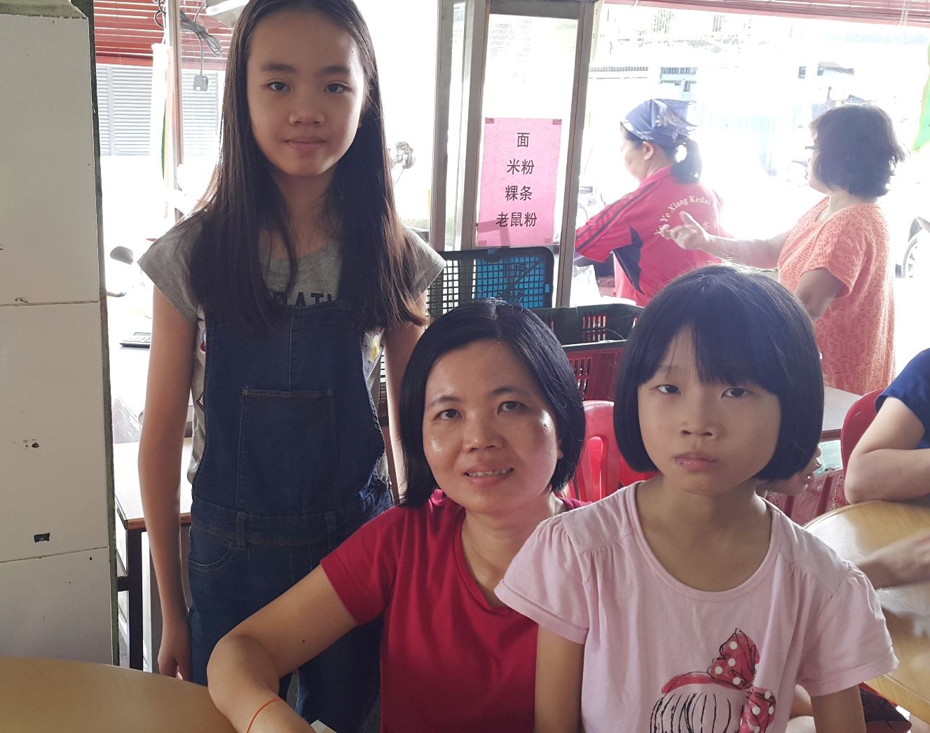 '图10:双溪比力新村民众林爱芬女士与两位女儿。'