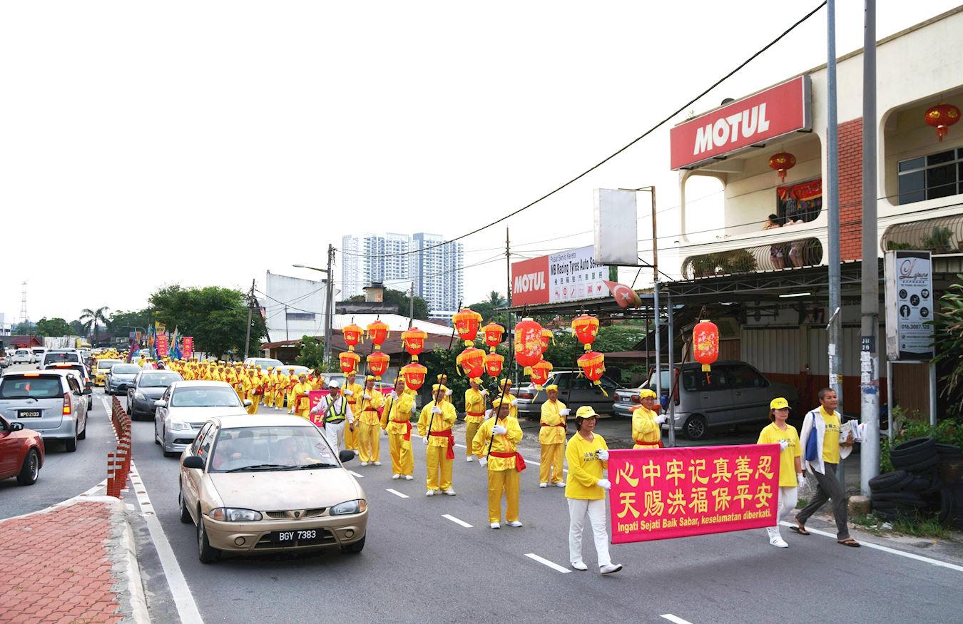 戊戌年大年初九、初十(2018年2月24日、25日),马来西亚法轮功学员在雪兰莪州、吉隆坡一带,连续举行了四场新年游行,向当地民众拜年、送祝福,为大家带来佳节欢乐喜庆,广获各族民众的欢迎。人们为法轮功学员到此地游行而感到惊喜万分。许多民众打从内心深处感受到了法轮功游行队伍所带来的美好,盼望他们能再来。