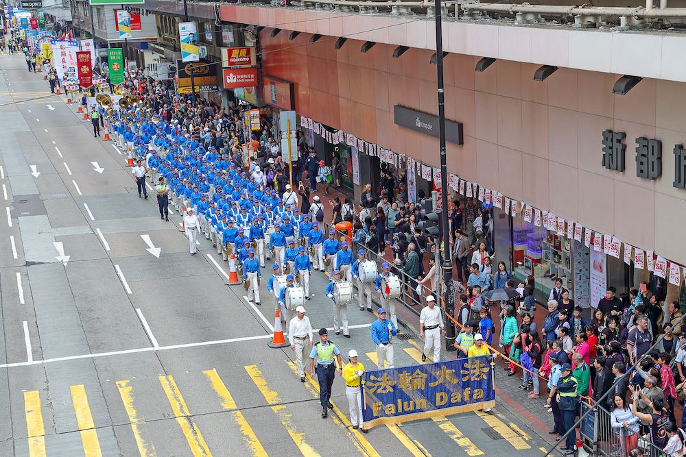 香港市民李先生对路过的法轮功学员举起大拇指,又热情地挥手,他说:“法轮功讲的都是对的!法轮功没有骗人,‘真、善、忍’是对的!法轮功教人做好人,哪里错了?”