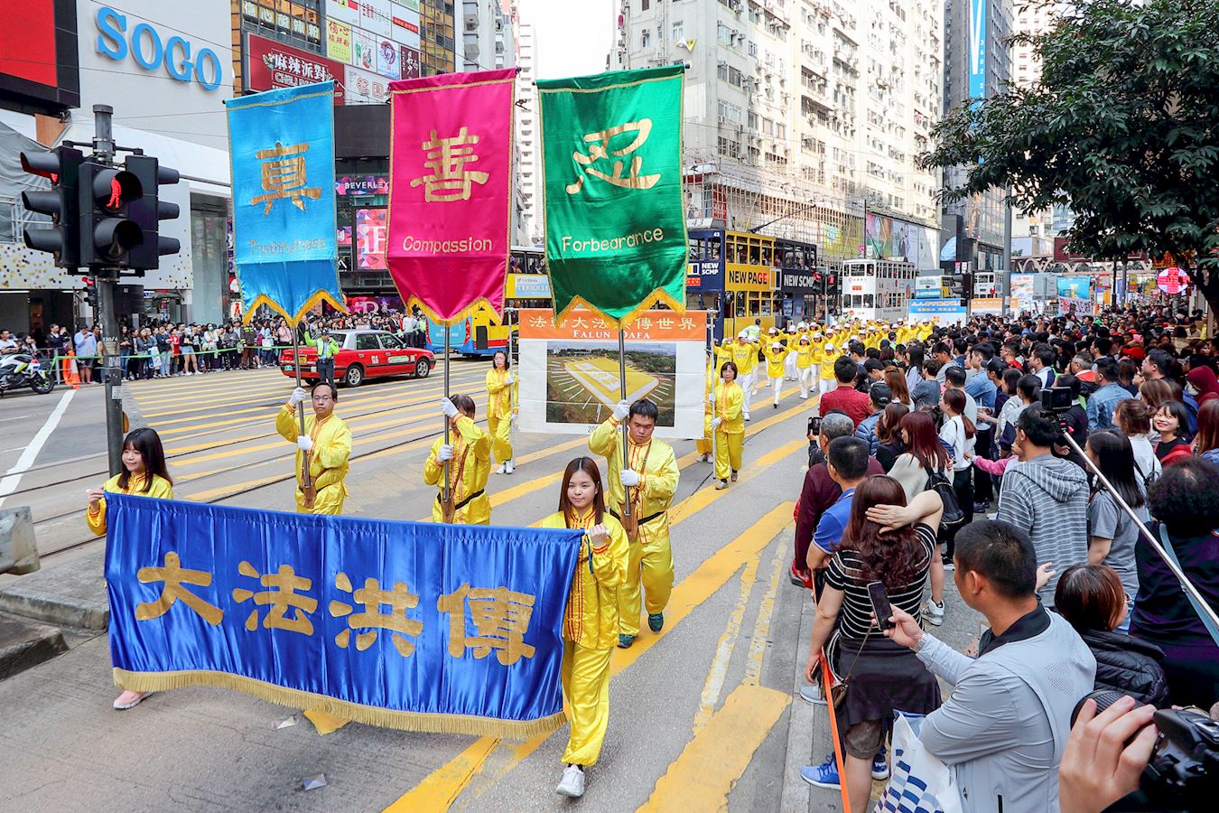 ![]() 图6~14:三月十八日下午二时,香港法轮功学员在香港市中心举行游行活动,庆祝并声援近三亿人退出中共党、团、队组织,吸引许多香港市民和大陆游客驻足观看。 |