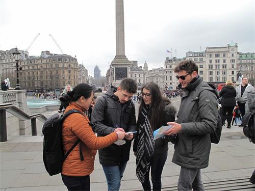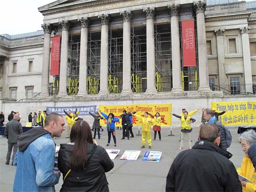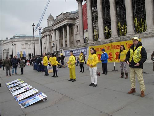 ![]() 图1~4:英国法轮功学员在伦敦特拉法加广场(鸽子广场)展示法轮功功法、讲真相和征签反迫害,庆祝三亿中国人退出中共 |